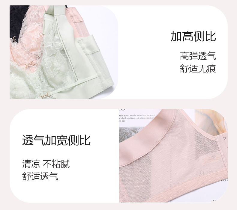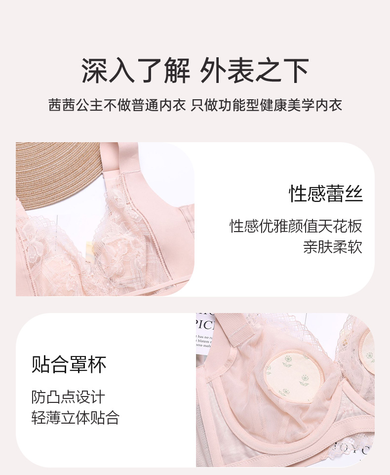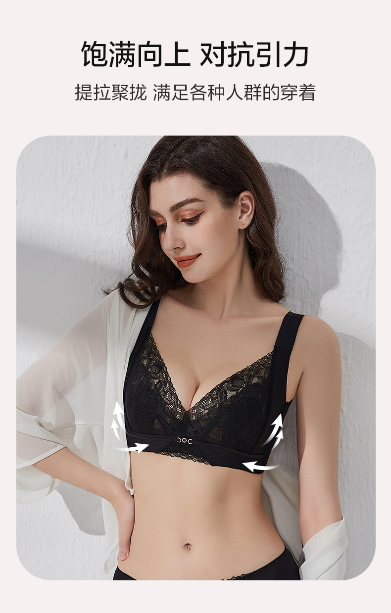 挚美水晶杯文胸 聚拢侧收 3/4杯软钢圈防下垂 蕾丝花边法式性感优雅 抑菌亲肤 承托胸部立体感