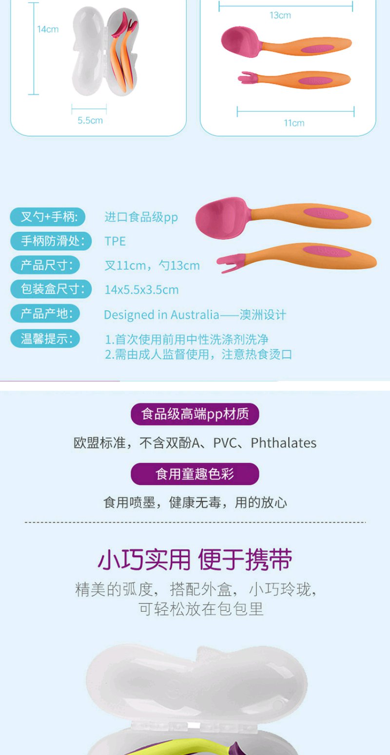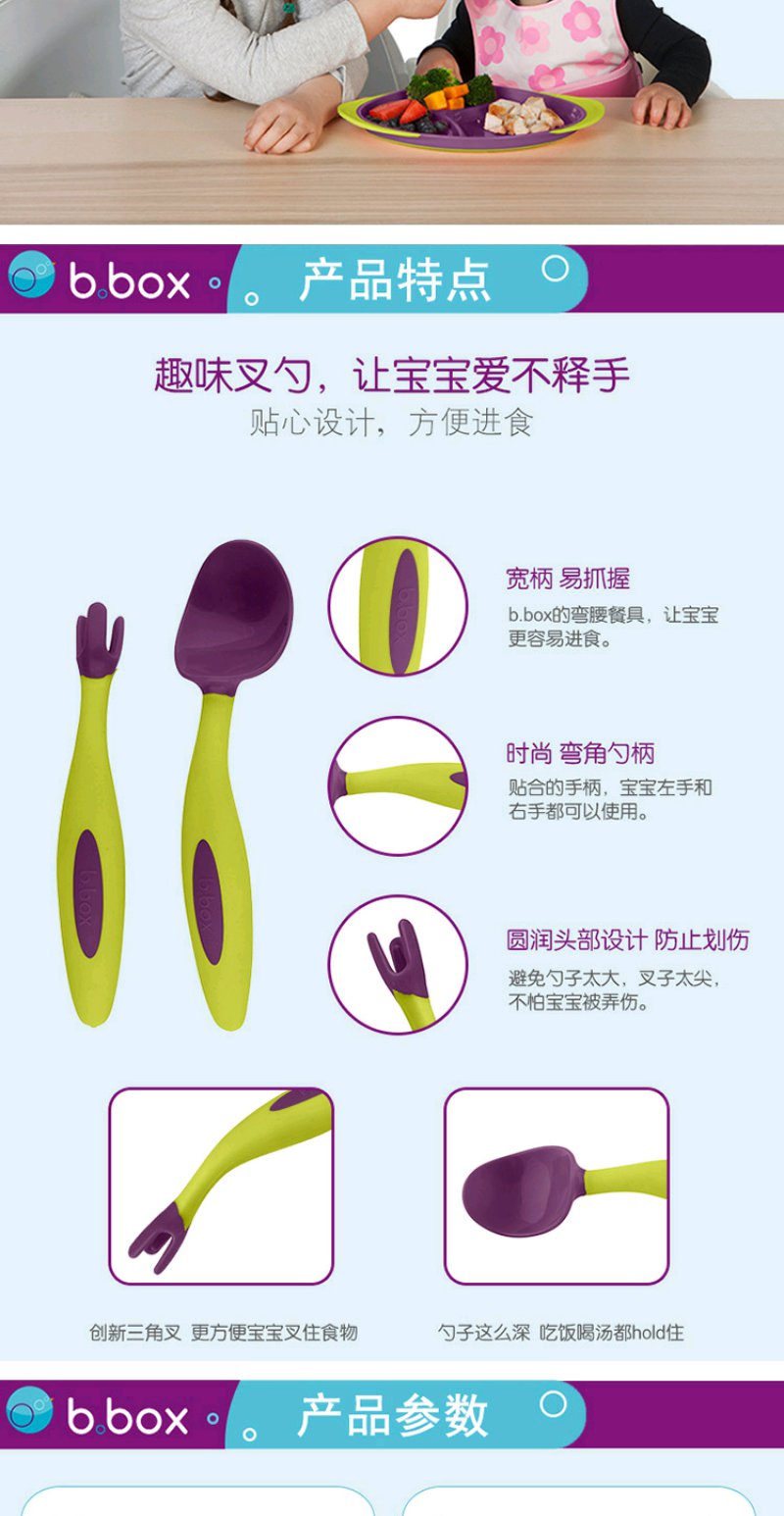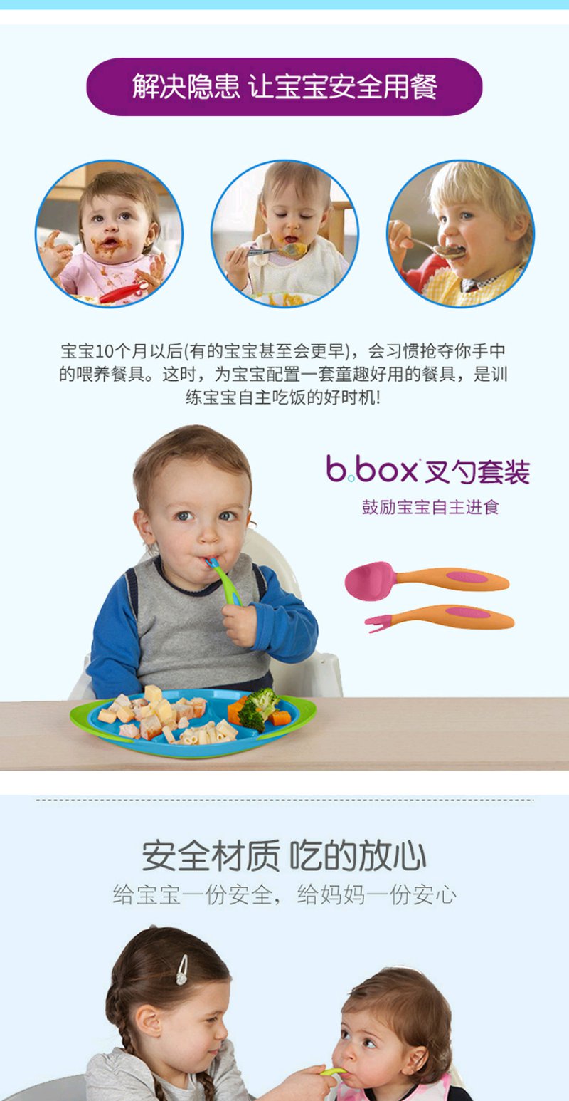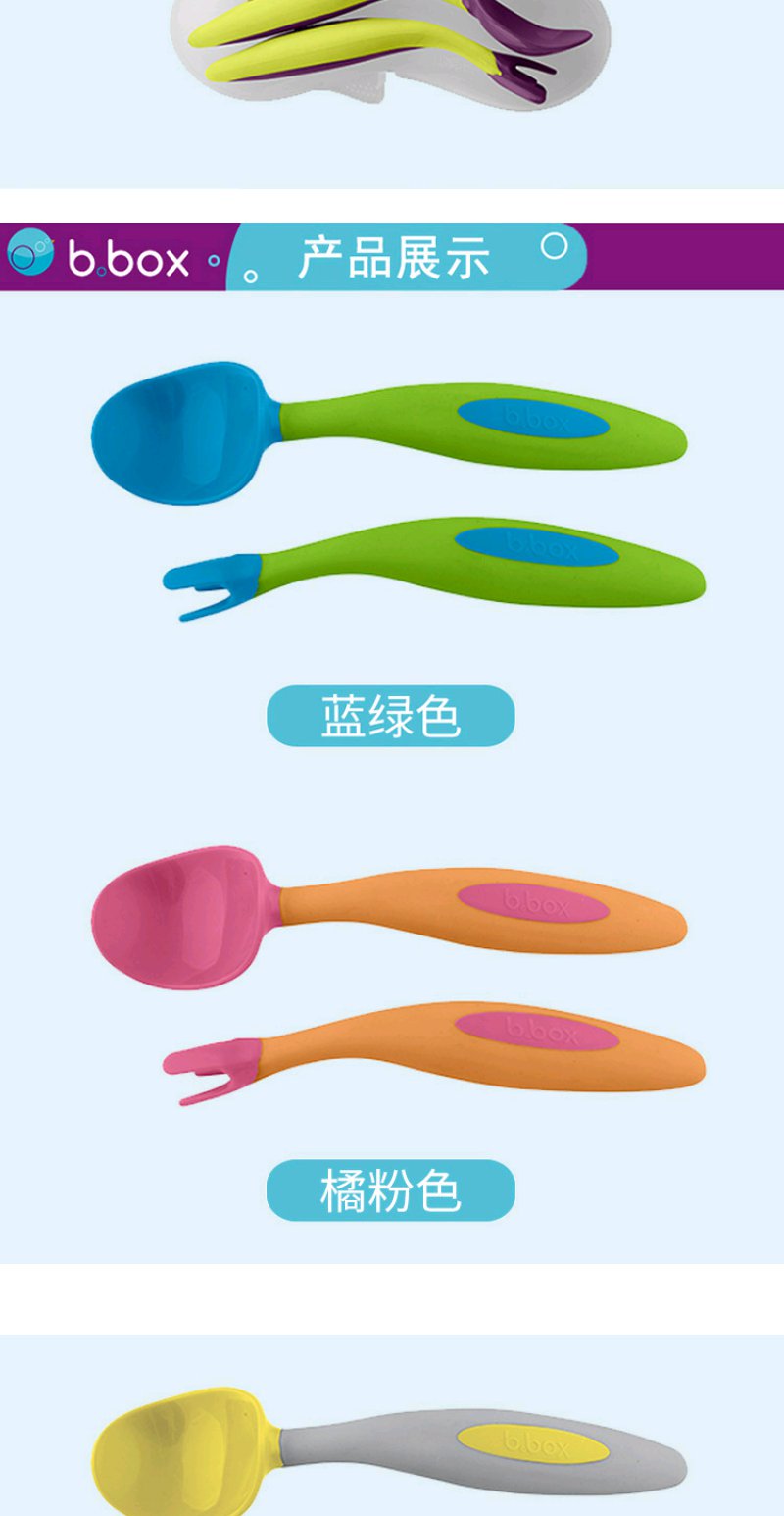 (超值)澳洲b.box 宝宝训练勺 叉勺套装 雪糕色 经典