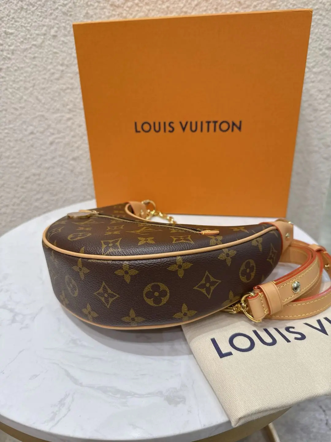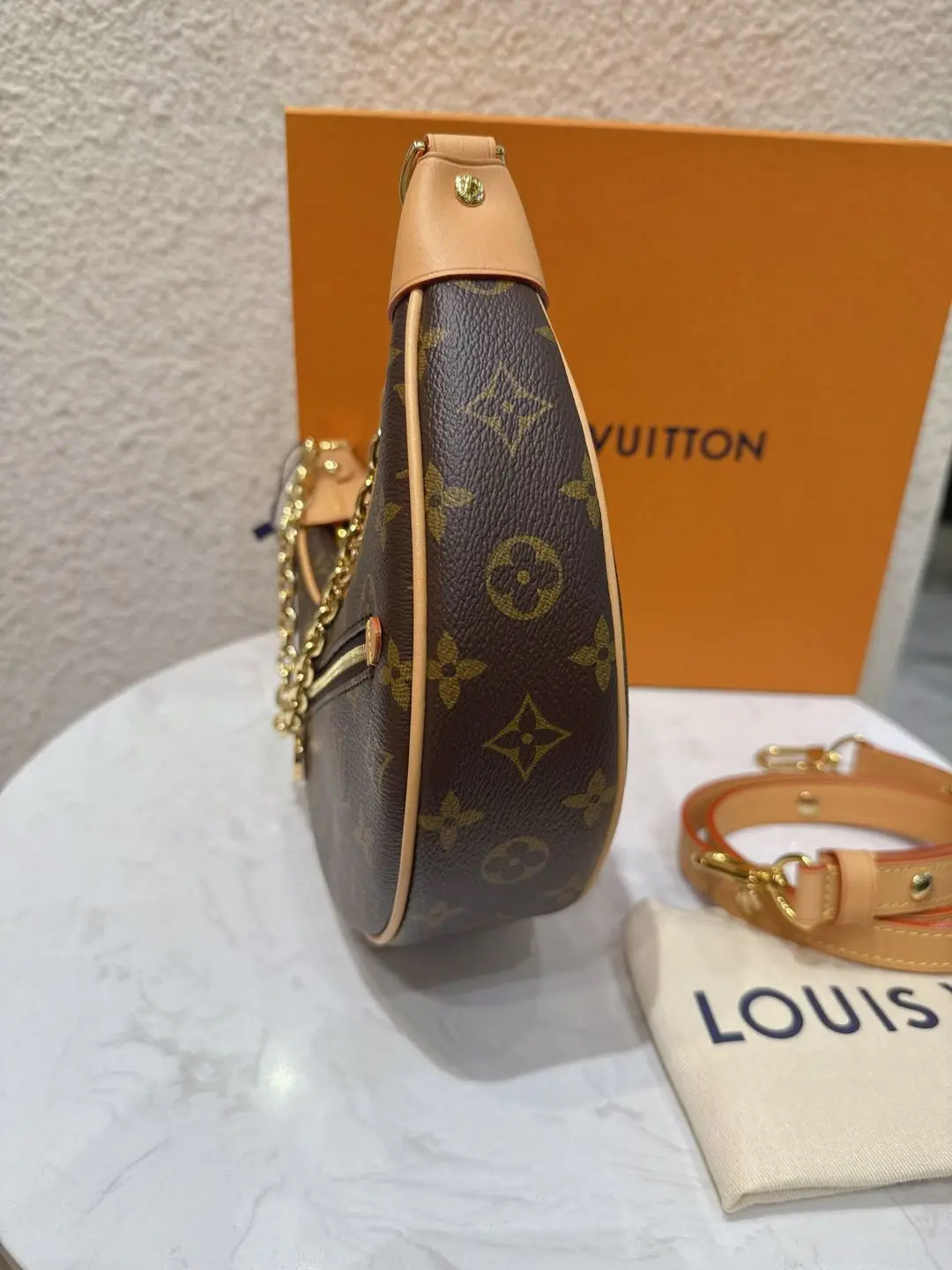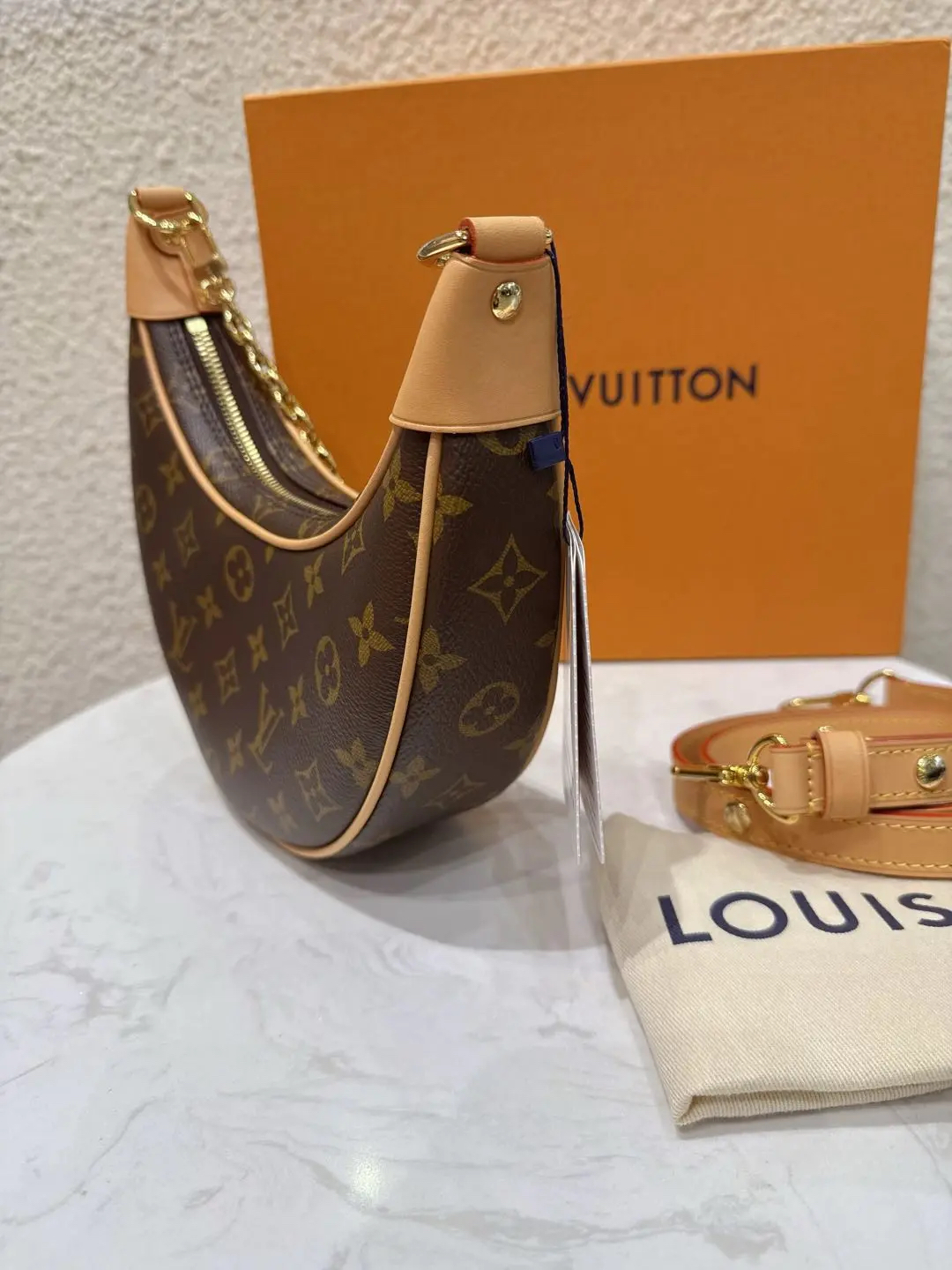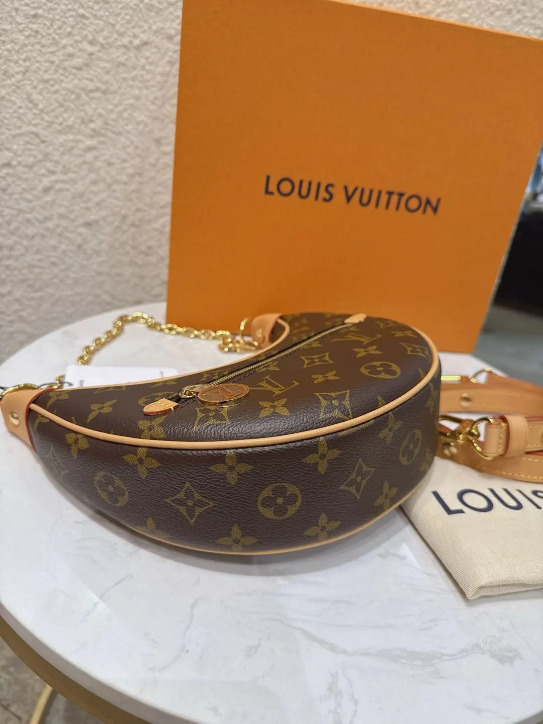 【商品详情】正品二手 Lv loop 豌豆 老花 斜挎包 🍃 99新 23×13 配件: 链条 肩带 防尘袋 盒子。背了个月亮🌙在身上