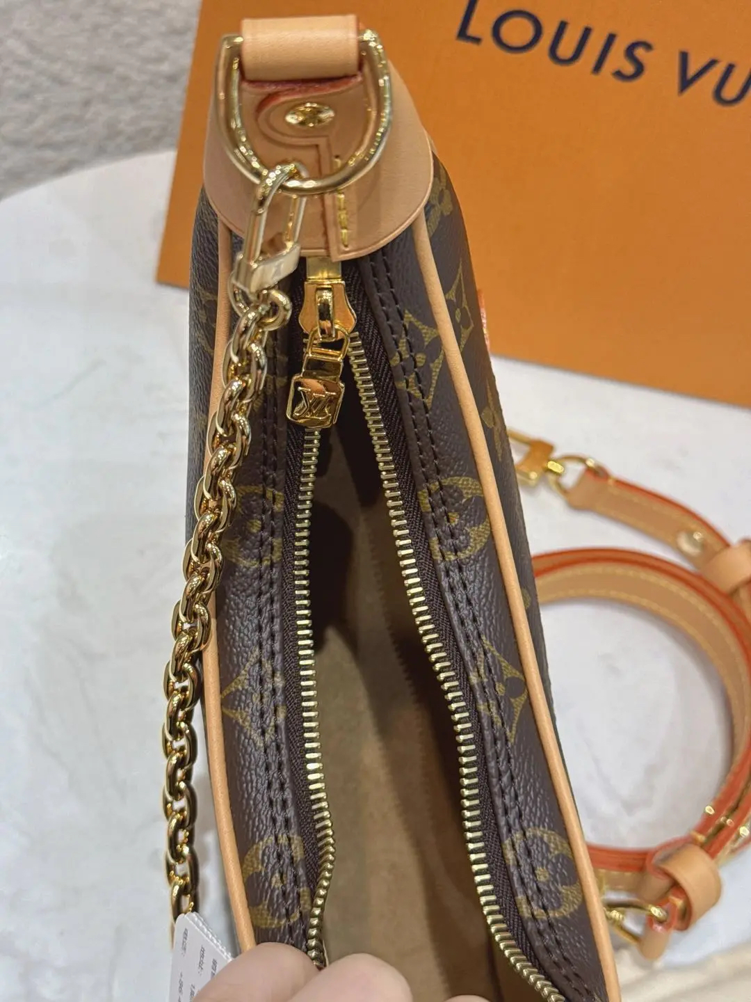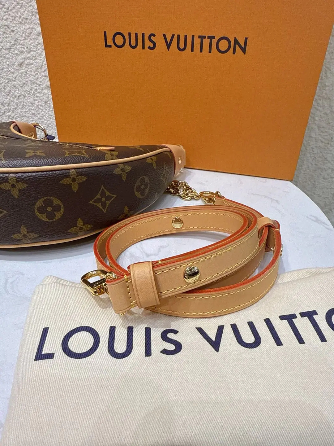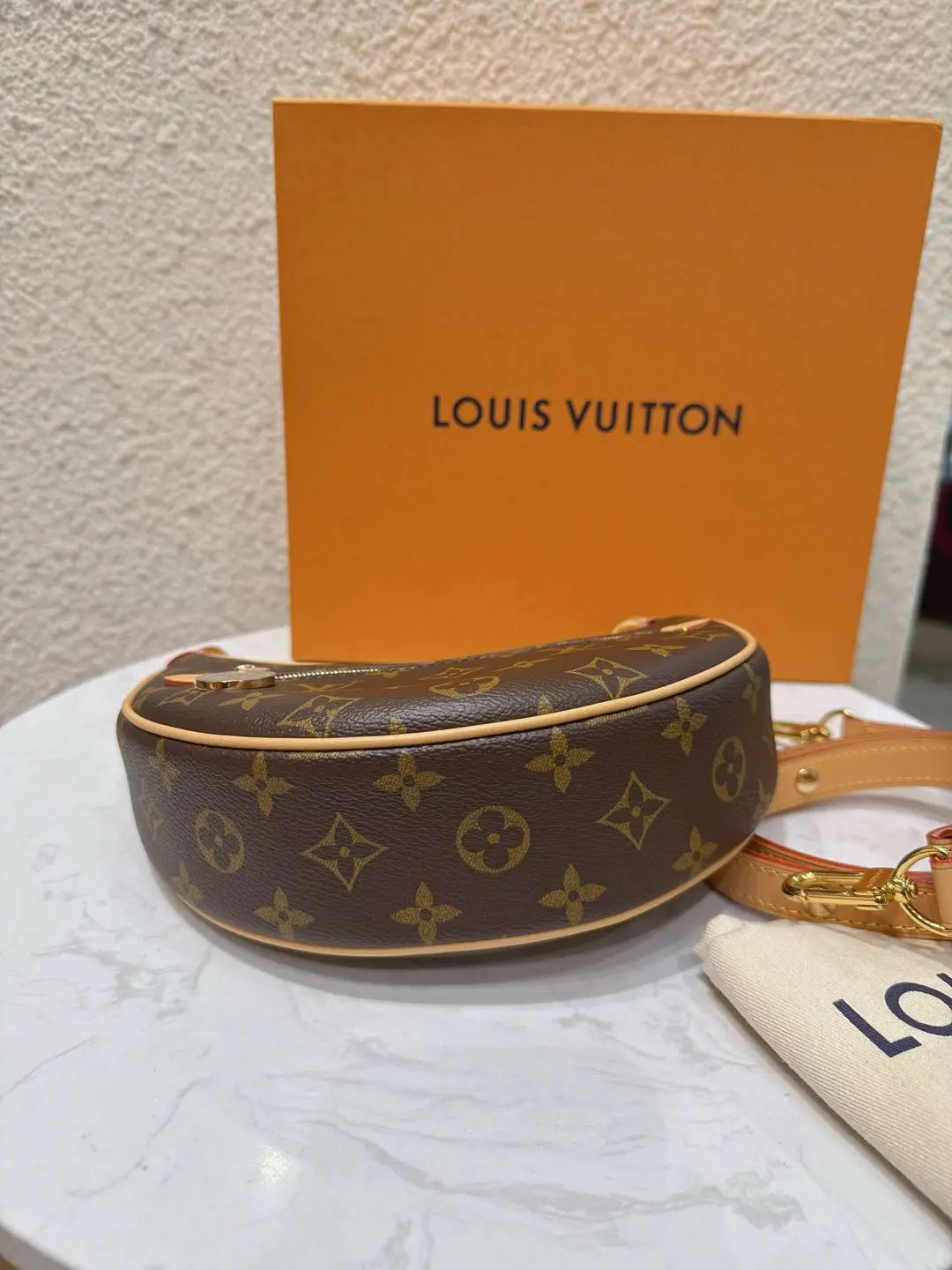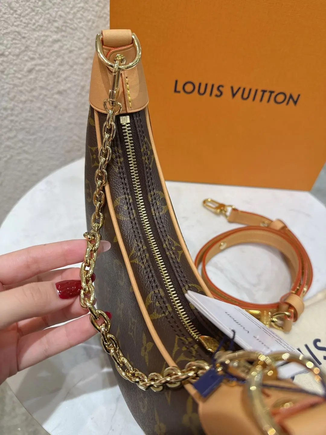 【商品详情】正品二手 Lv loop 豌豆 老花 斜挎包 🍃 99新 23×13 配件: 链条 肩带 防尘袋 盒子。背了个月亮🌙在身上