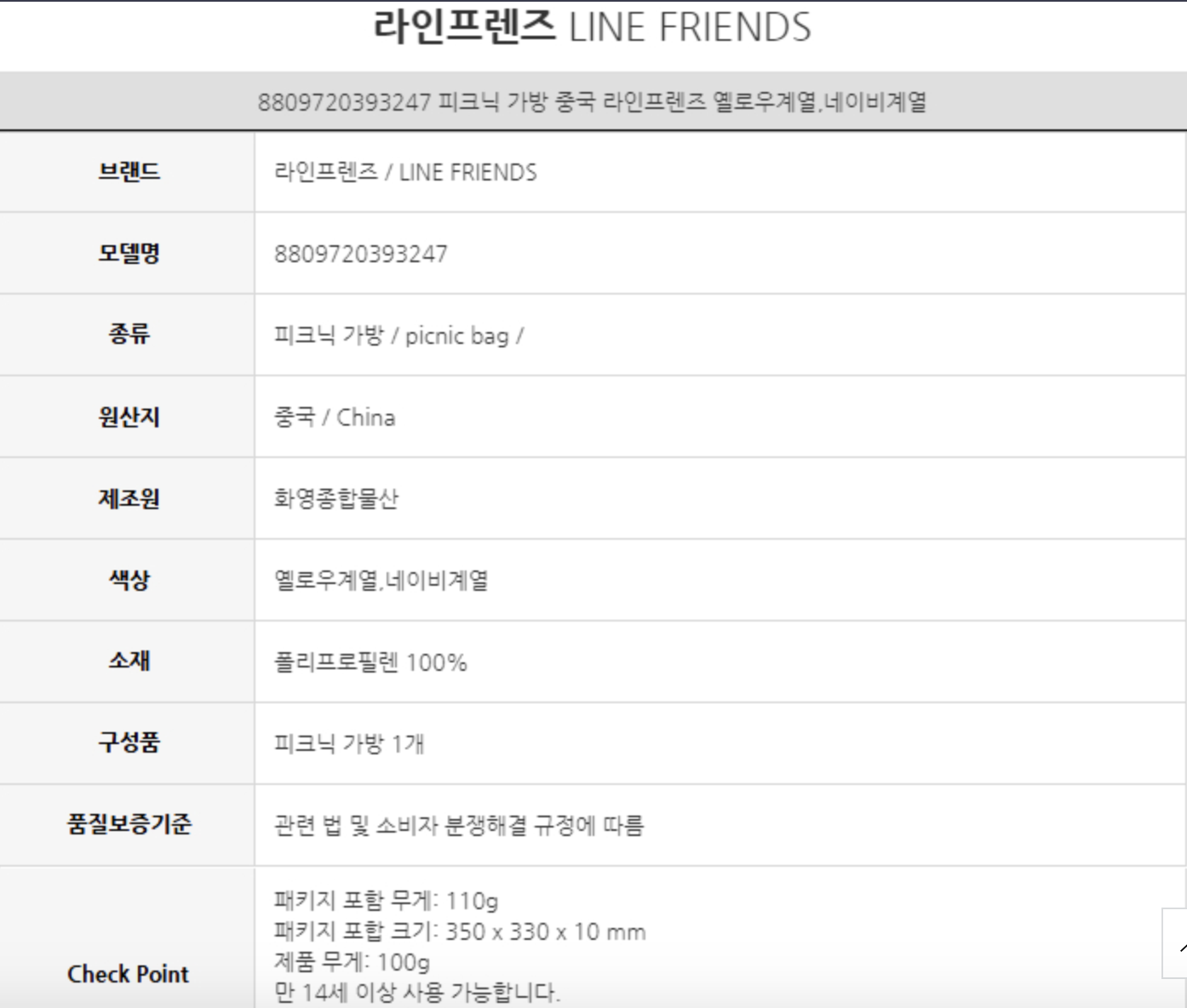 韩国 可爱Line Friends Sally野餐包(M)JPY带授权招加盟代理