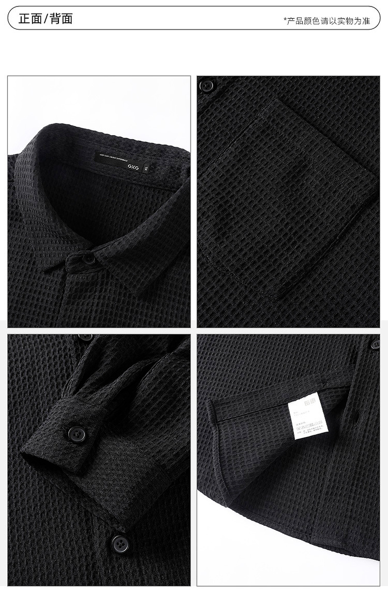 GXG男装秋季简约翻领贴袋户外工装舒适百搭男式休闲长袖衬衫K&C