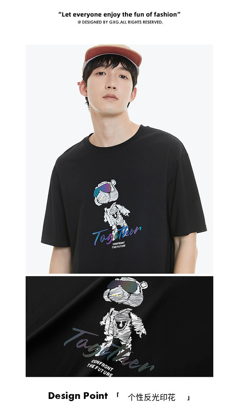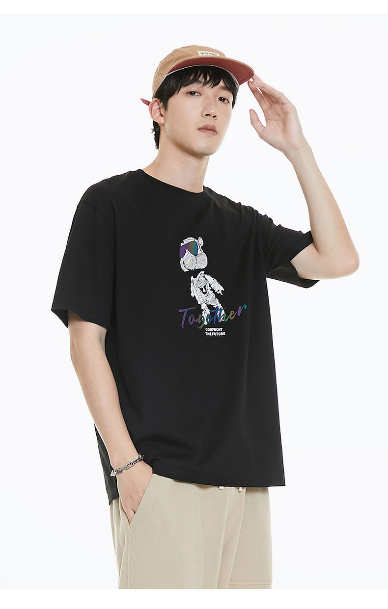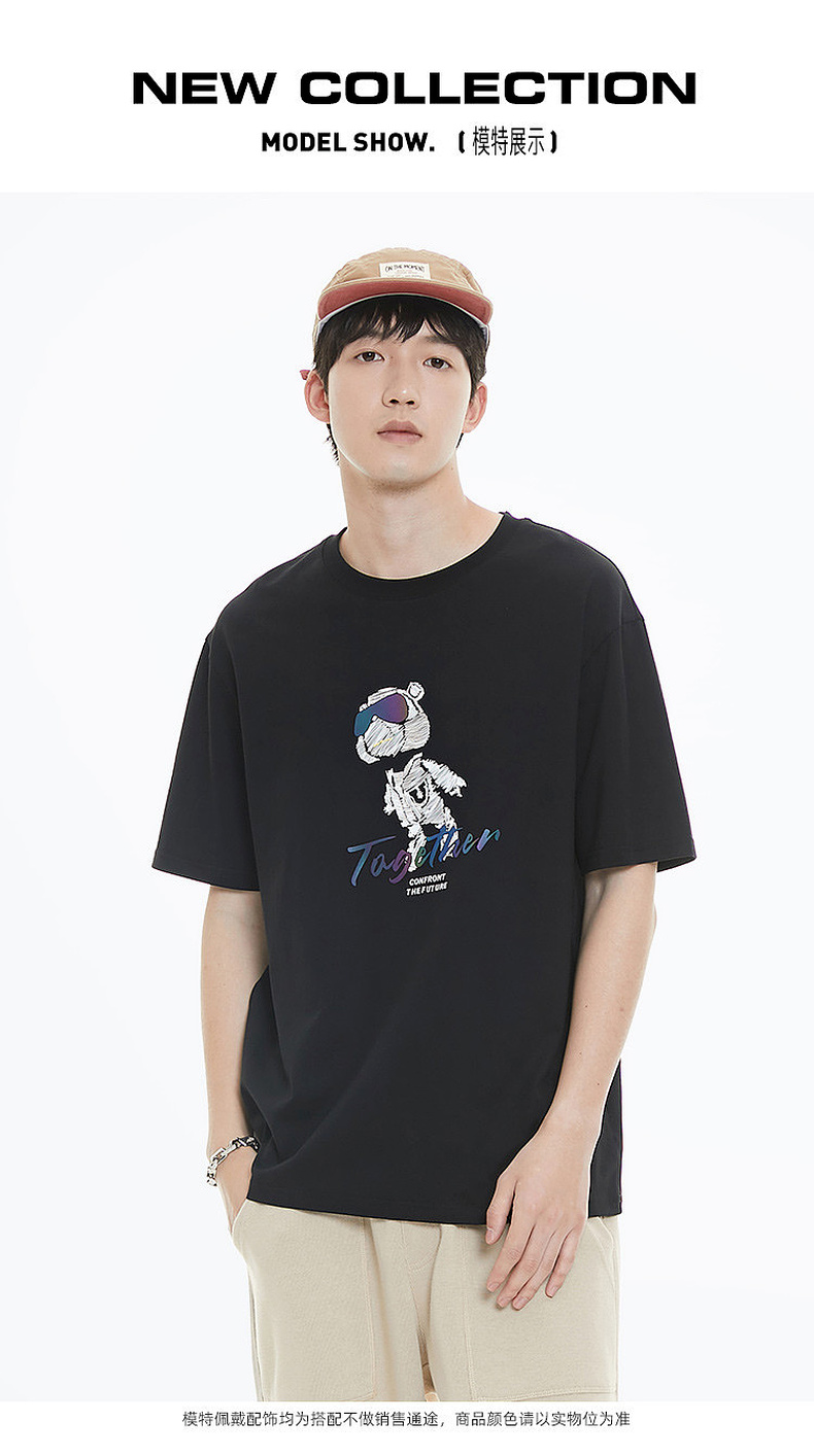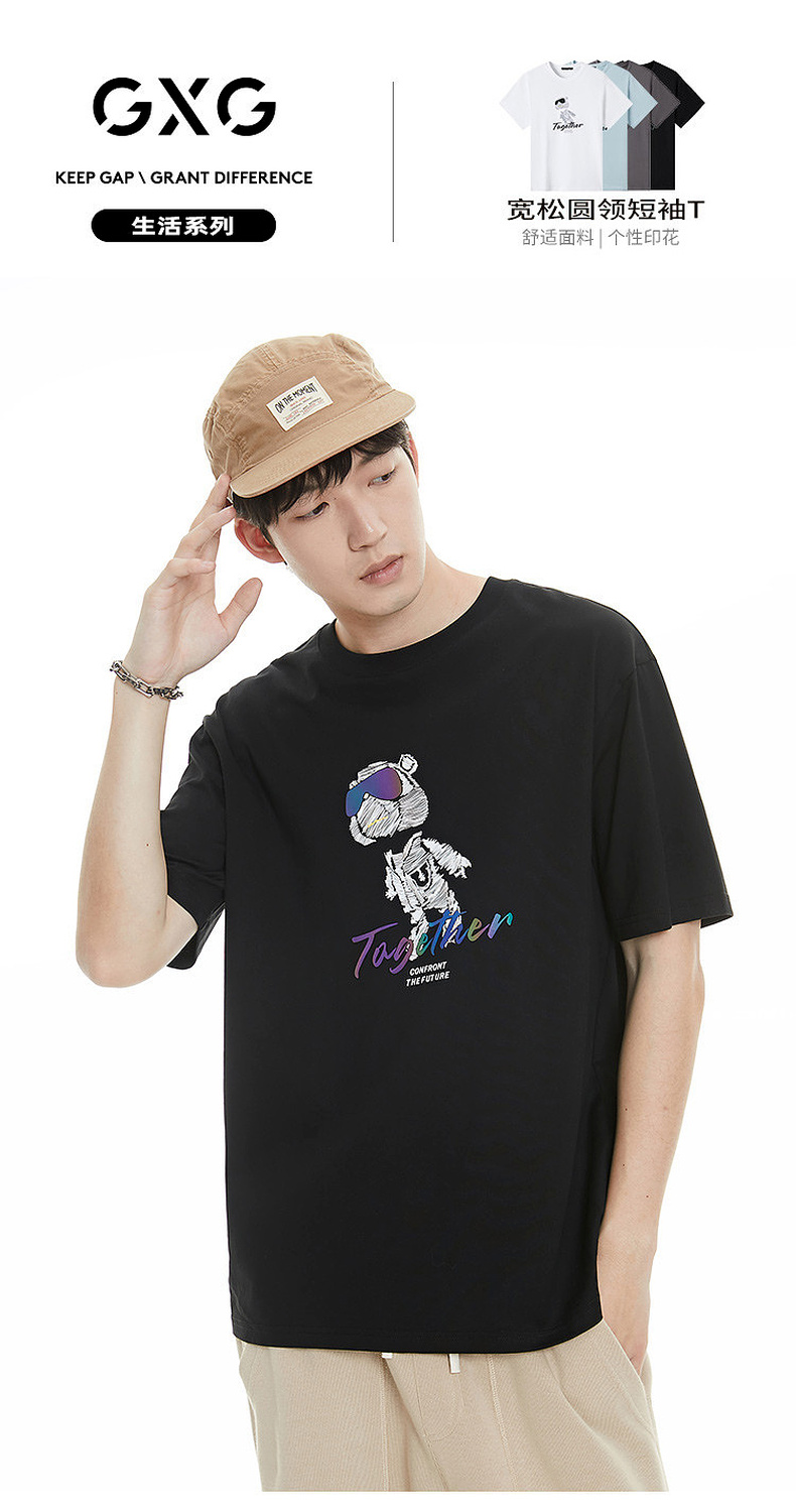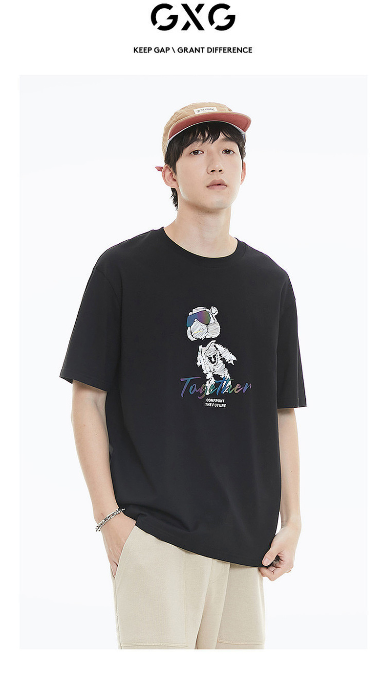 GXG男装夏季纯棉宽松短袖潮流滑雪小熊印花百搭T恤男K&C
