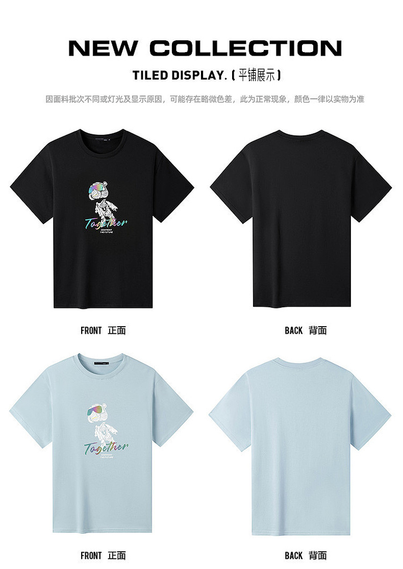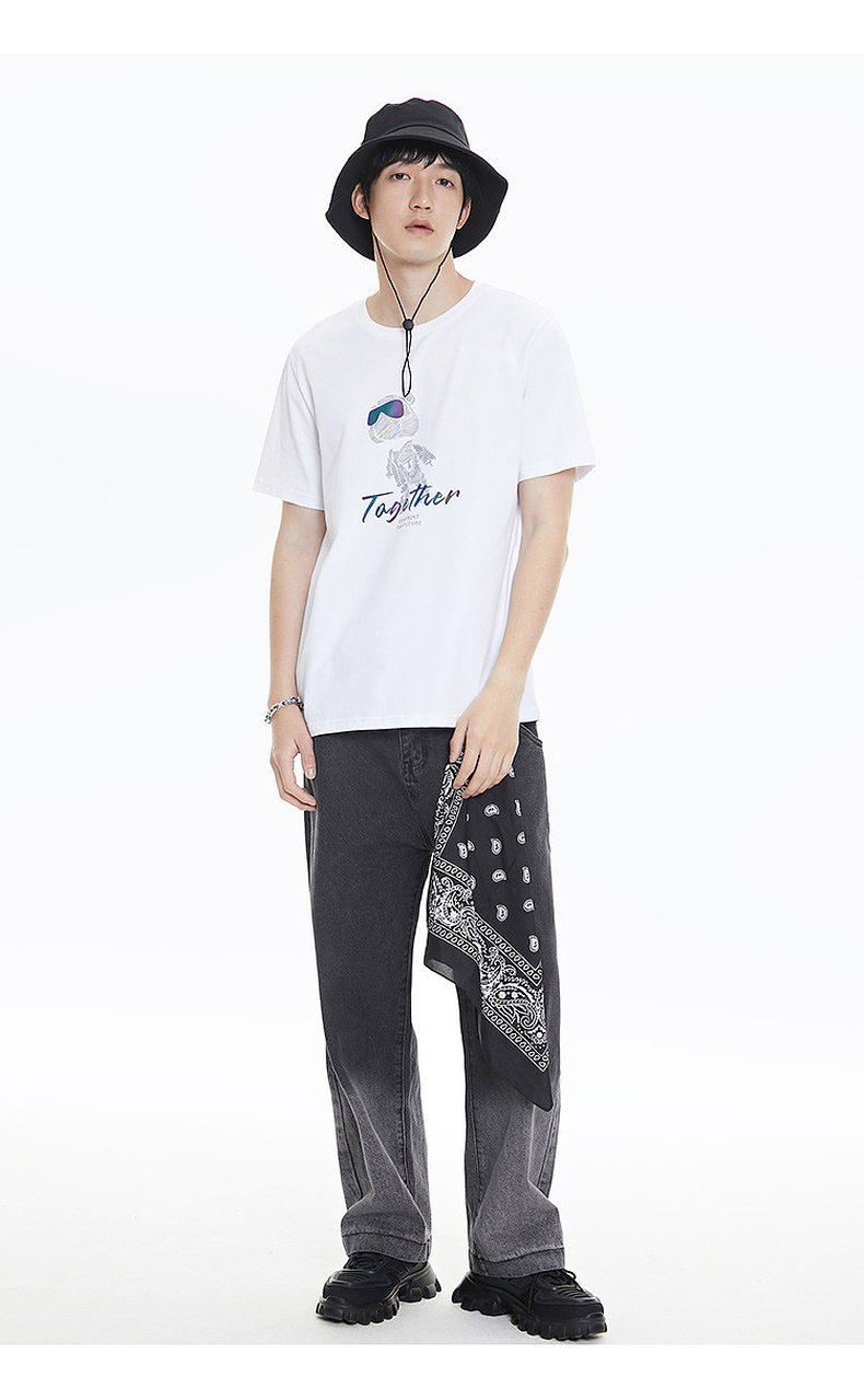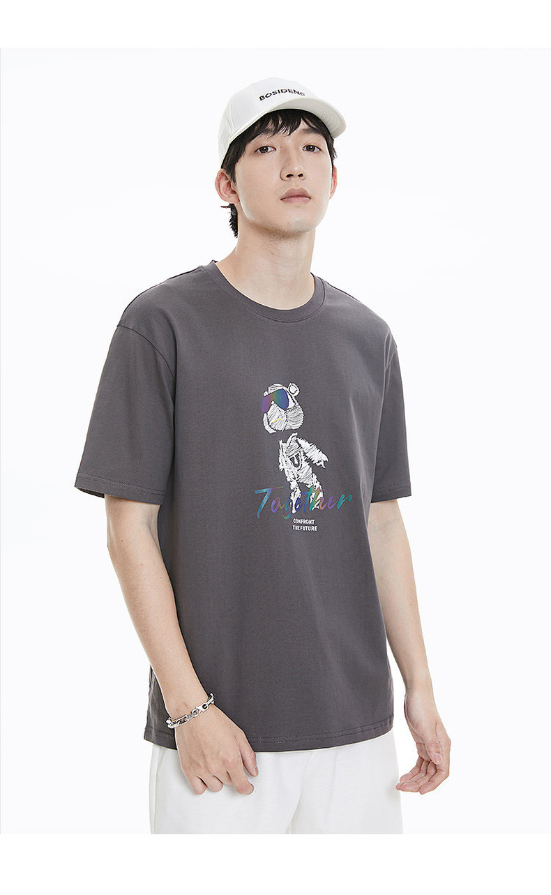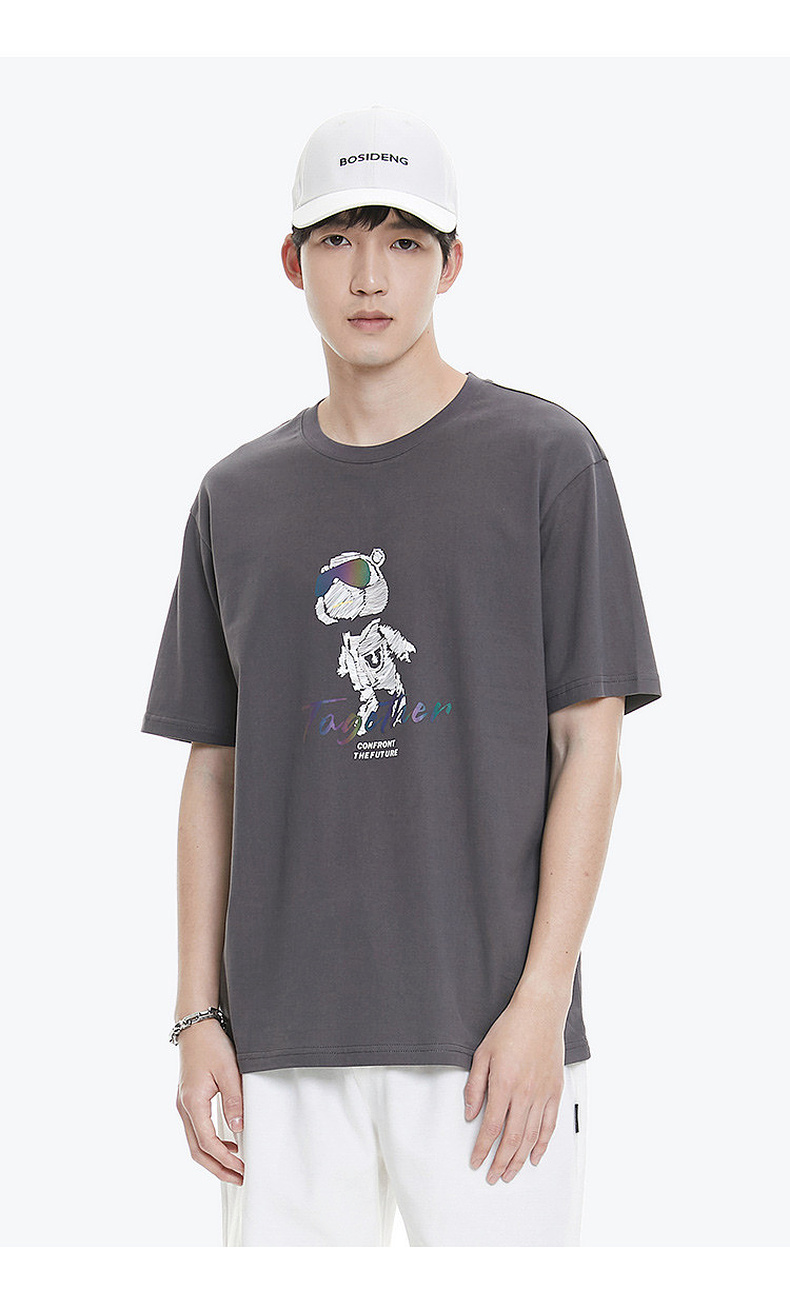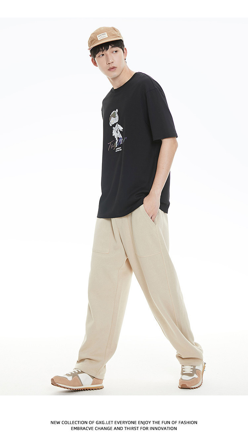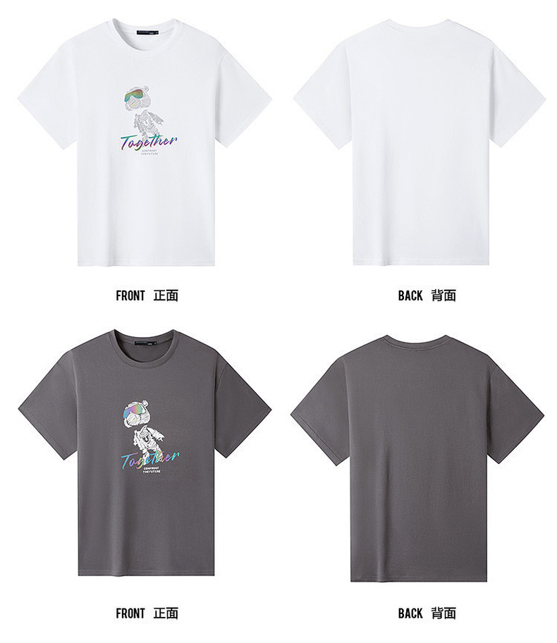 GXG男装夏季纯棉宽松短袖潮流滑雪小熊印花百搭T恤男K&C