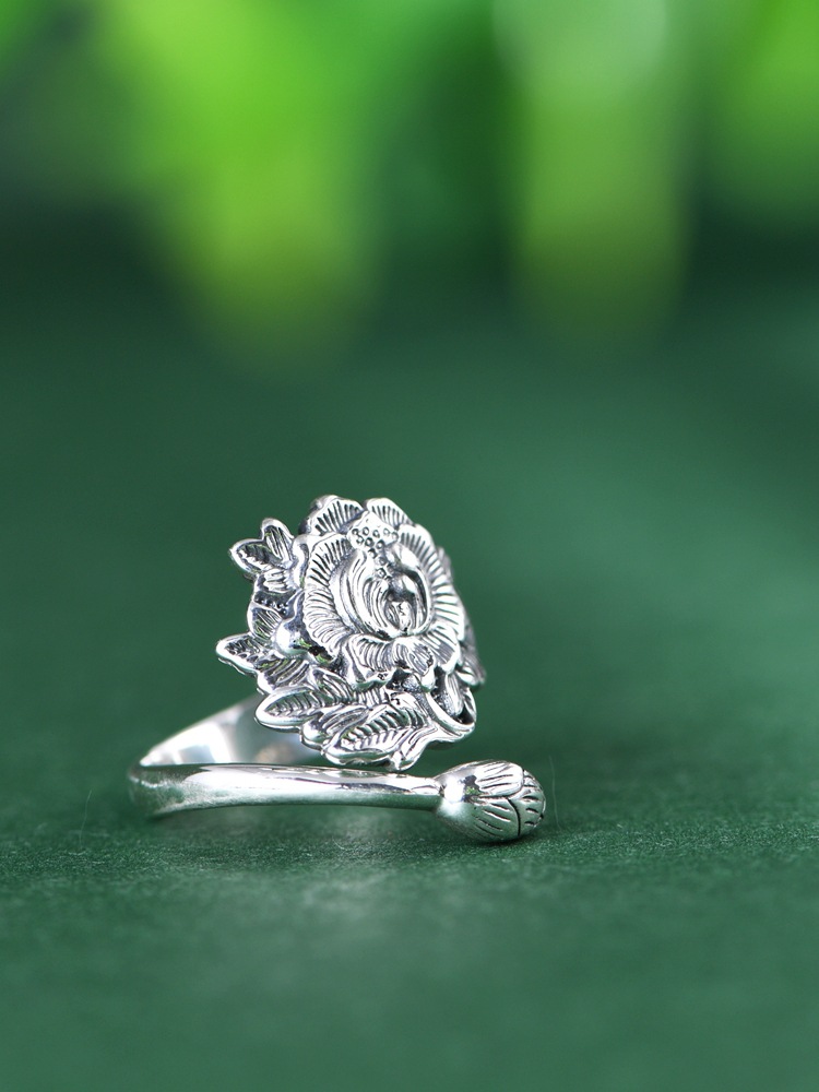 【牡丹倾城】足银抛光牡丹花戒指【SCH-SY24140】
