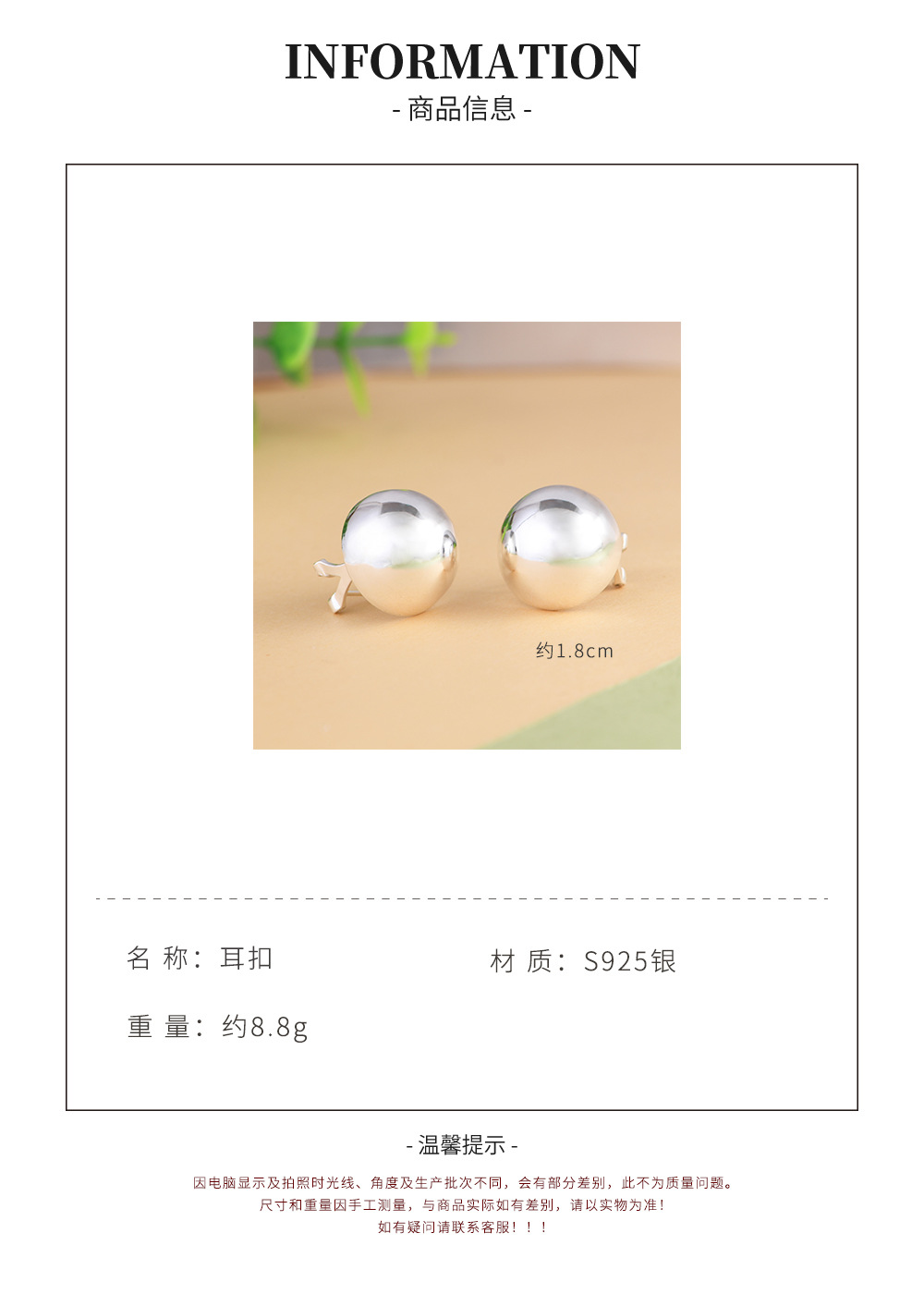 【怡人】S925银个性时尚光面半球设计耳饰【SCH-SY32848】