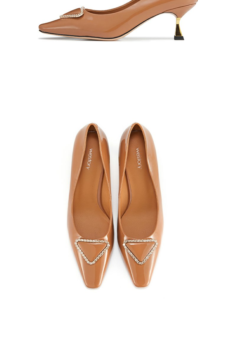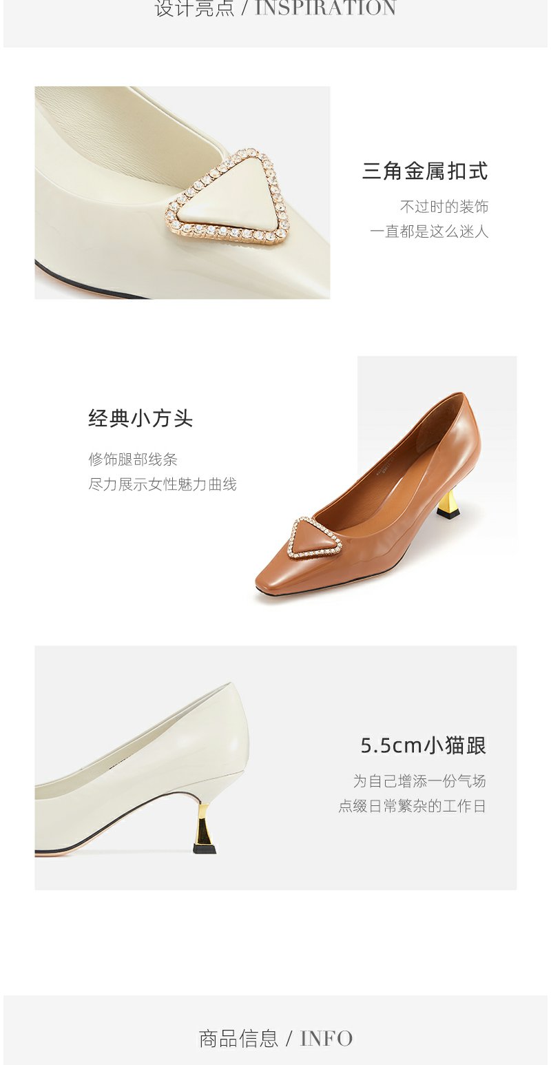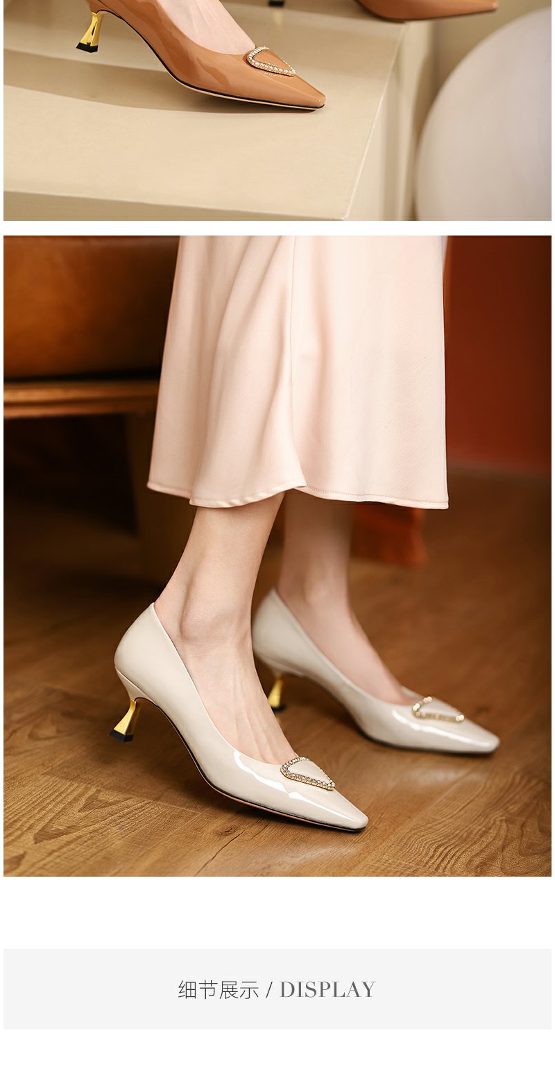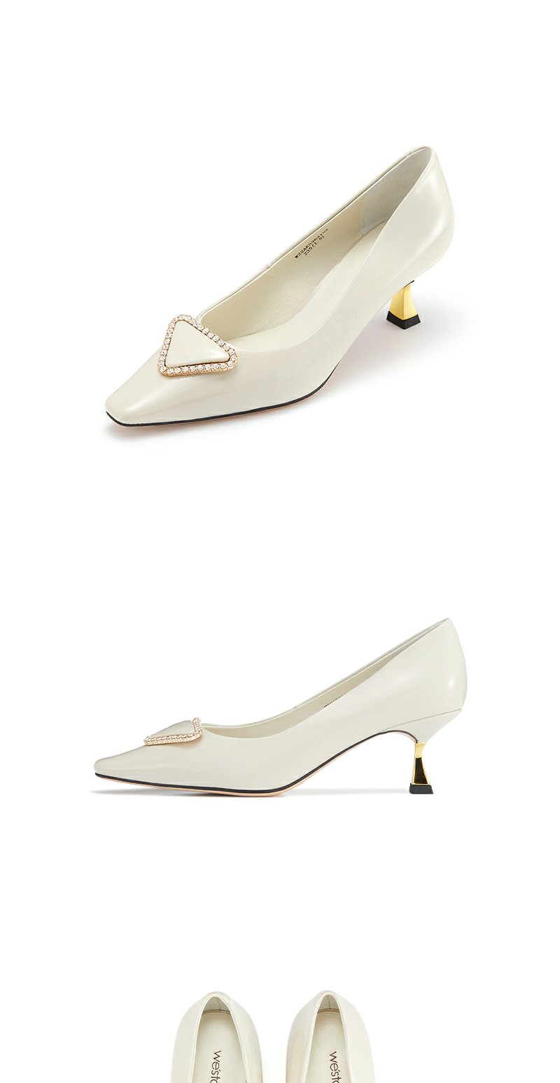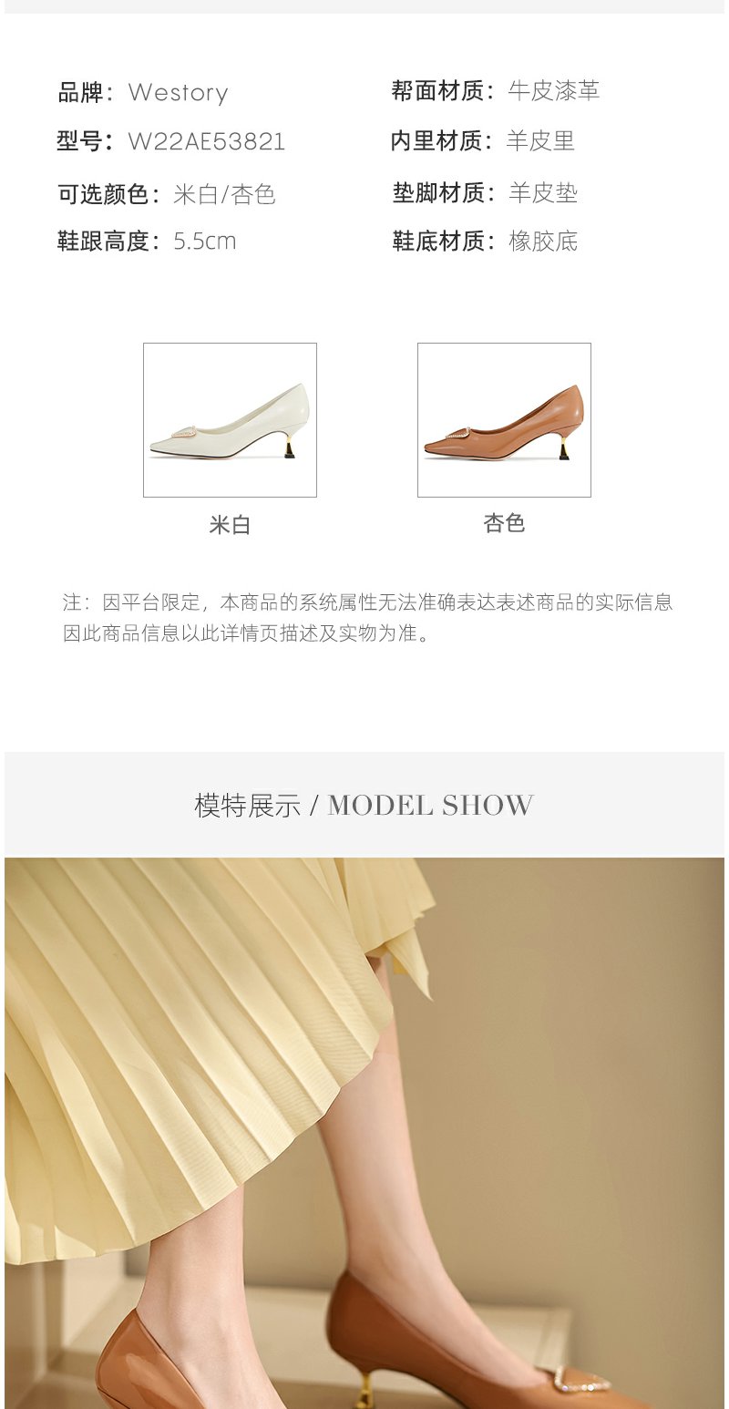 westory2022春季新款钻饰真皮法式高跟鞋方头细跟质感单鞋W22AE53821