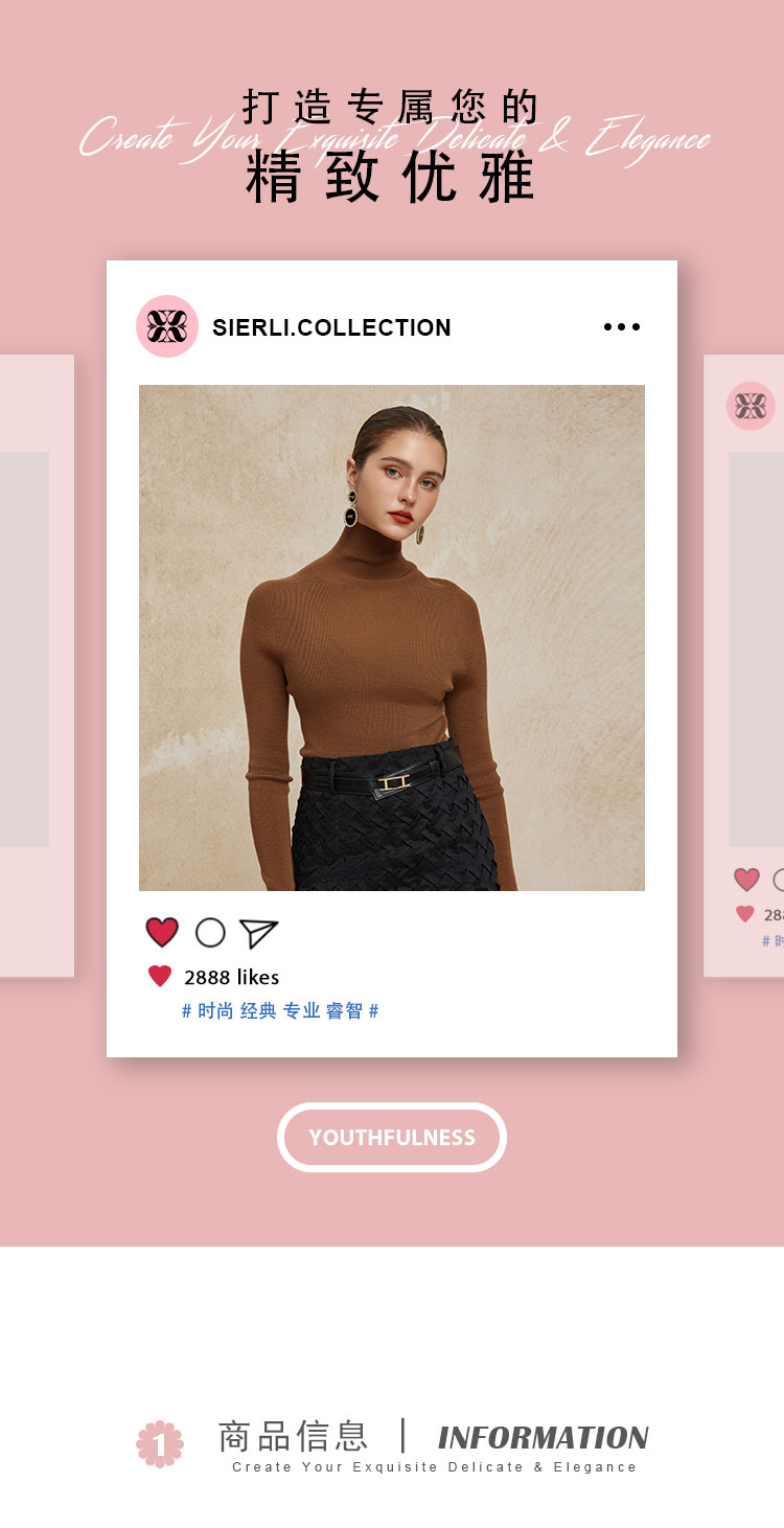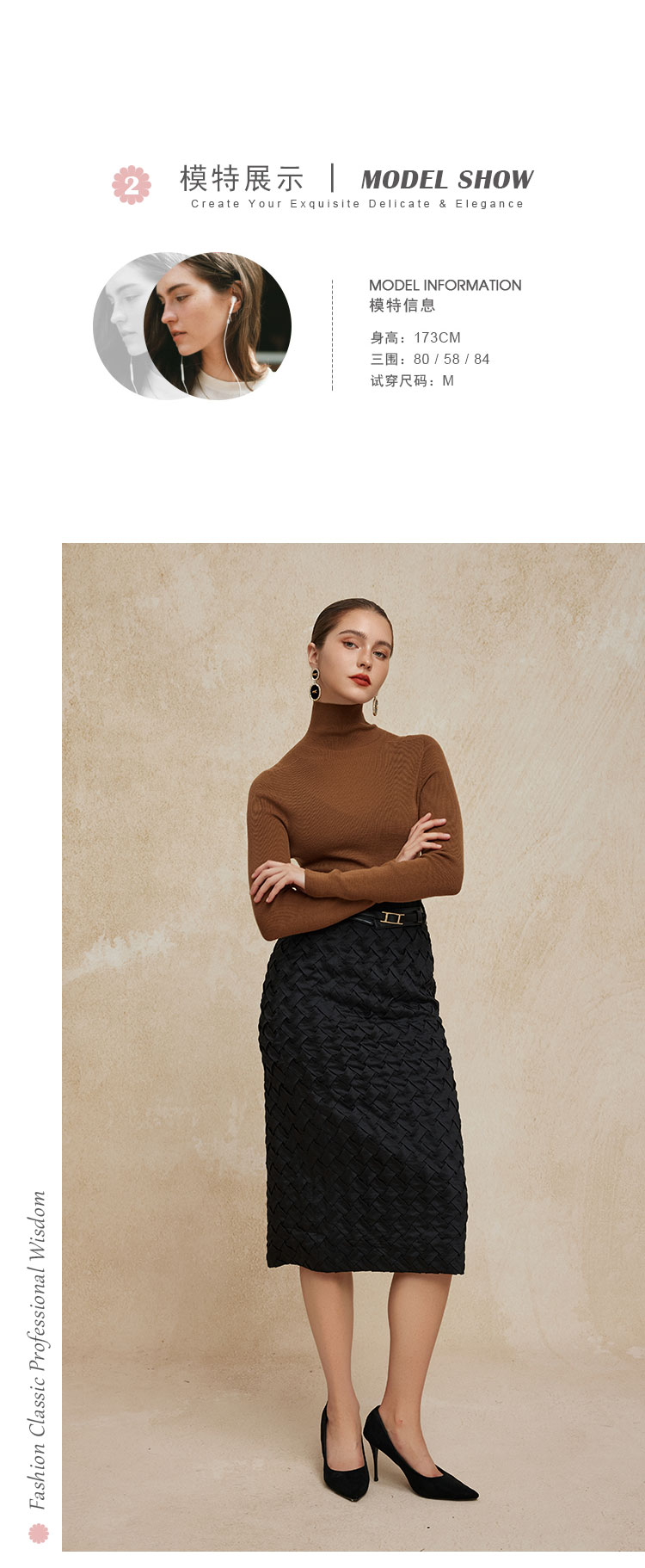 PG640斯尔丽24新款超细织18针新澳3D无缝套衫柔软修身高领羊毛衫