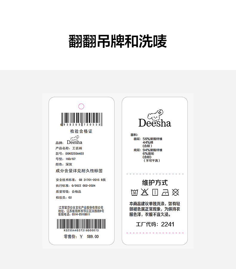 笛莎Deesha青少年女童裤子2025冬季女童加绒宽松潮酷工装裤