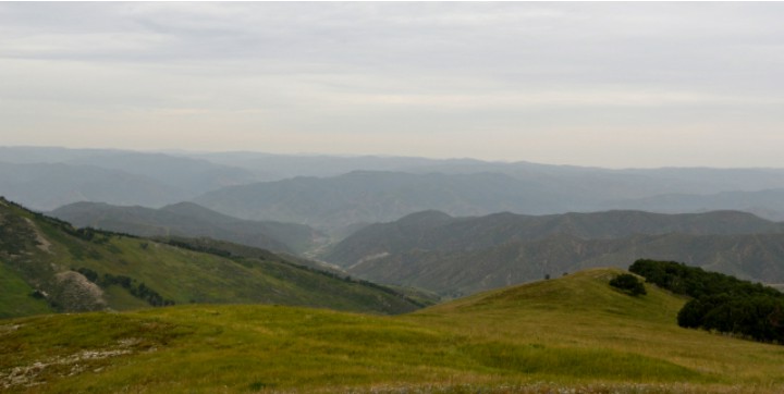 灰腾梁上南望,沟谷中呈现白色的,便是蜿蜒的道路,古来上梁必经之所在