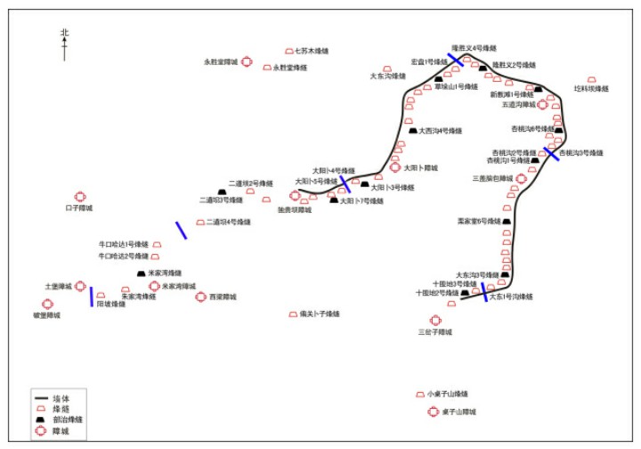 灰腾梁汉长城障城管辖范围示意图