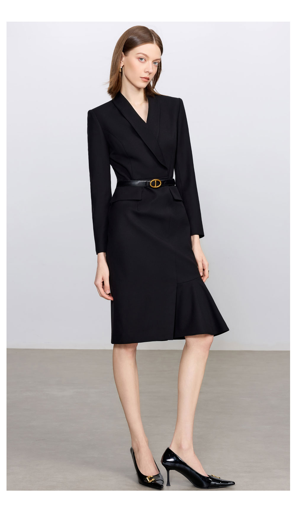 IWY/气质西装连衣裙女收腰显瘦黑色职业装干练通勤正装Q1445
