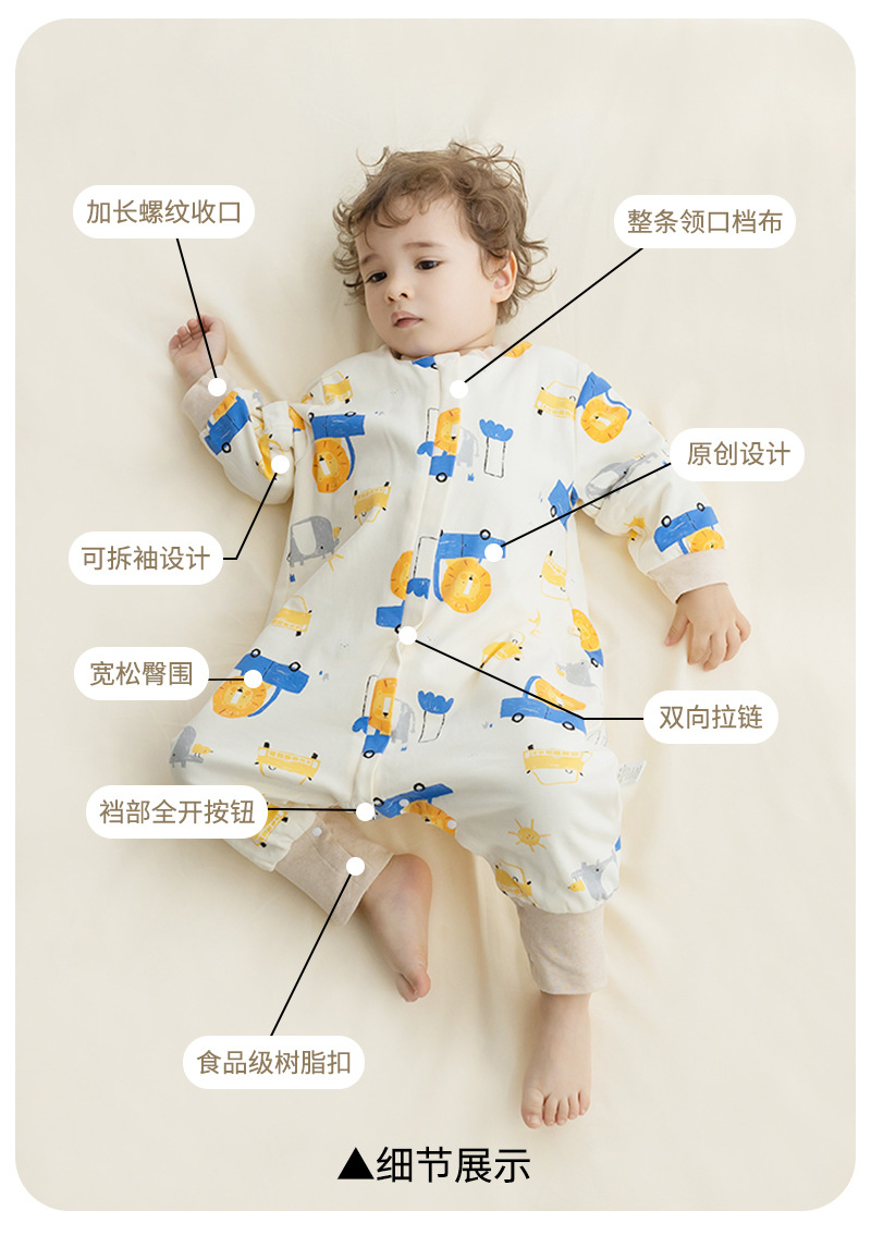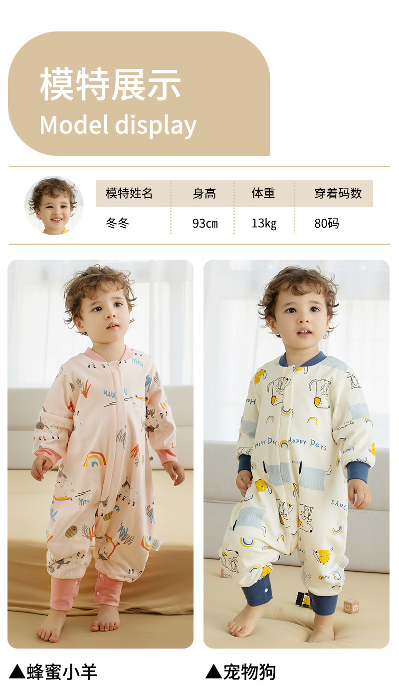 婴儿睡袋春秋冬双层纯棉宝宝睡袋秋冬儿童分腿空调房防踢被四季通用