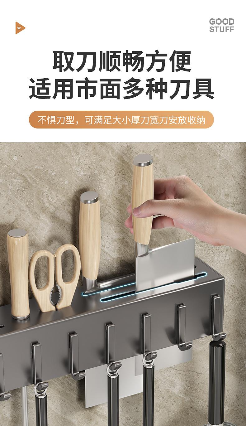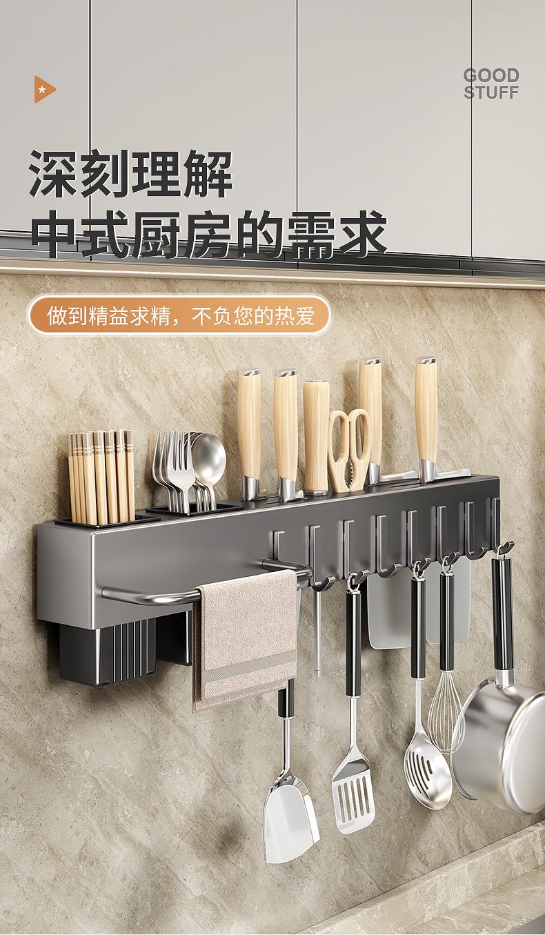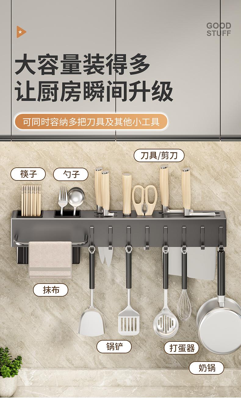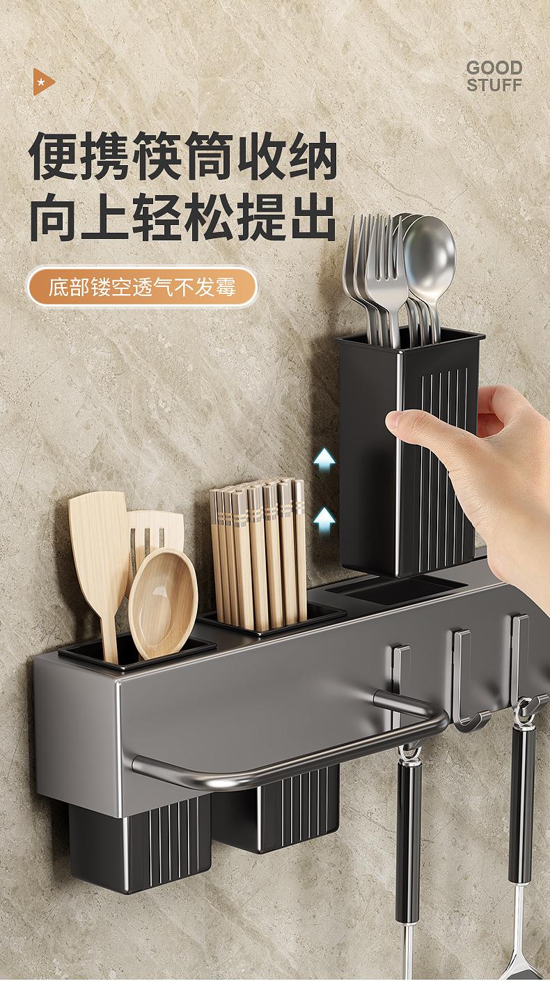 挂壁式多功能刀架免打孔厨房置物架筷笼一体厨房刀架现代收纳架