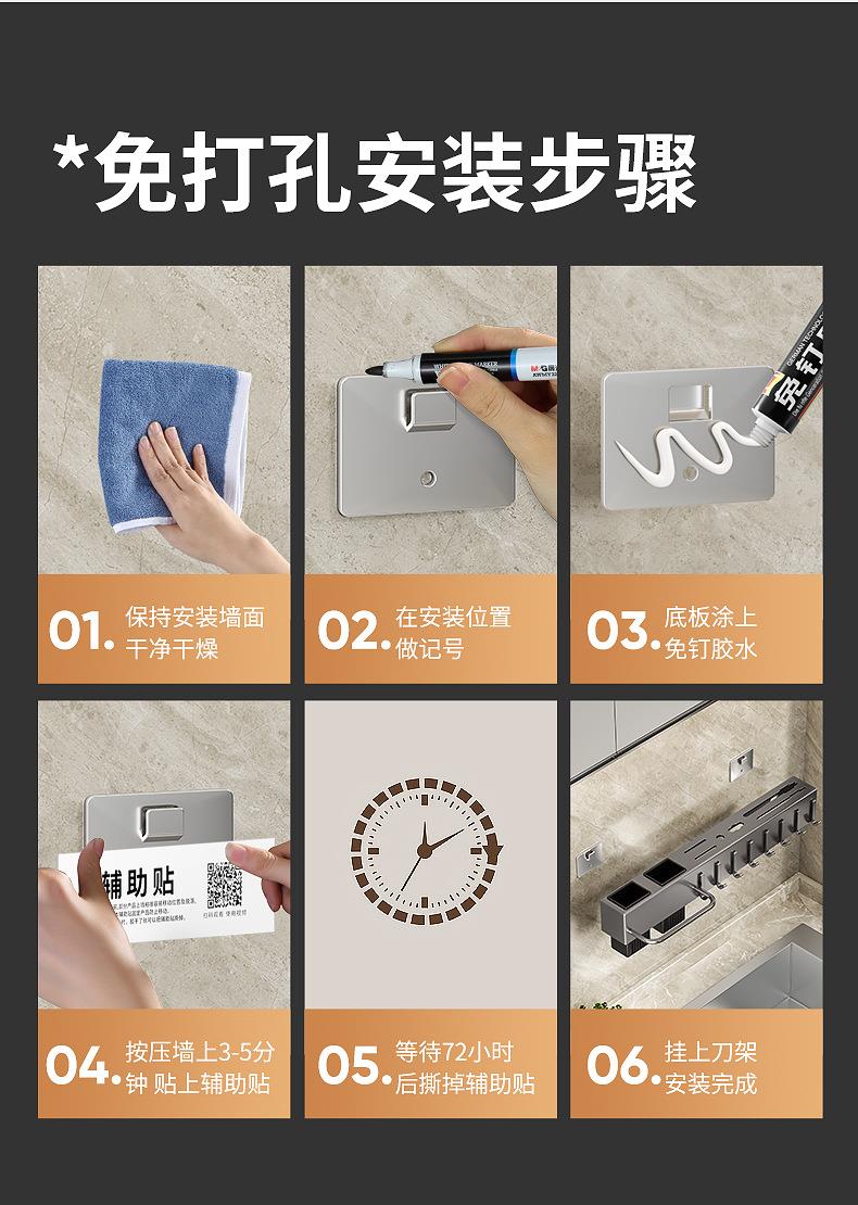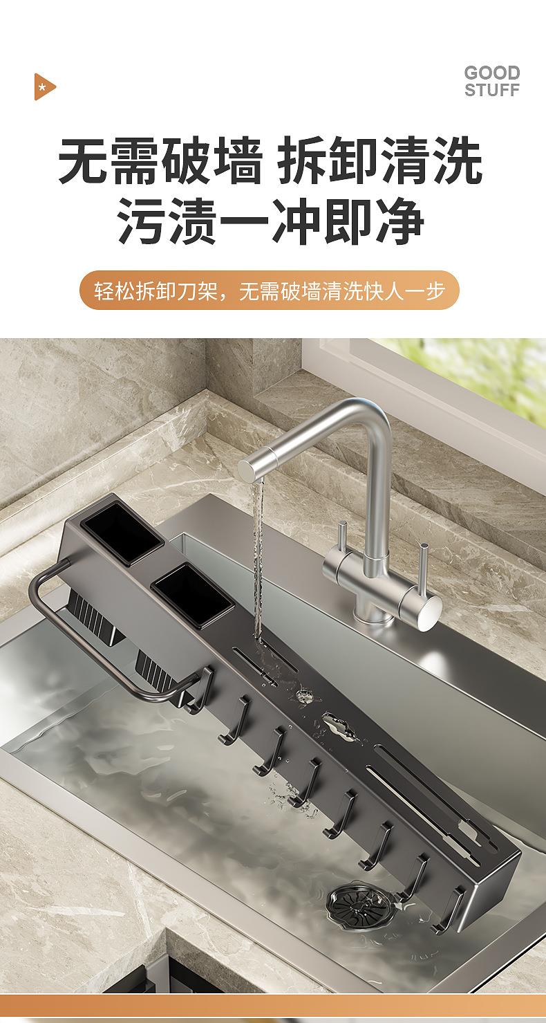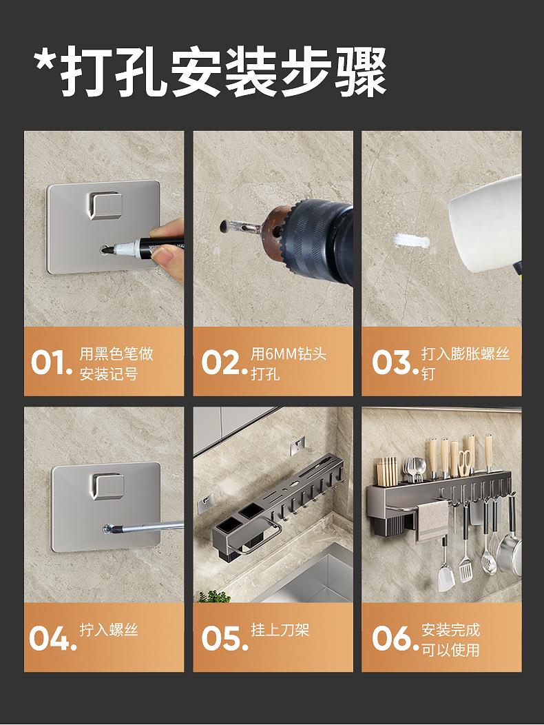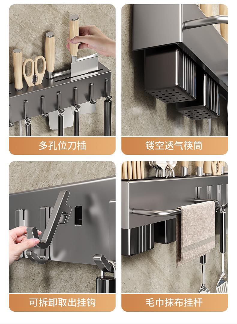 挂壁式多功能刀架免打孔厨房置物架筷笼一体厨房刀架现代收纳架