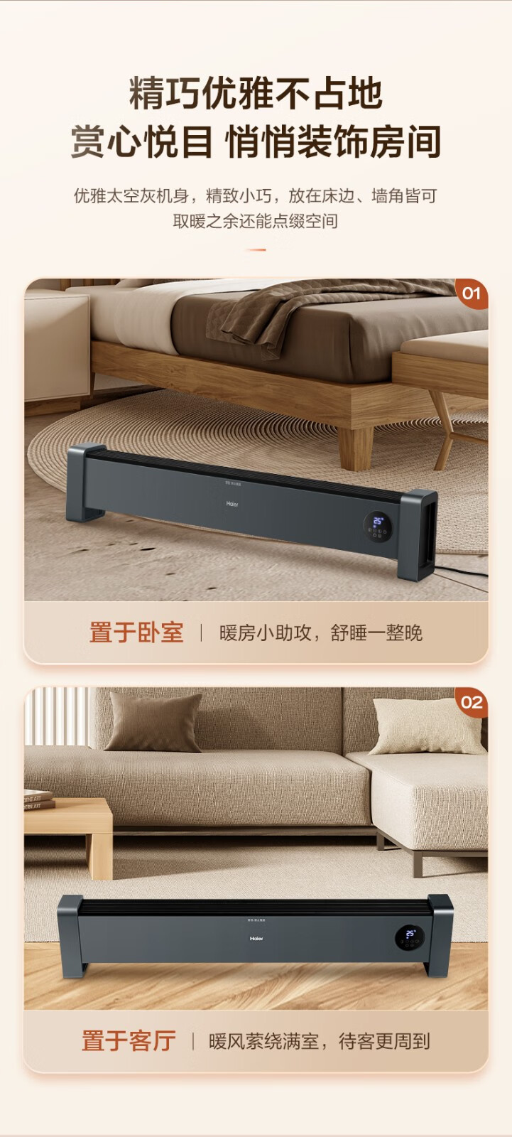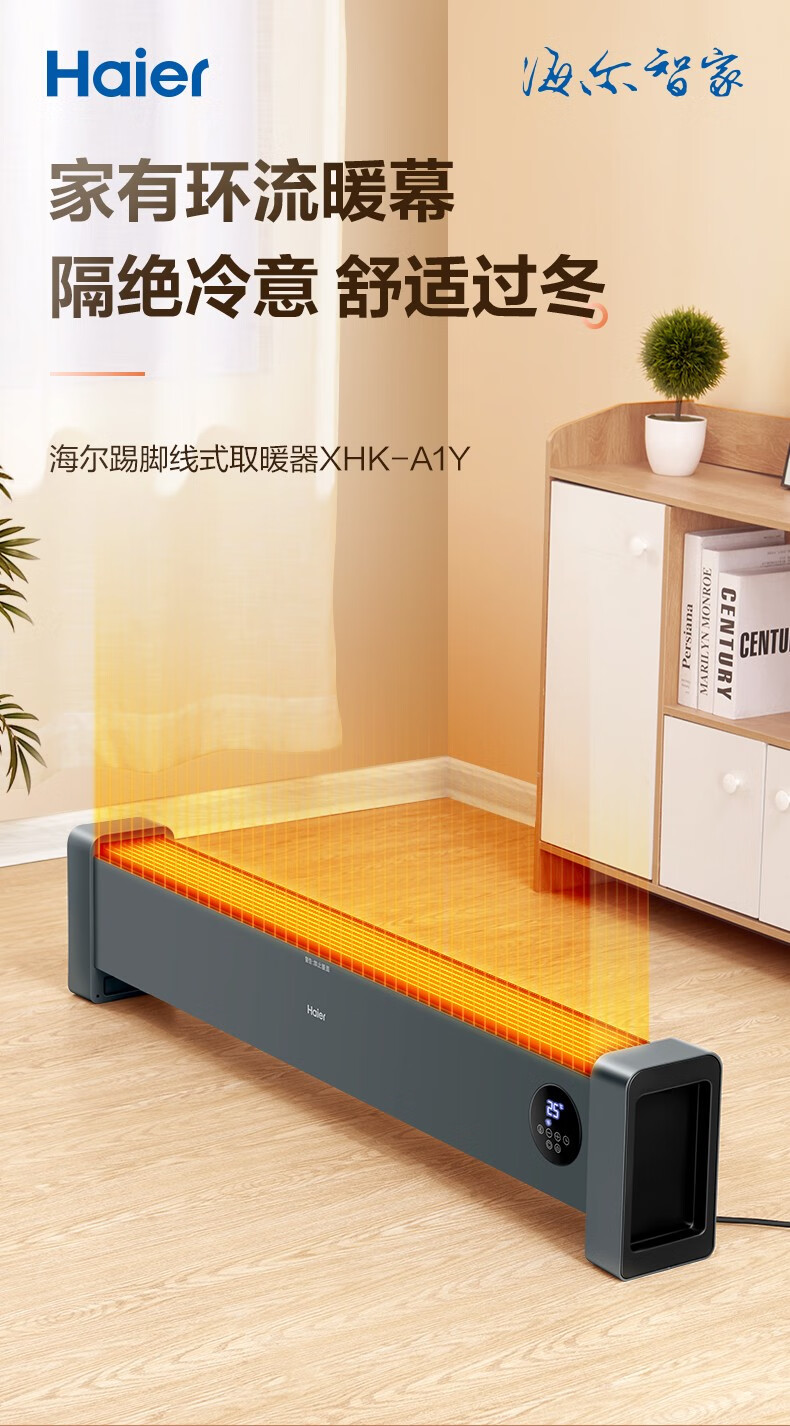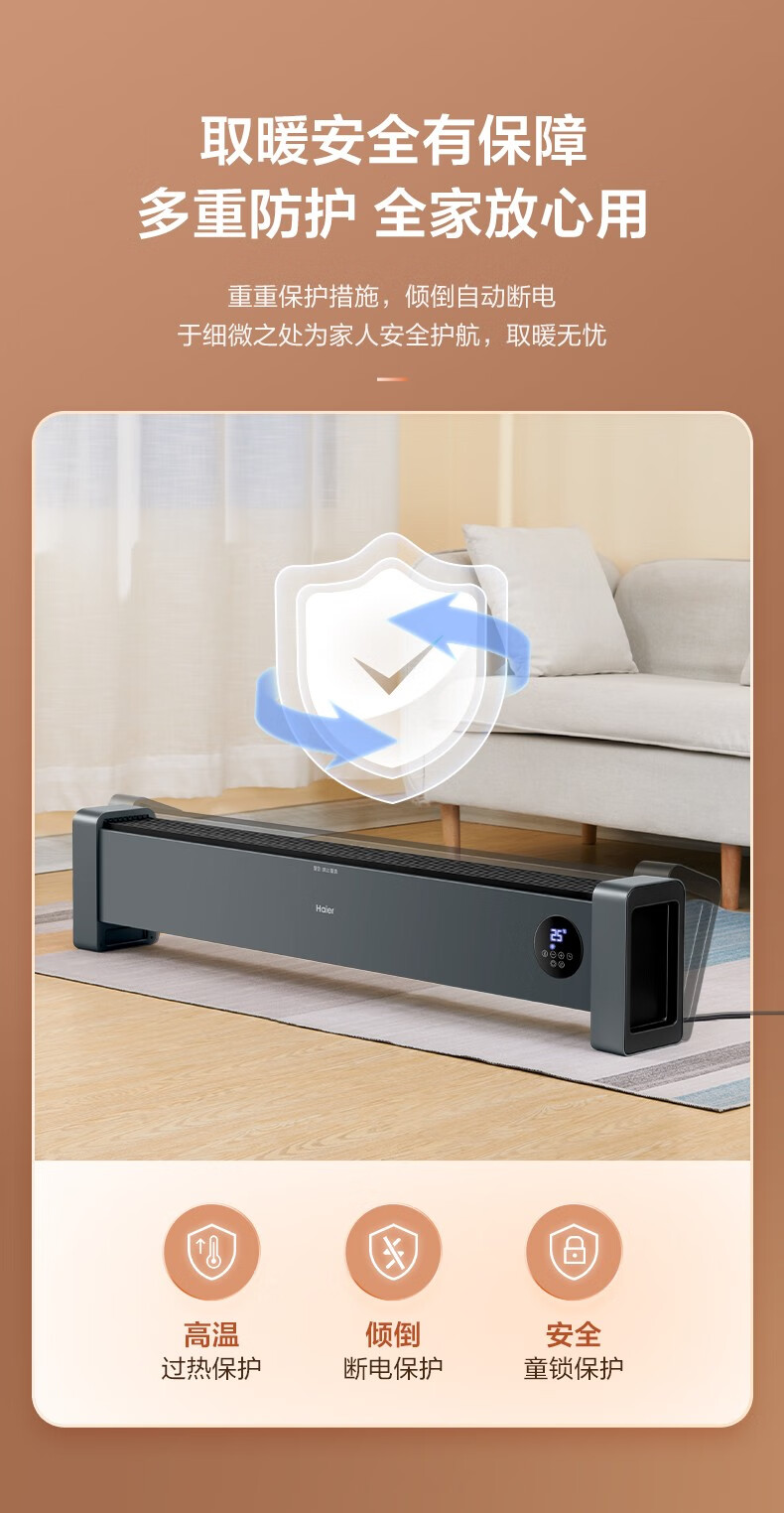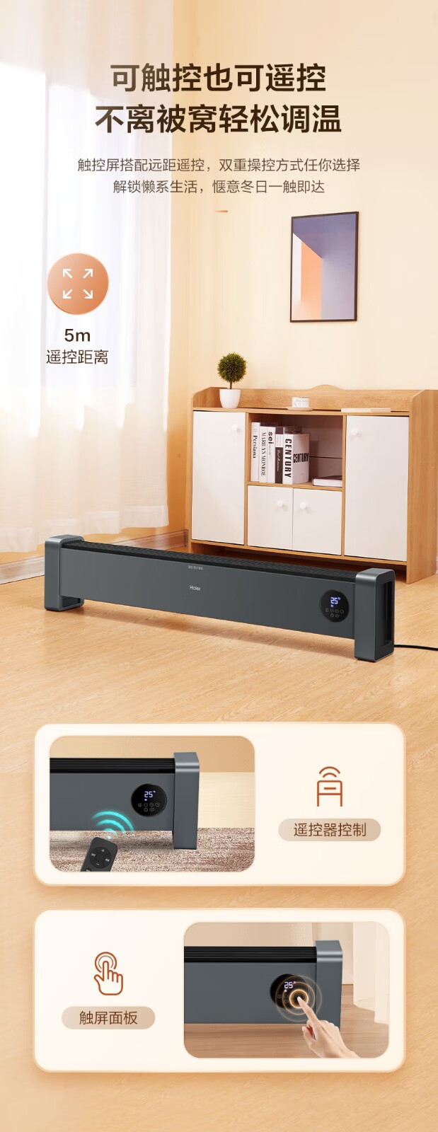 海尔(Haier) 家用客厅卧室踢脚线取暖器暖风机 触摸感应遥控个性化熄屏定时预约 XHK-A1Y