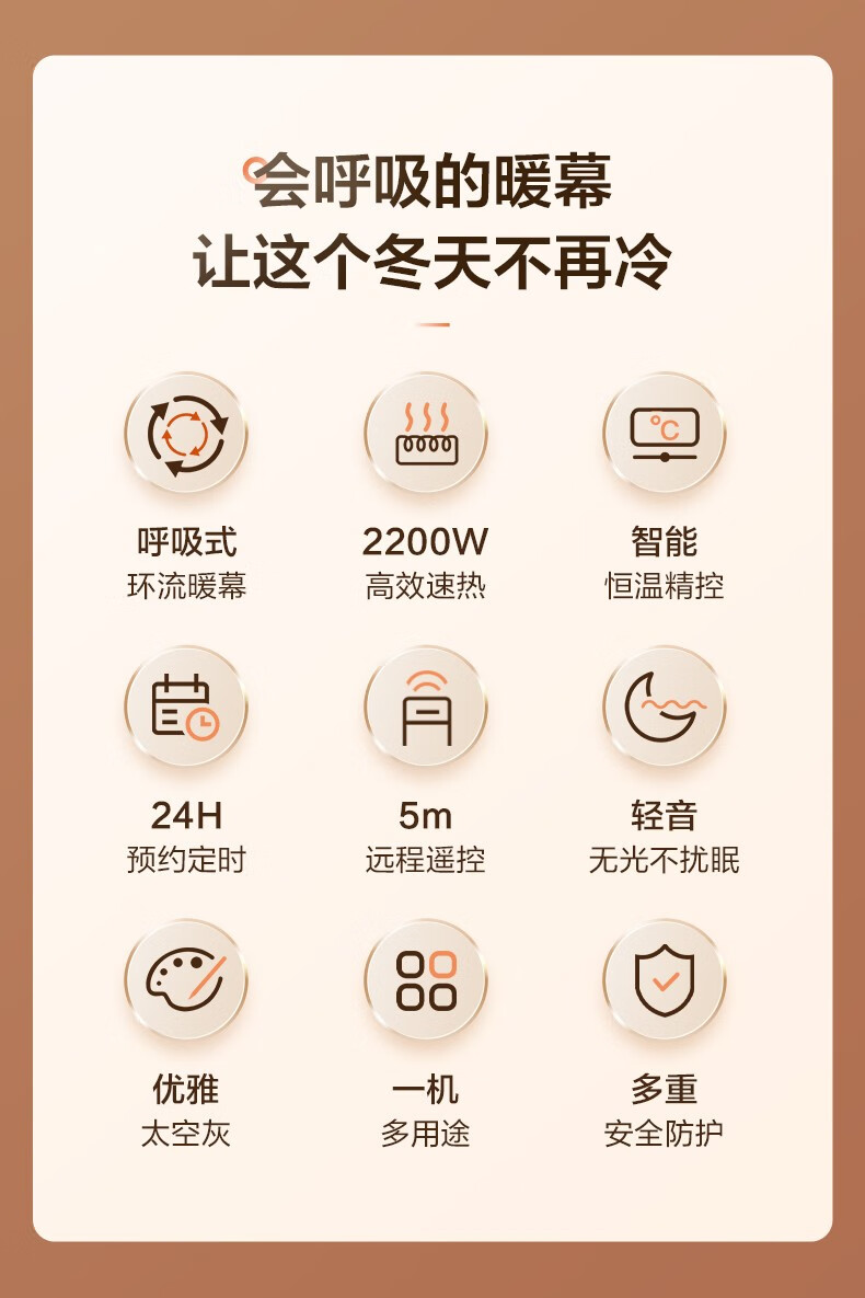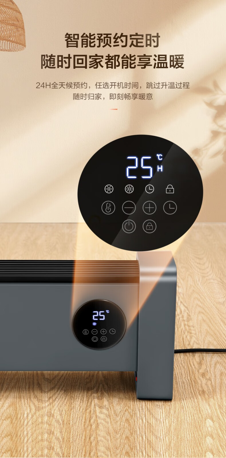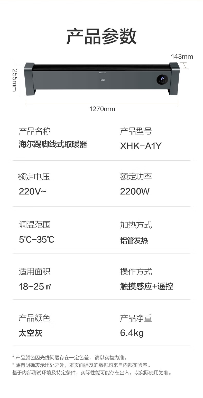 海尔(Haier) 家用客厅卧室踢脚线取暖器暖风机 触摸感应遥控个性化熄屏定时预约 XHK-A1Y