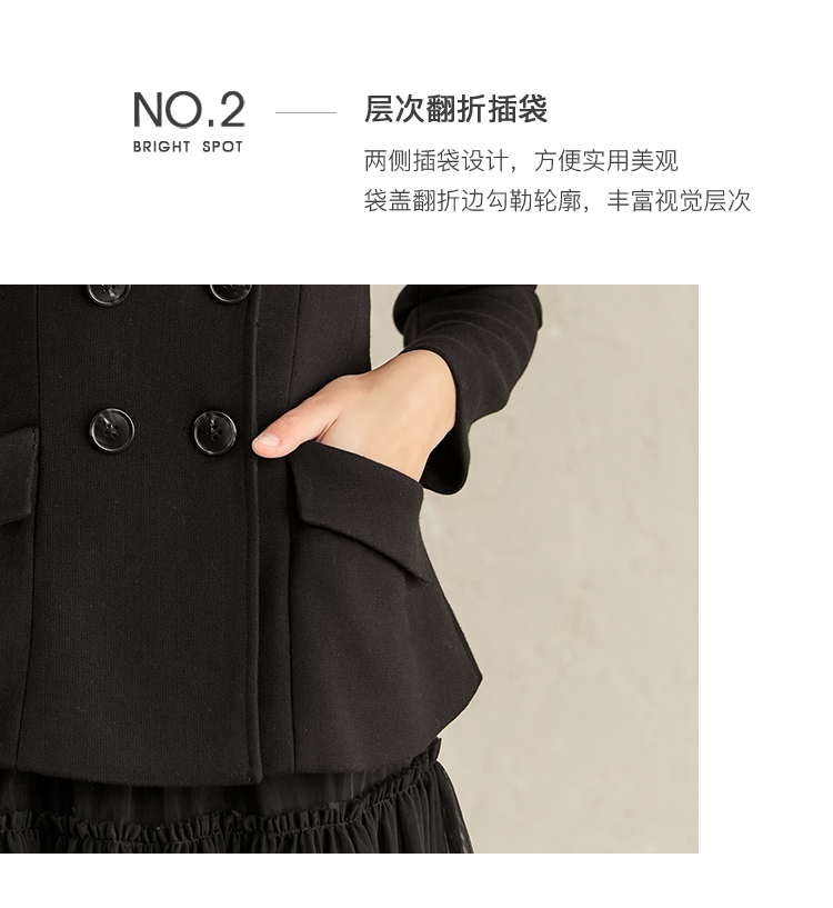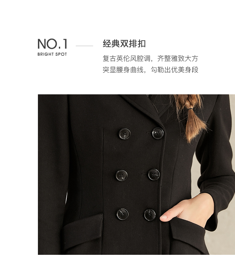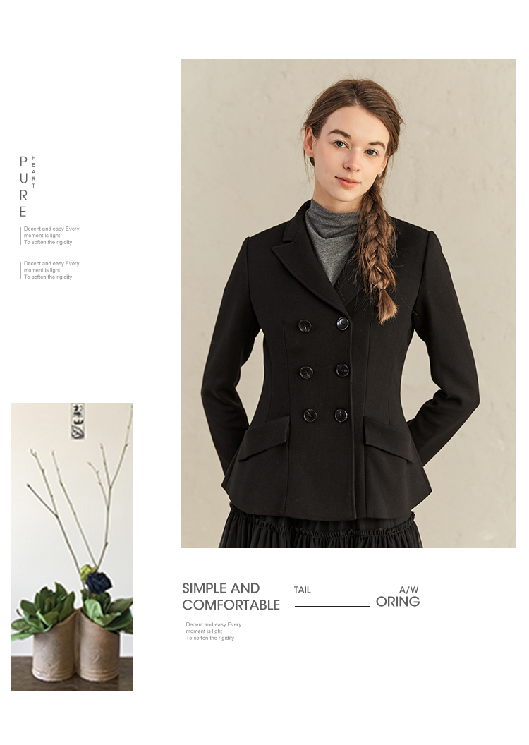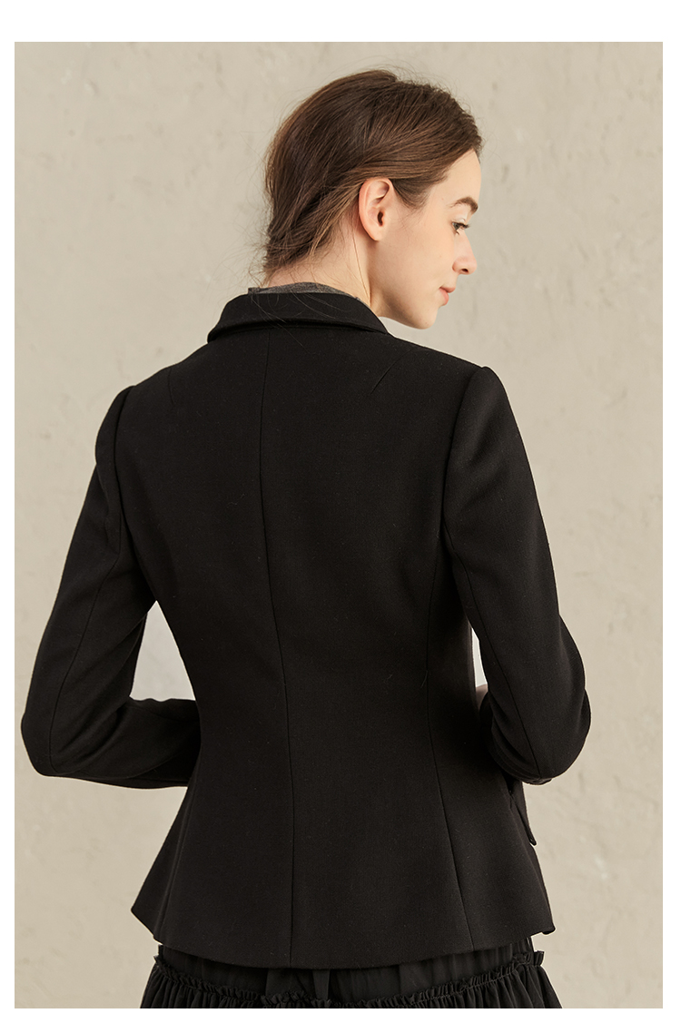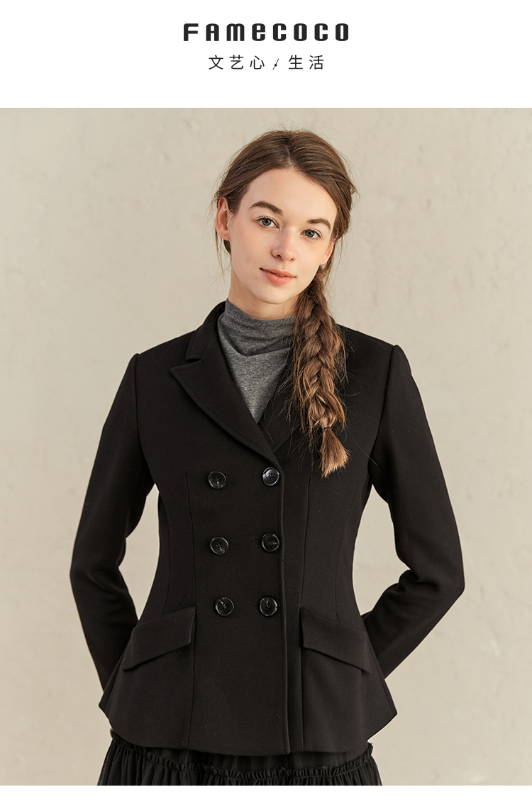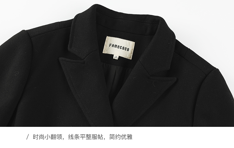 Famecoco范可儿黑色通勤职业西装女士高级气质修身西服F221AW015