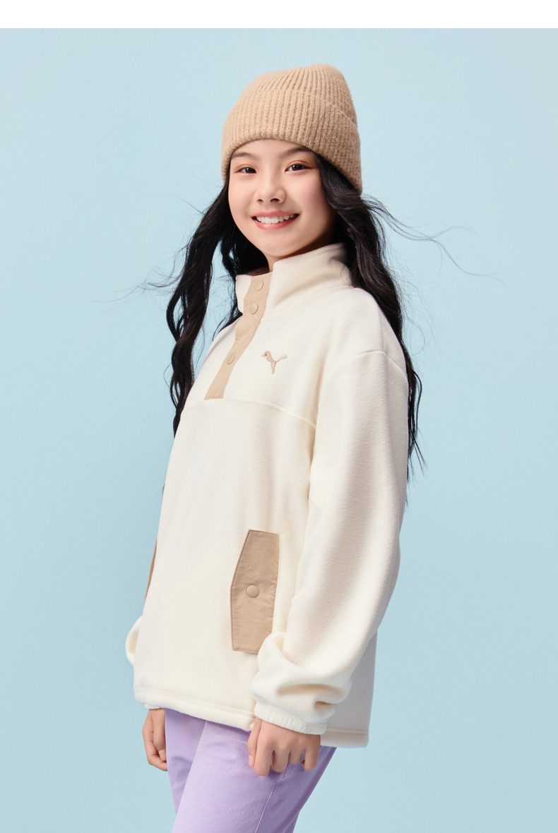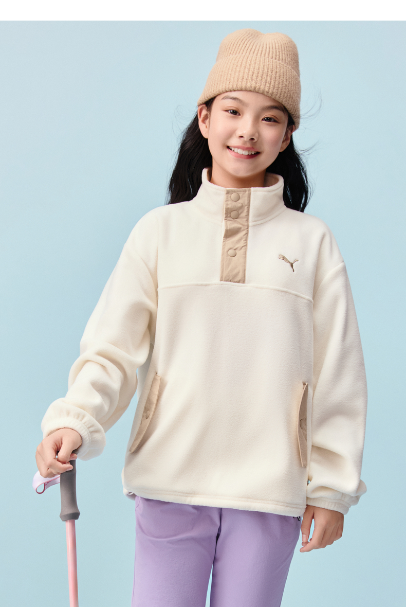 PUMA彪马官方正品 新款儿童秋冬季长袖卫衣半高领设计保暖摇粒绒