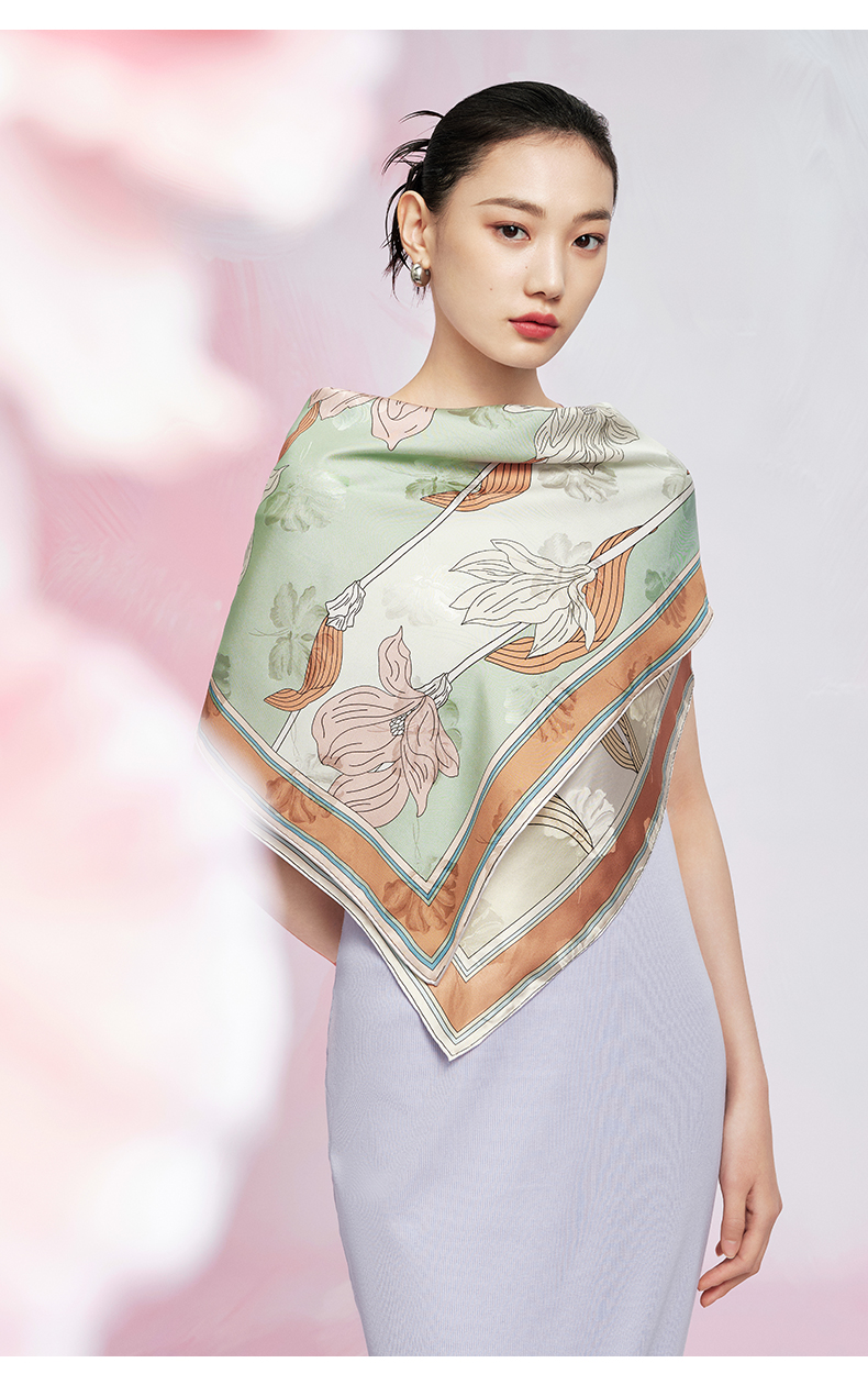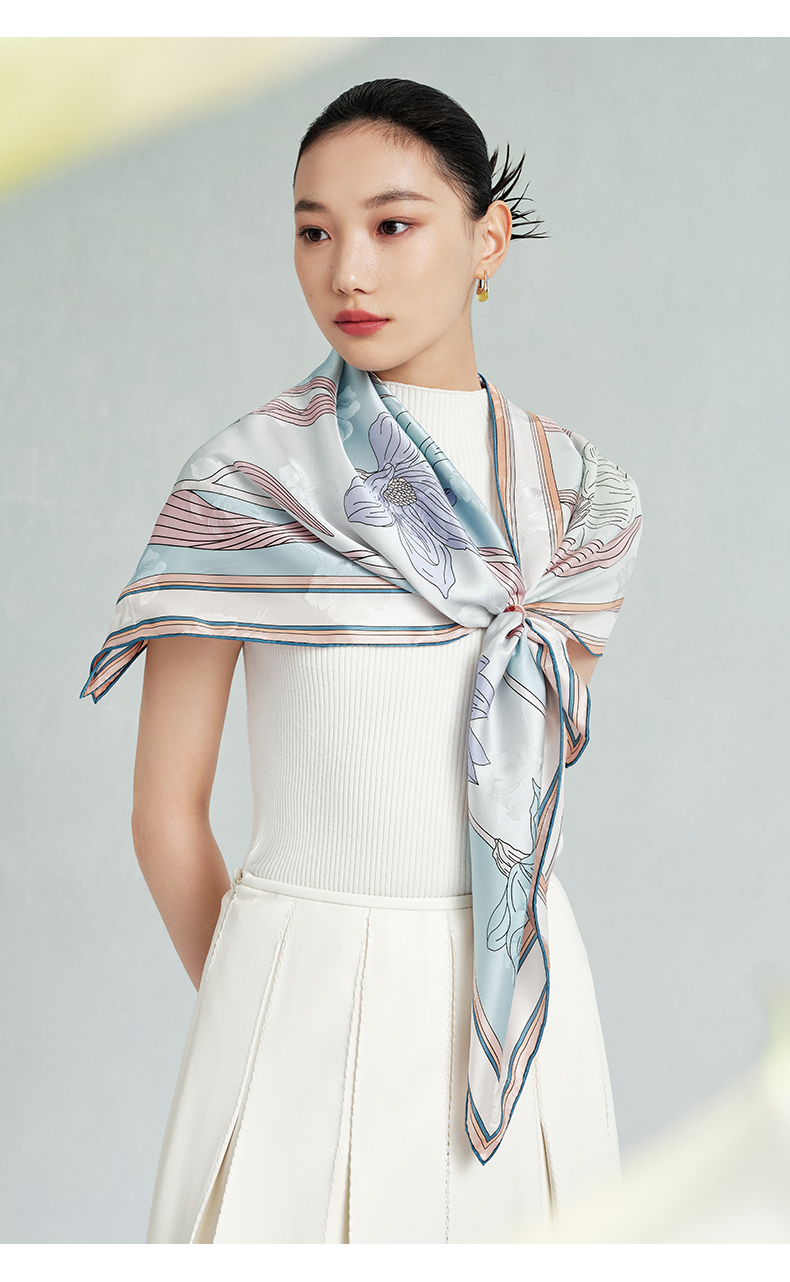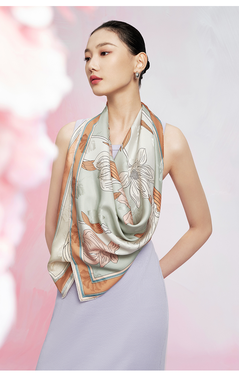 万事利“玉兰赋”63厘米双面印花真丝中方巾