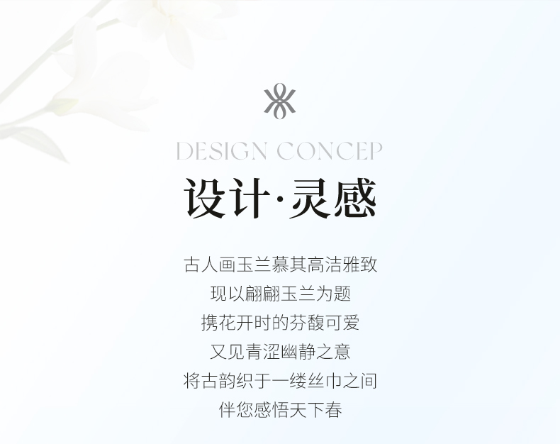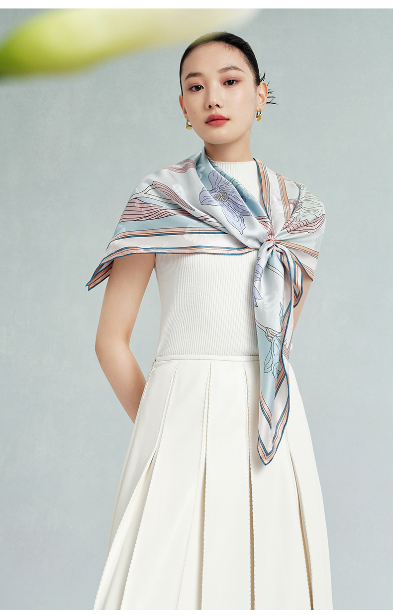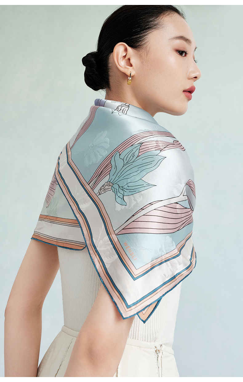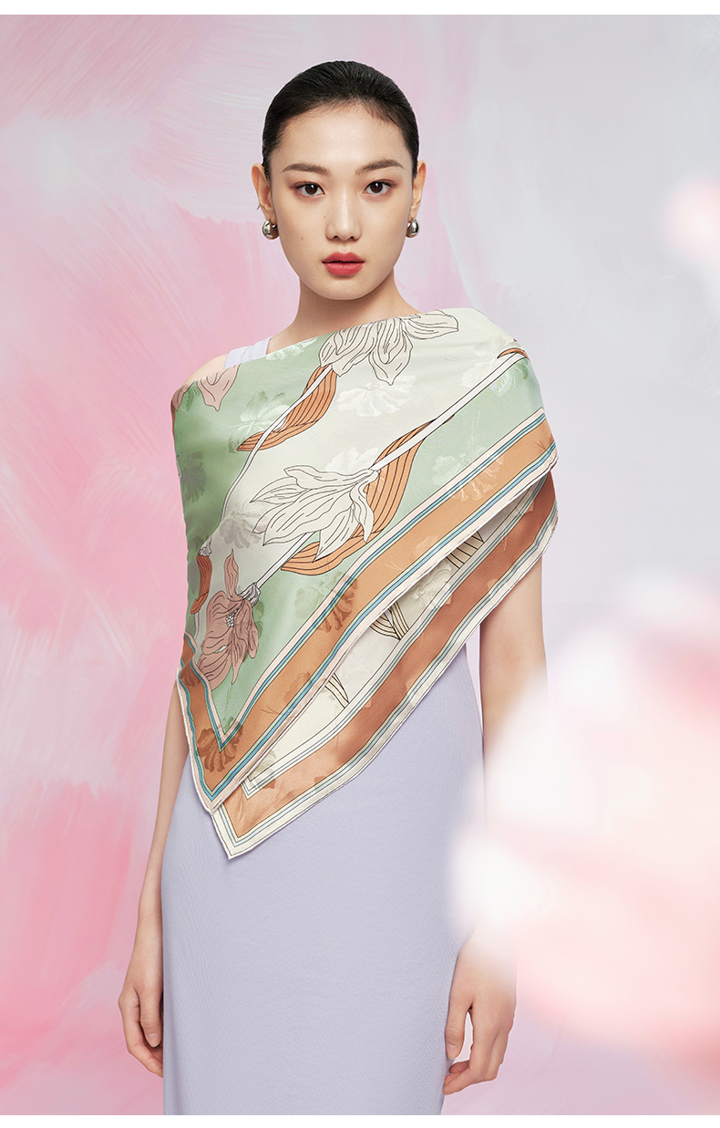 万事利“玉兰赋”63厘米双面印花真丝中方巾