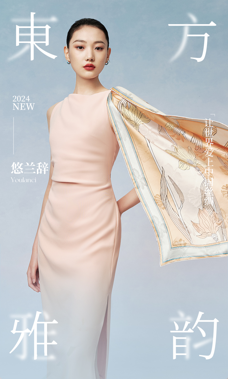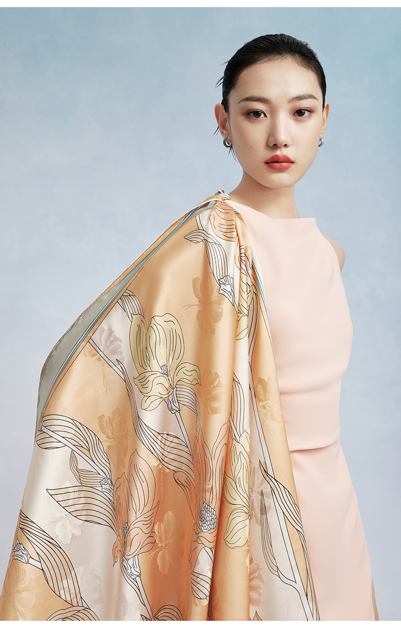 万事利“悠兰辞”88厘米双面印花大方巾