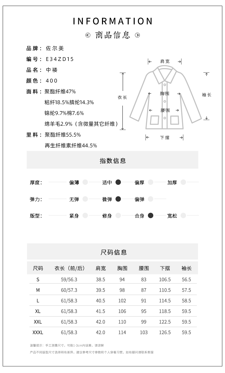 佐尔美秋季女装纯色修身显瘦中长风衣休闲外套E73FC03