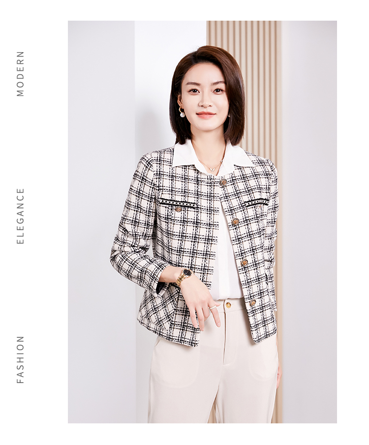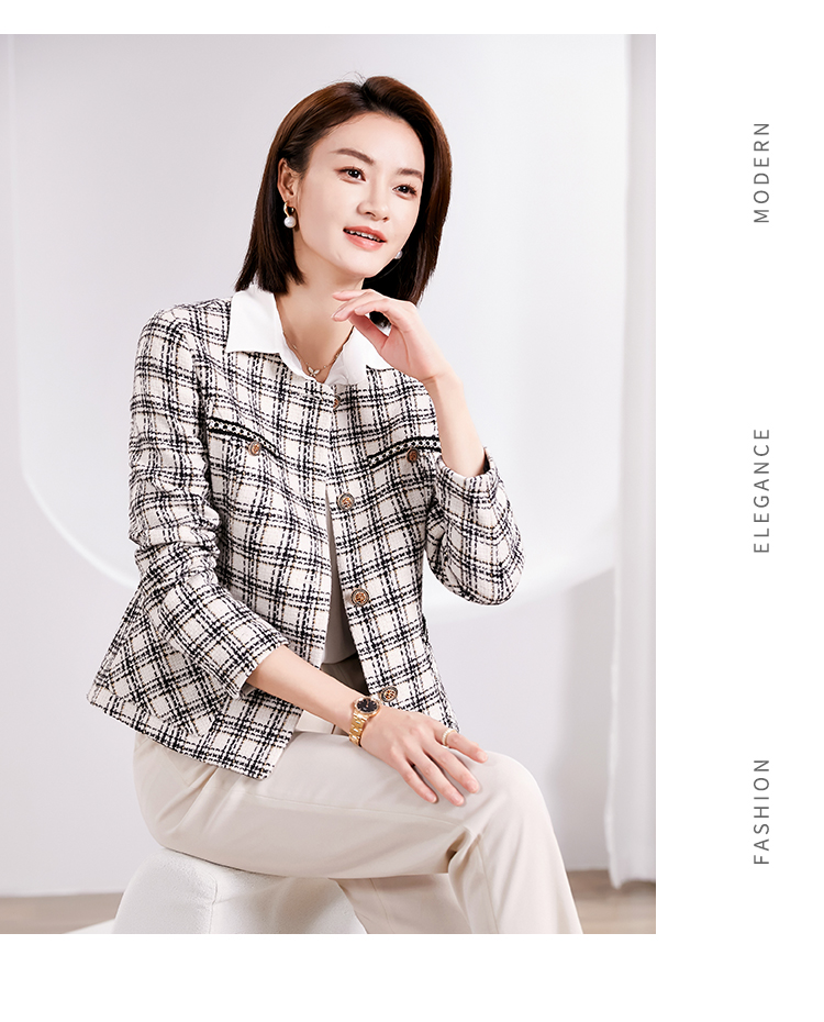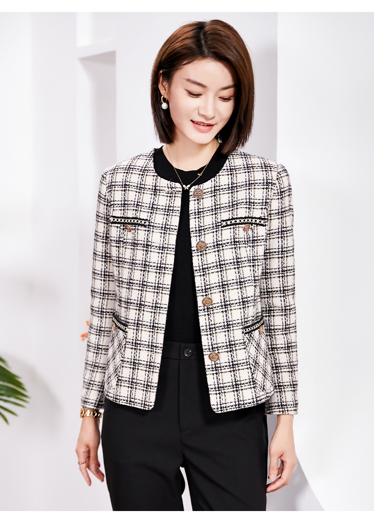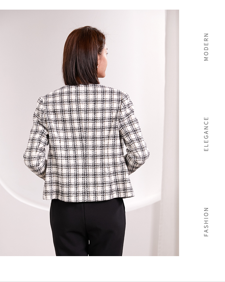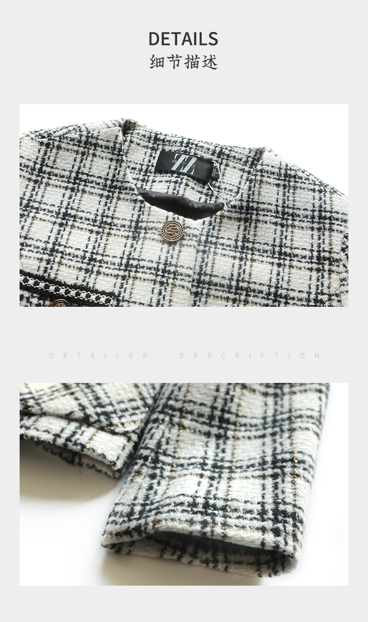 佐尔美春季新款 气质小香风千鸟格短款毛呢外套女E34ZD15