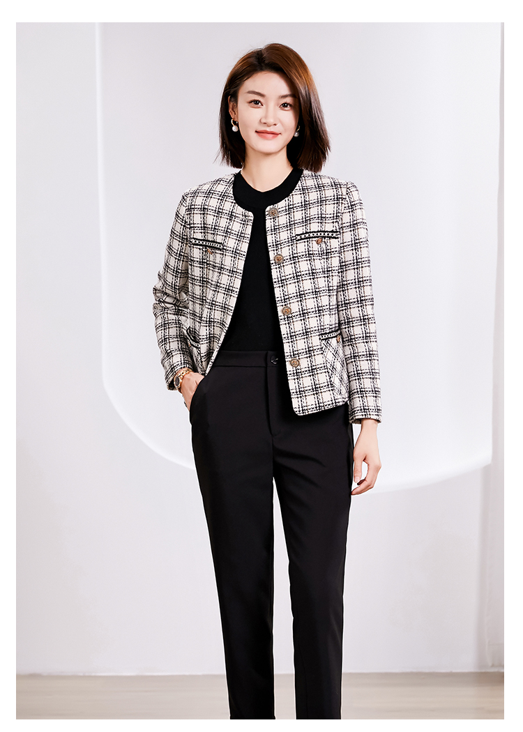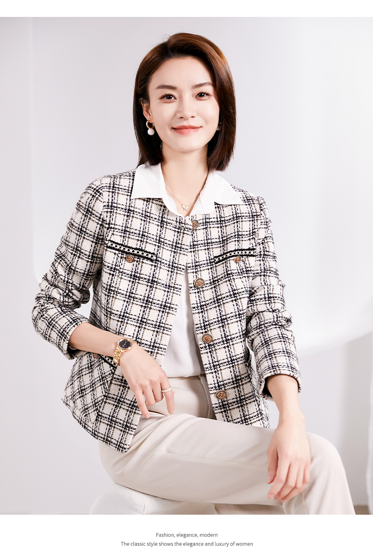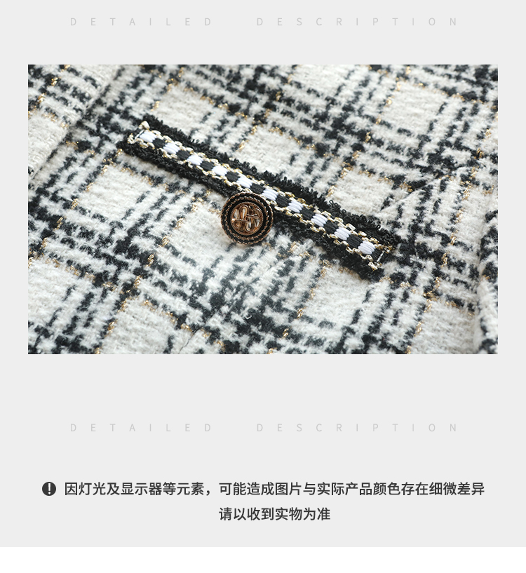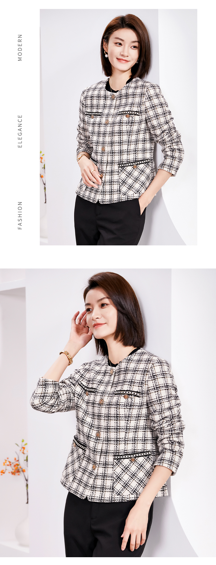 佐尔美春季新款 气质小香风千鸟格短款毛呢外套女E34ZD15