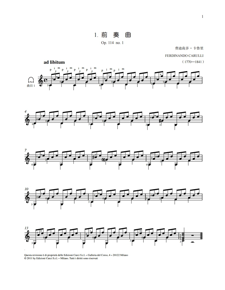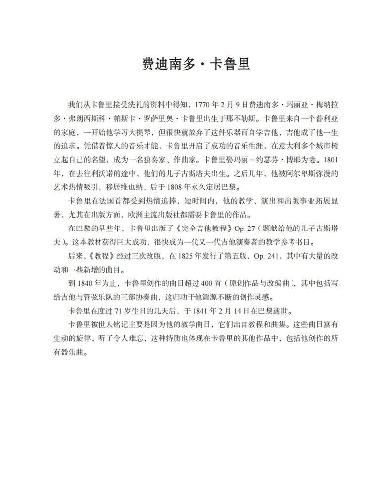 书名: 费迪南多·卡鲁里 吉他练习曲和前奏曲选集 扫码赠送音频 古典吉他大师名曲集系列