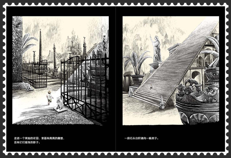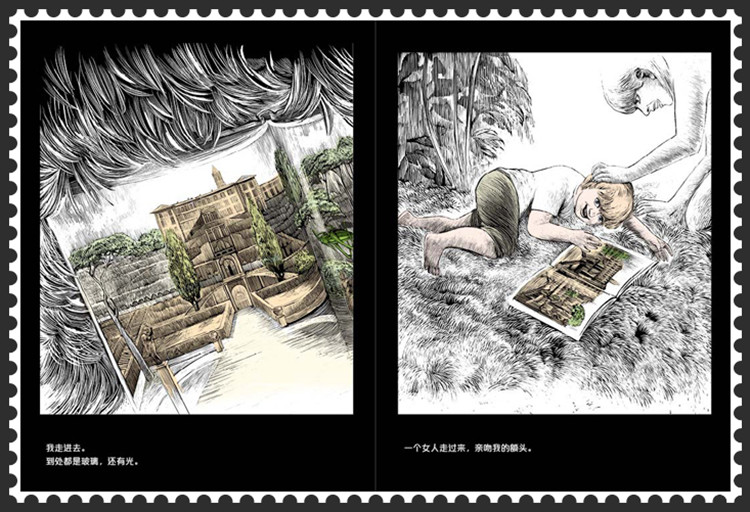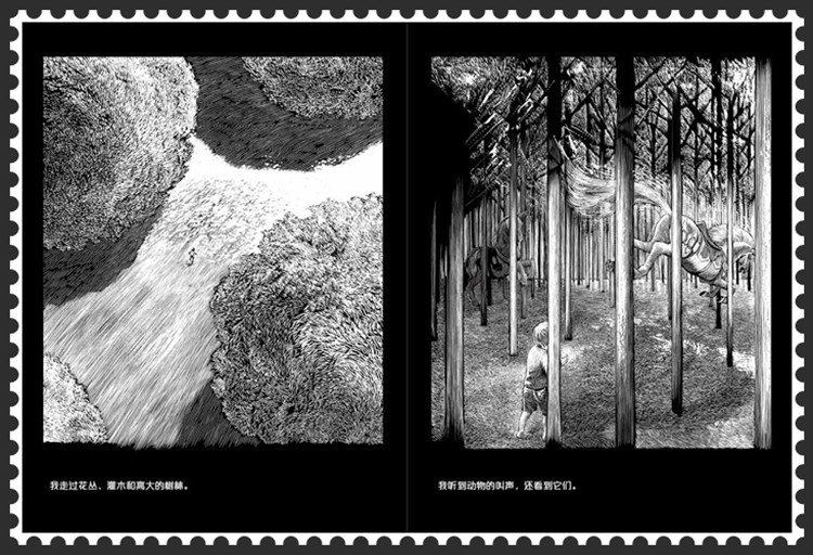走进奇妙的黑白世界 阿科/自由插画师 当我翻开《我以青草为鞋》的时候,便十分兴奋。不仅仅是因为书的内容关于梦境,也不仅仅是因为我对超现实主义作品的热衷,更多的是我在这一张张黑白分明的图画中归根溯源,回到了我与绘画结缘的起点。 小学二年级的时候,我在校图书馆看过一本书。书中的插图深深打动了我,甚至彻底影响了我对绘画的认知。那本书名字是《神曲》。当年只有小学二年级的我当然看不懂但丁的诗句,所以对《神曲》的感动完全是因为其中的插图。那些伟大的插图来自一个名为古斯塔夫·多雷的法国版画家之手,他被誉为十九世纪最伟大的插画家,其作品曾占据整个欧洲出版业市场的三分之二,在巨大的数量之外,他真正的伟大之处还在于其出神入化的技艺,比如为《神曲》配的图,已经超越了文字而独立存在,甚至让文字都成了插图的装饰。 多雷的作品影响深远,现在也多能从各种画作中看见其作品的影子,比如这本《我以青草为鞋》。 《我以青草为鞋》的绘画风格,介于铜版画和木版画之间,而这种风格也可以用针管笔,或者钢笔模仿。黑白版画是最早的插画形式。受制于印刷技术,早期图书的插画都以版画形式进行创作。因为颜色的限制,作者必须用单色(多为黑色)来完成整部作品,这使得早期插画都以线条勾勒轮廓为主,这多少有些类似我们今天说的动漫风格。 当人们看到这些黑白画作的时候,可能会感觉画面不只有黑色,还有灰色,其实那些灰色只是一些细小的黑线通过不同的疏密组合而成,好的黑白作品有着丰富的光感以及层次感,十分接近现代摄影作品。 在《我以青草为鞋》中也体现了这些特点,黑白分明的线条,细腻的光线处理以及丰富的层次感使画面呈现出更强的立体感,而立体感强化了画面的真实性。但本书的内容是非真实的,所以当反差明显的内容和画面呈现在读者面前时,就从虚空中裂开了超现实的口子,然后从中抖落出真伪难辨的梦境和幻想。 由于是一本图画书,绘者汉内斯·宾德尔并不像多雷的作品那样强调画面的独立性,而是采用了连续性的构图来带动故事的发展,有些类似电影的分镜台本。 |