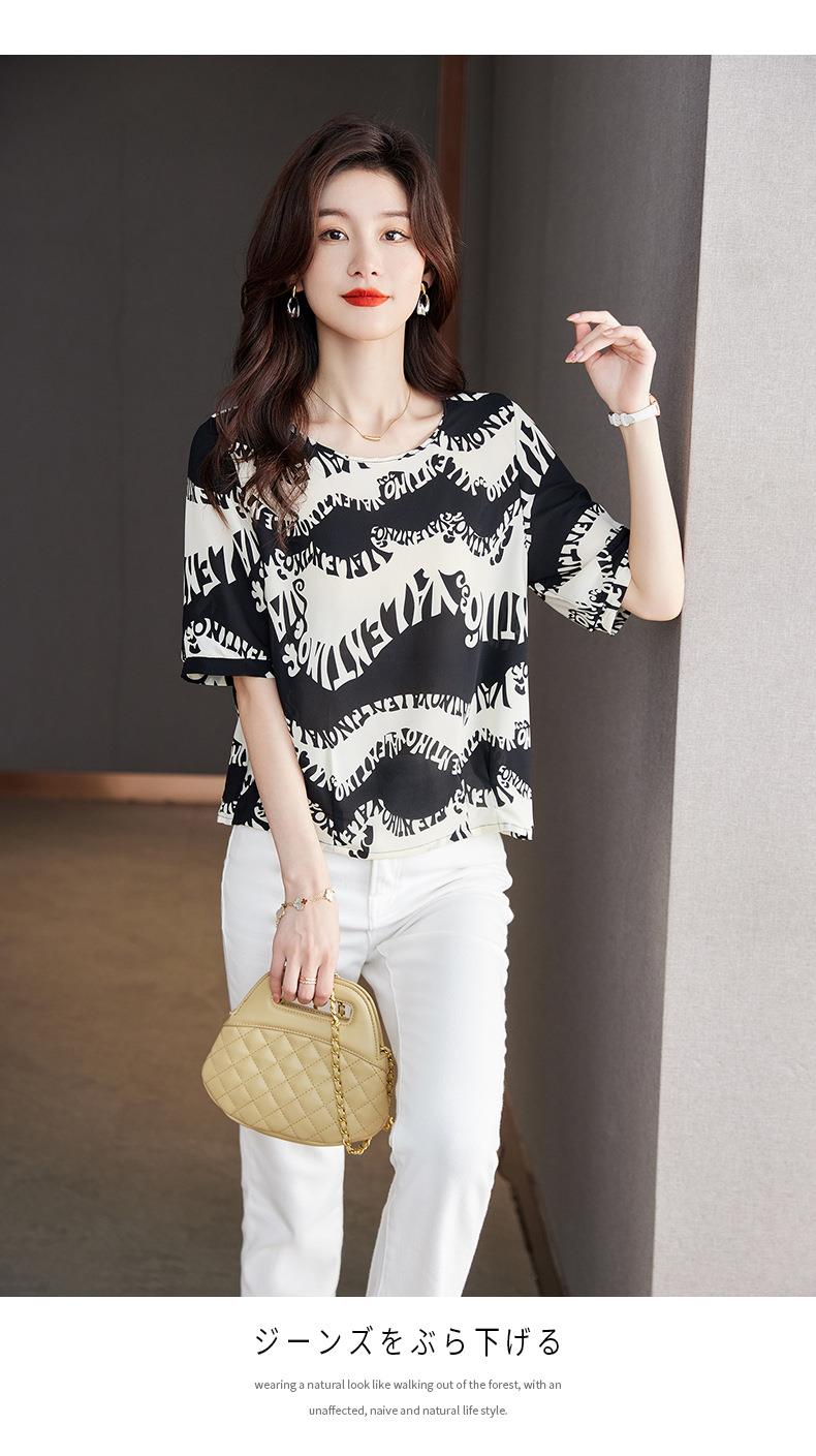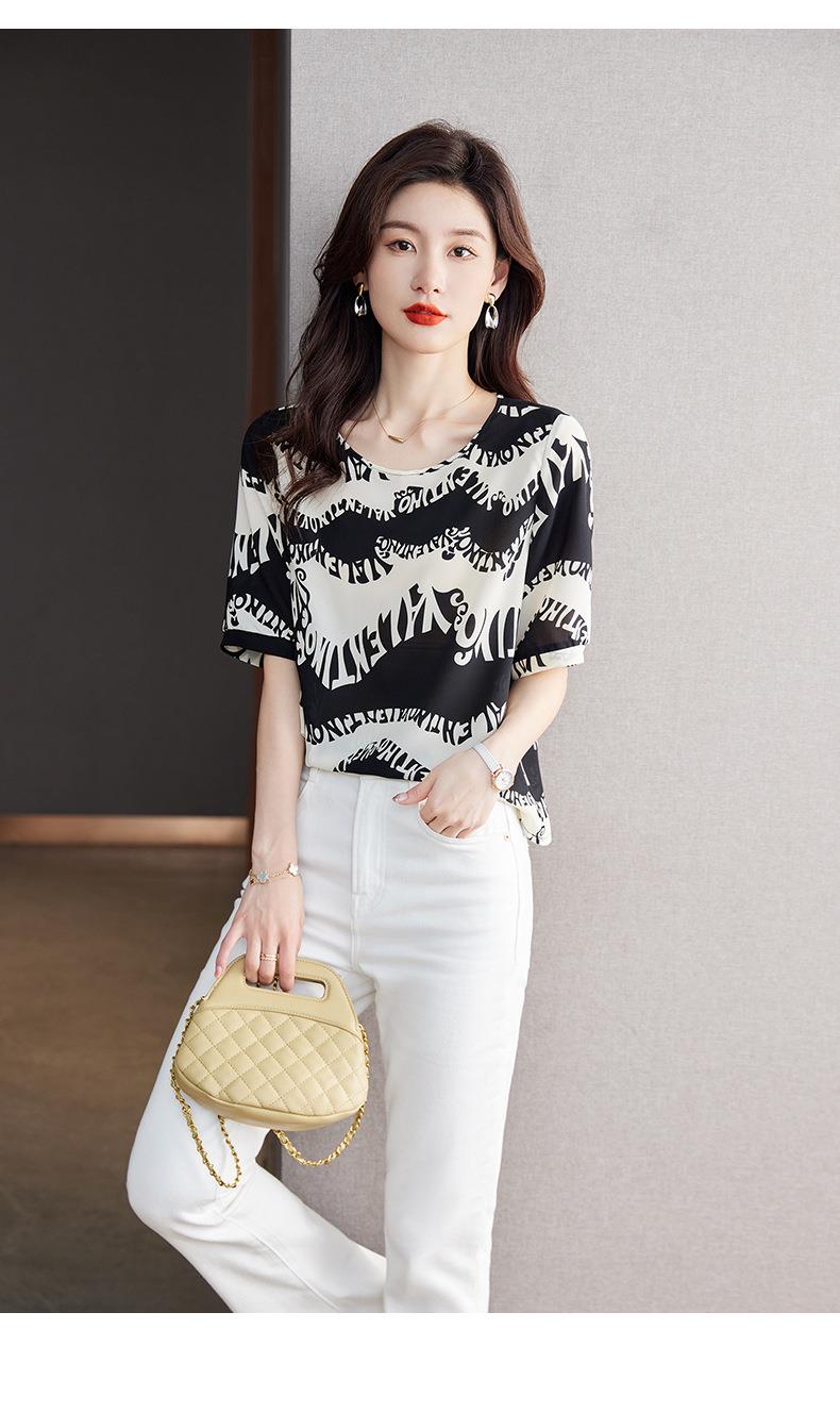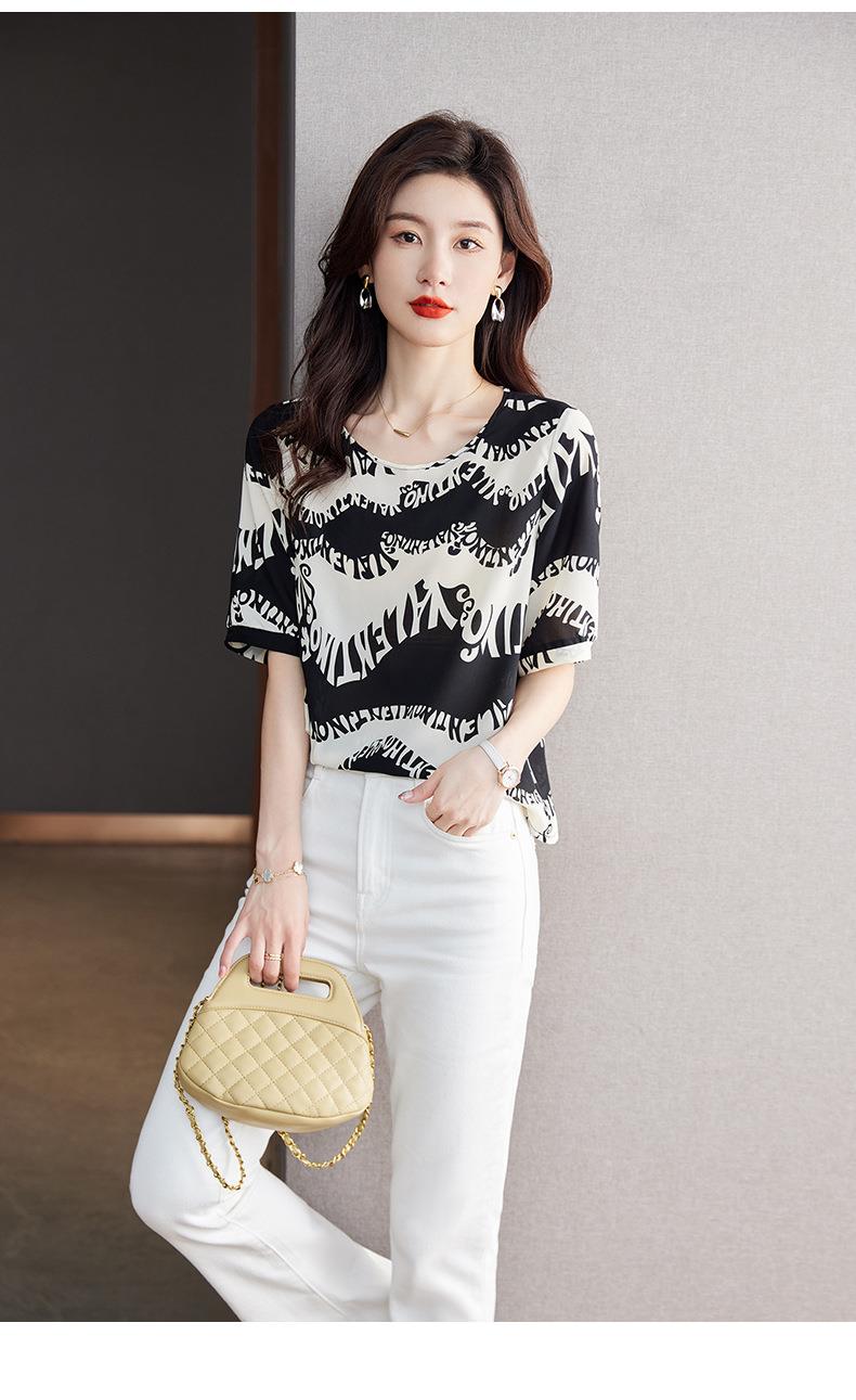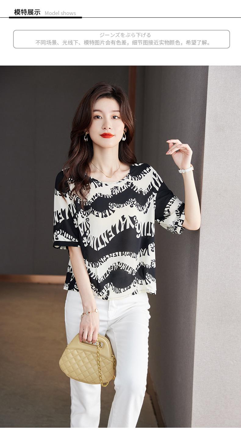 2023夏季新款雪纺衫短袖衬衫女大码T恤圆领小衫洋气5011