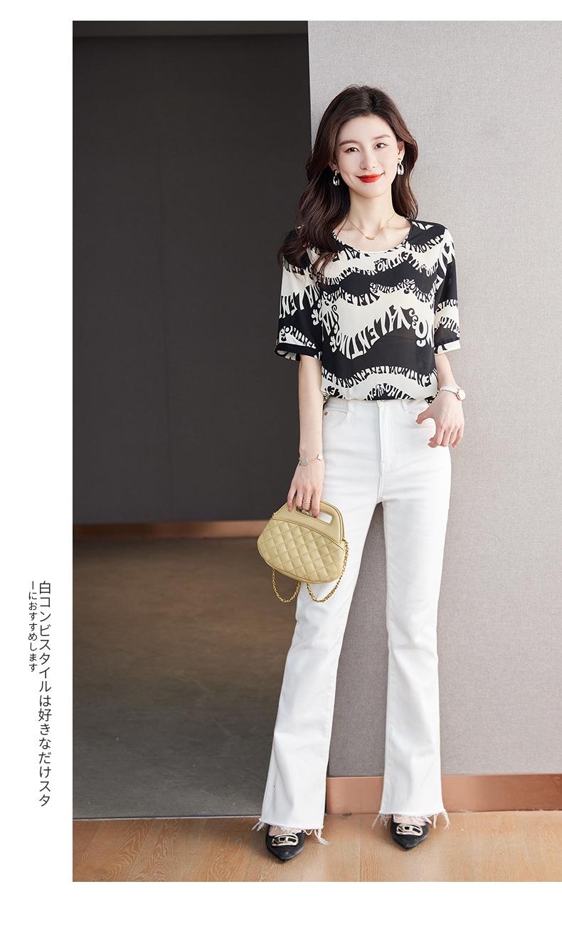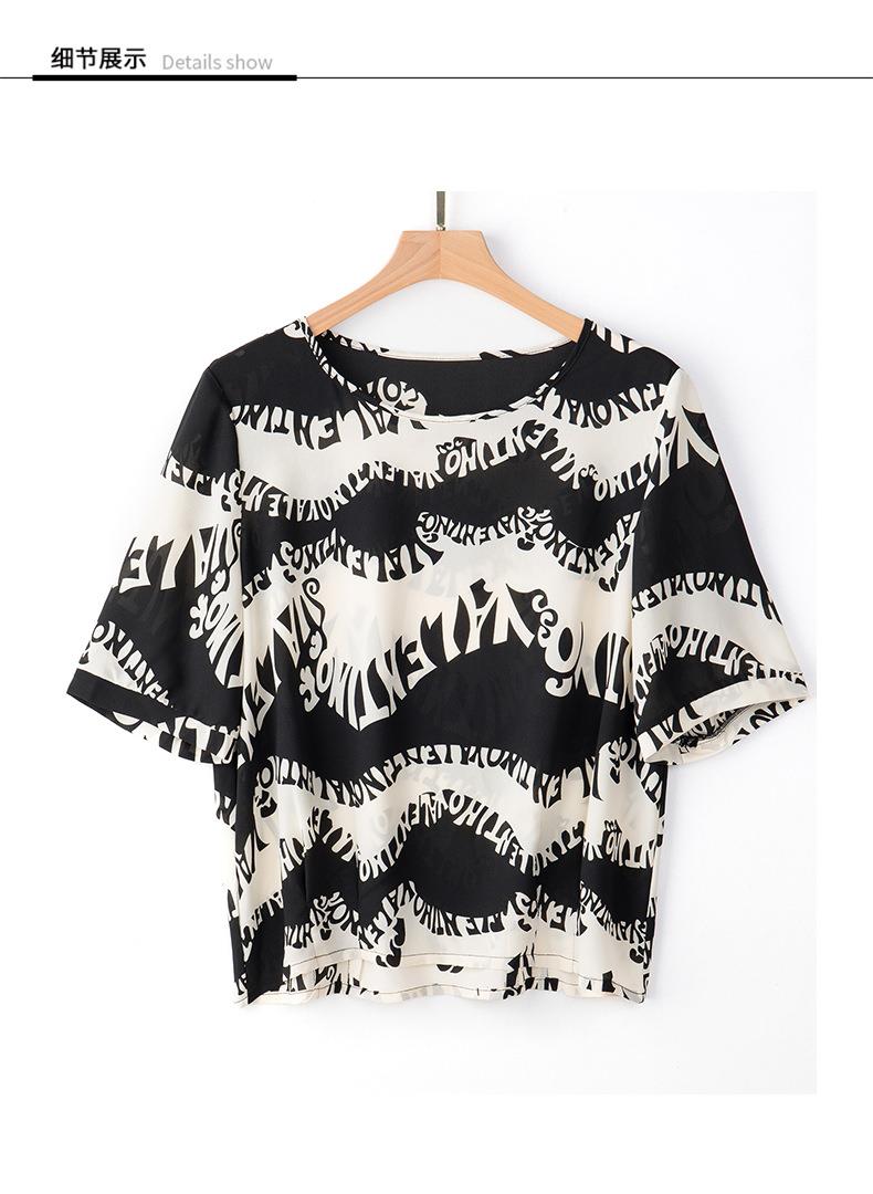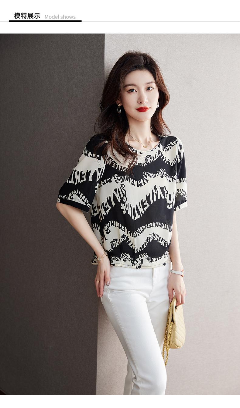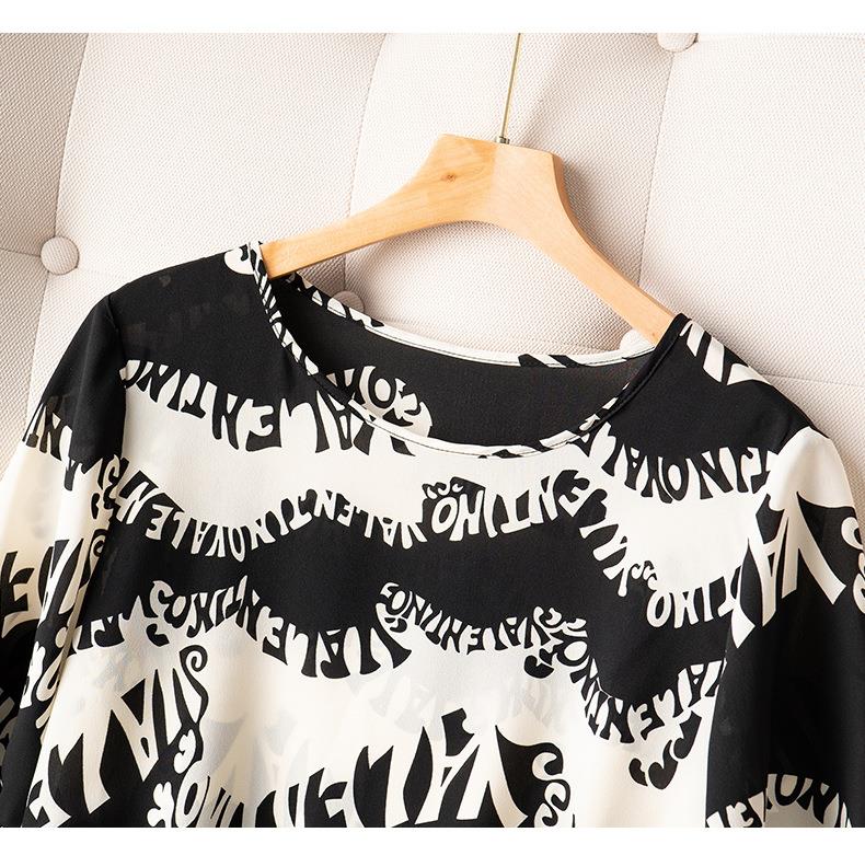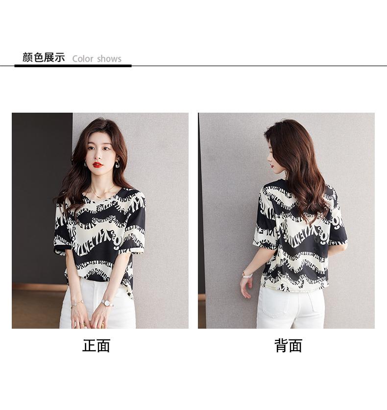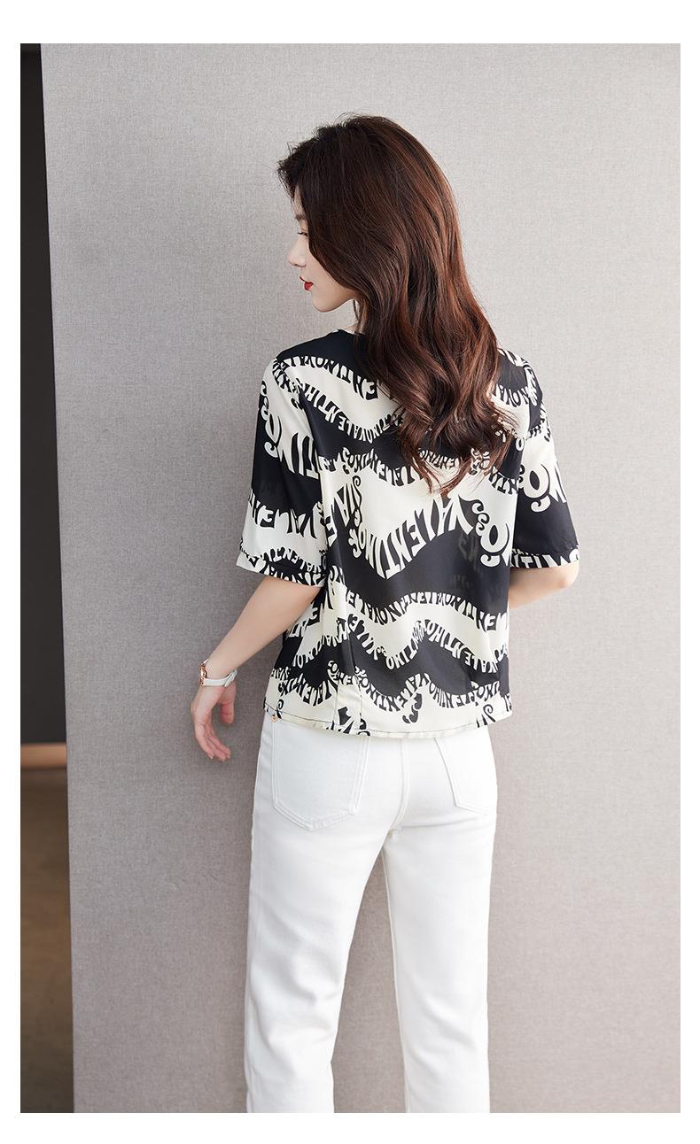 2023夏季新款雪纺衫短袖衬衫女大码T恤圆领小衫洋气5011