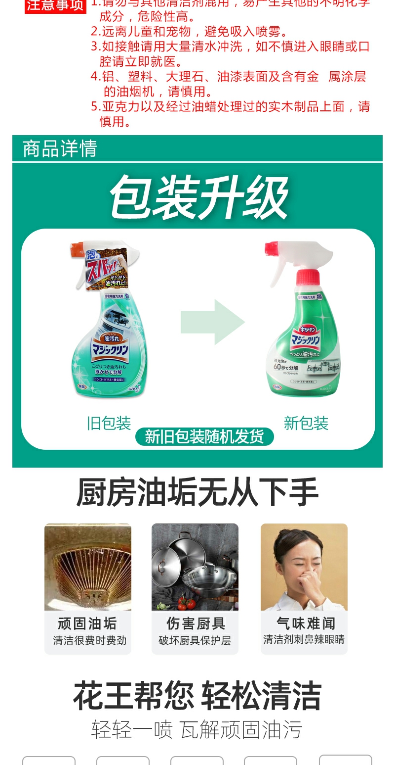 【YZ】花王厨房油烟机清洁剂神器强力去油渍重油污喷雾泡沫烟净