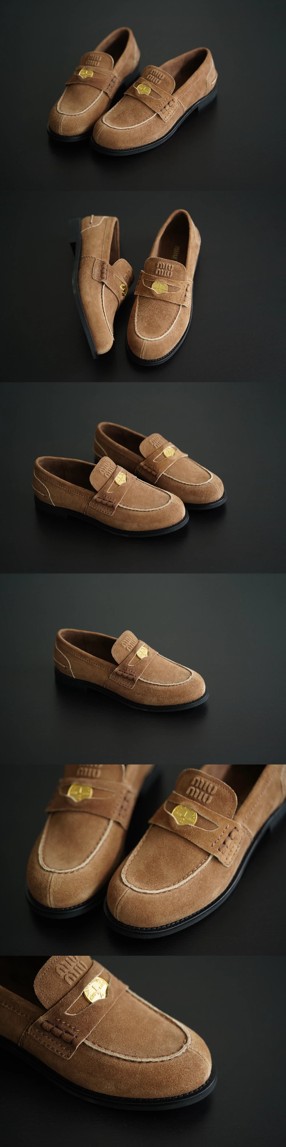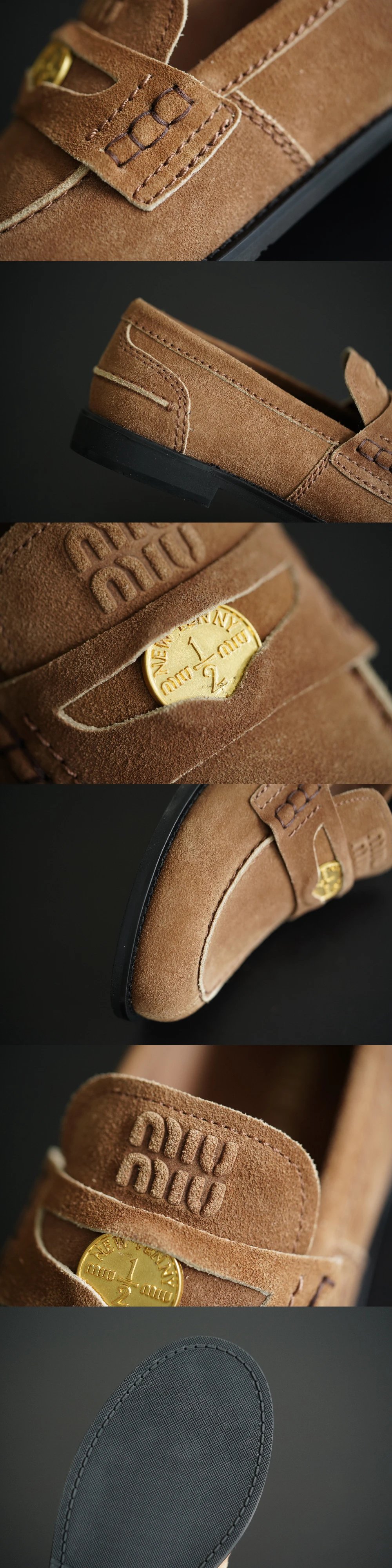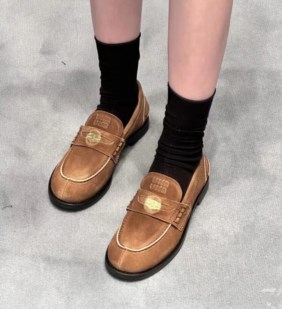 年度必入 买手店 缪小姐金币乐福鞋 麂皮棕/黑色开边珠牛皮单鞋