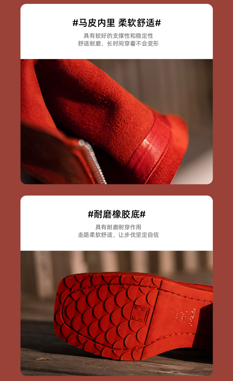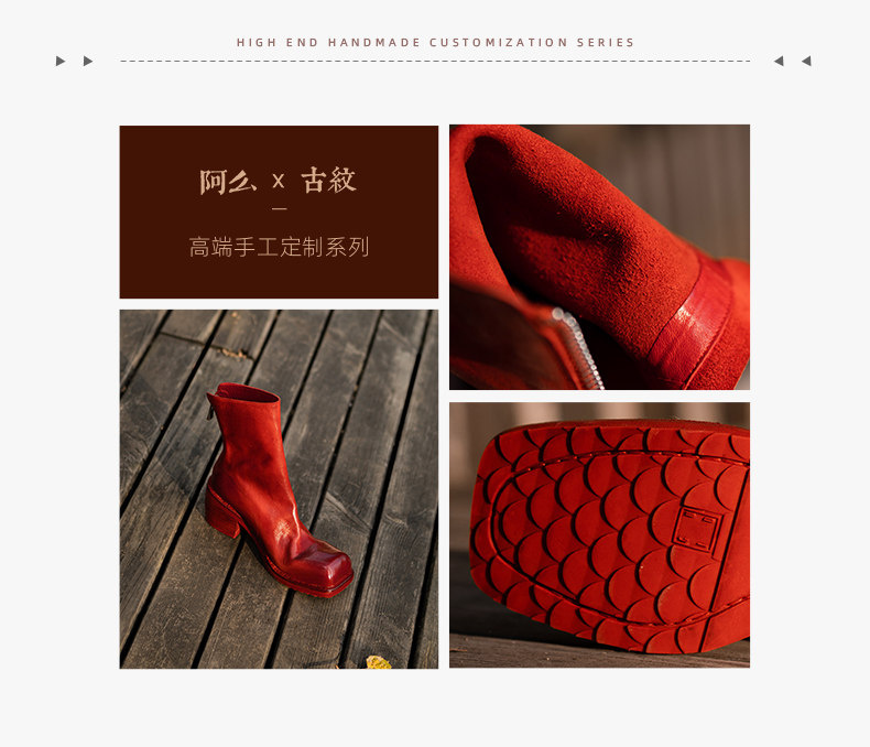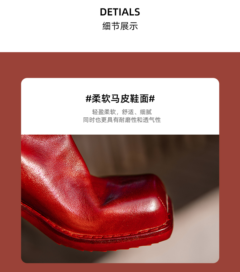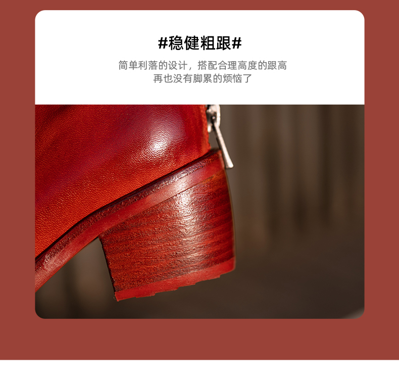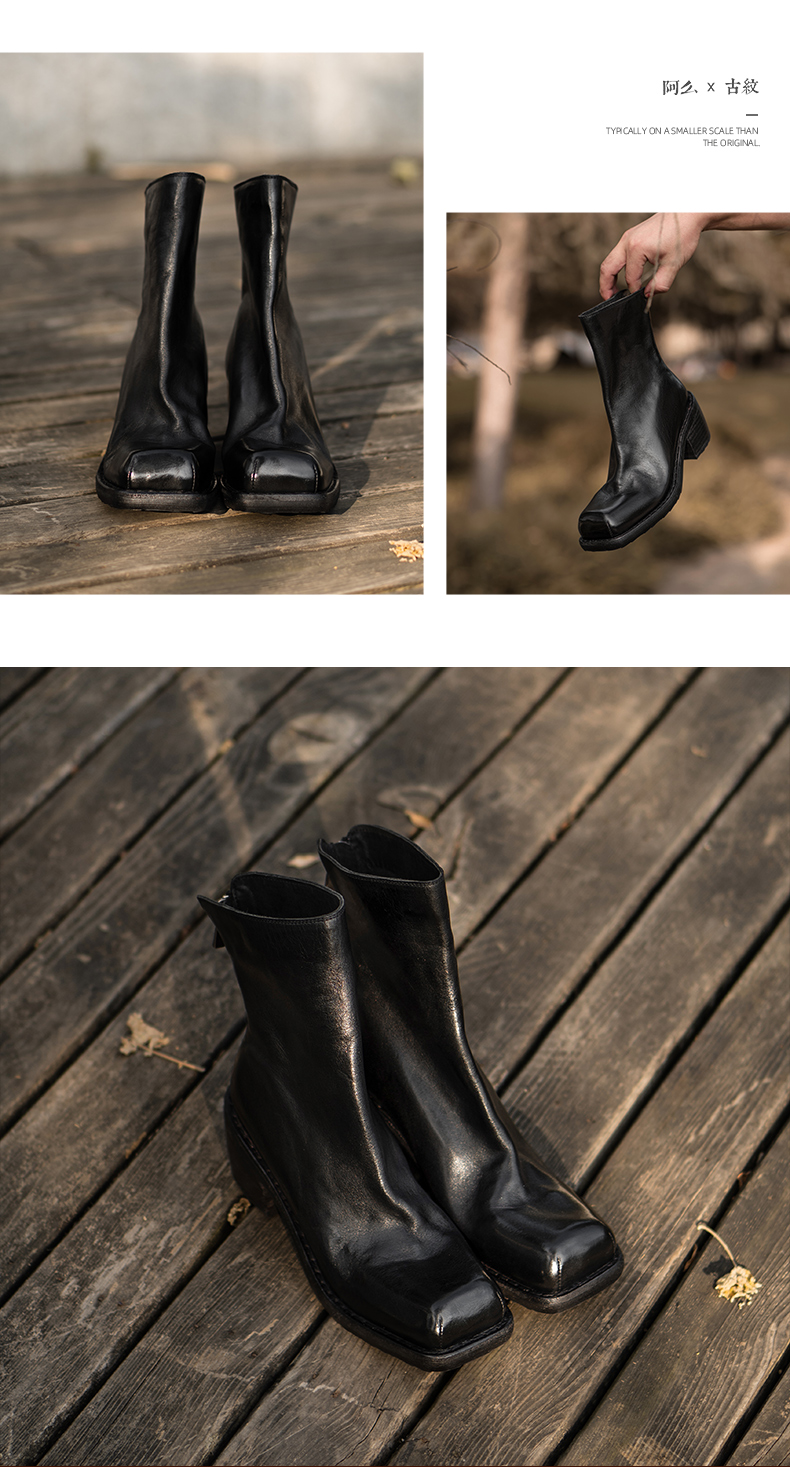 【阿么古纹马皮鞋】方头后拉链小众时尚短靴5CM复古高跟秋冬瘦瘦靴