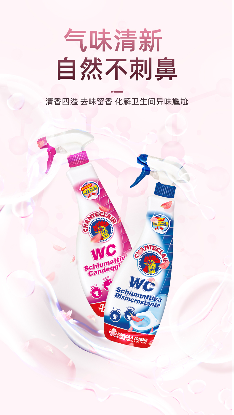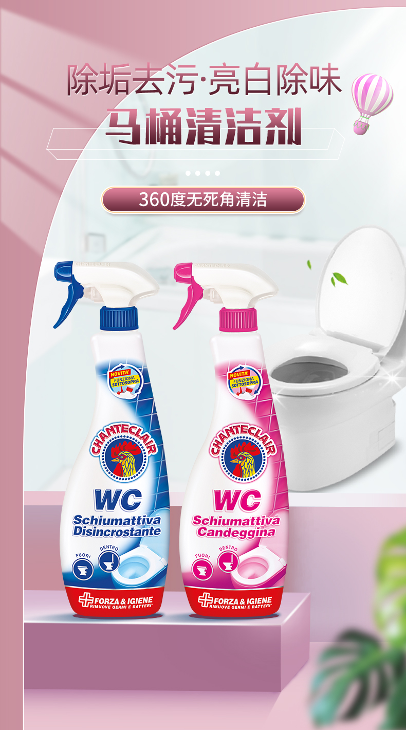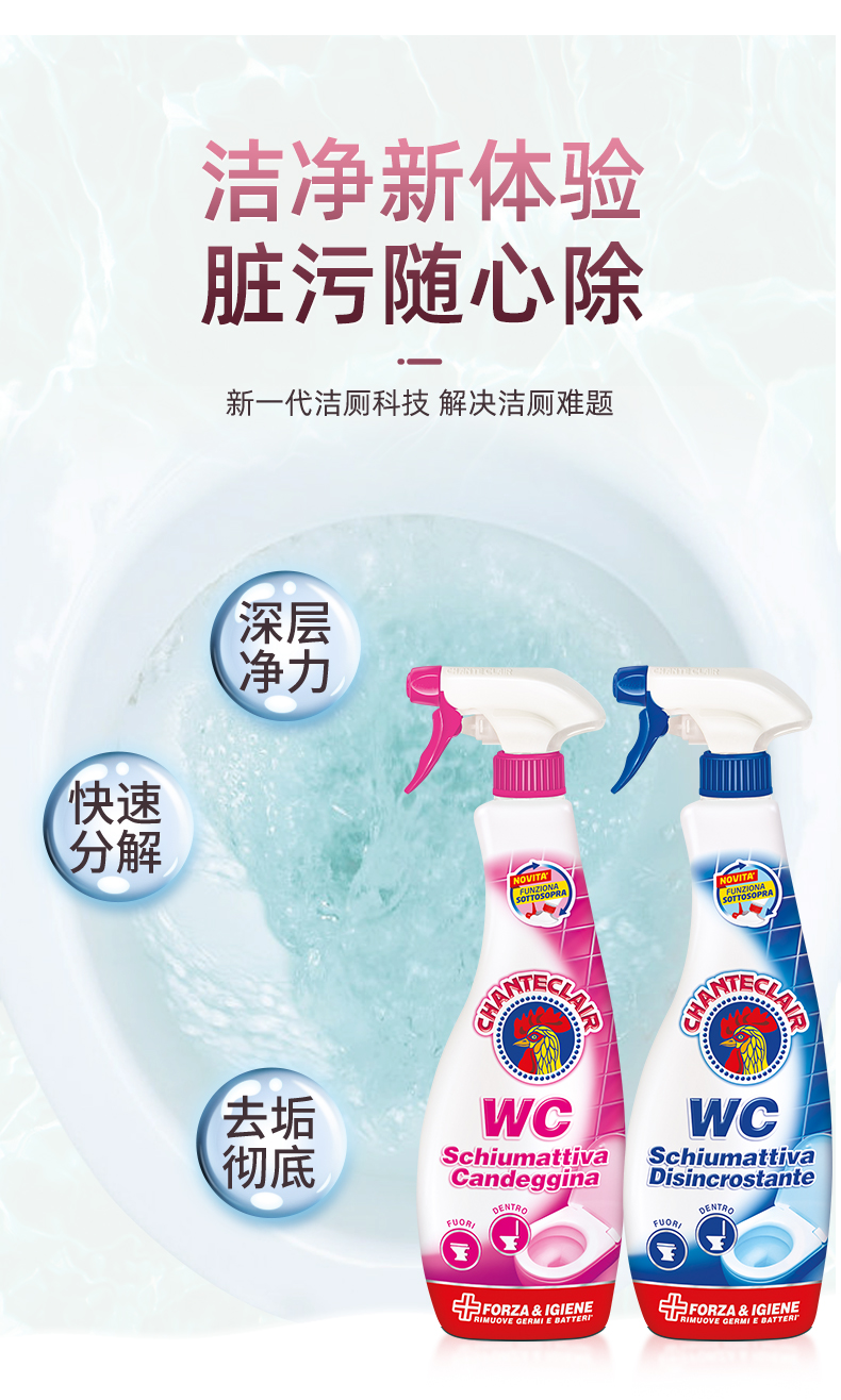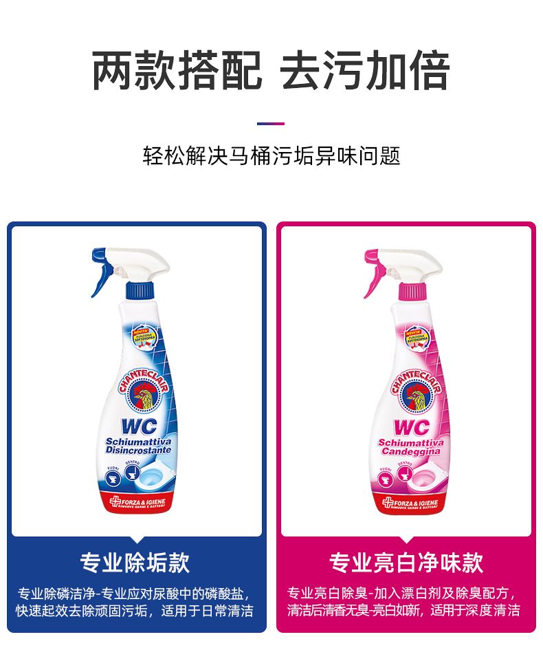 【中欧班列精选2瓶】意大利洁厕剂 大公鸡管家马桶清香去臭洁厕剂泡沫型625ml/瓶