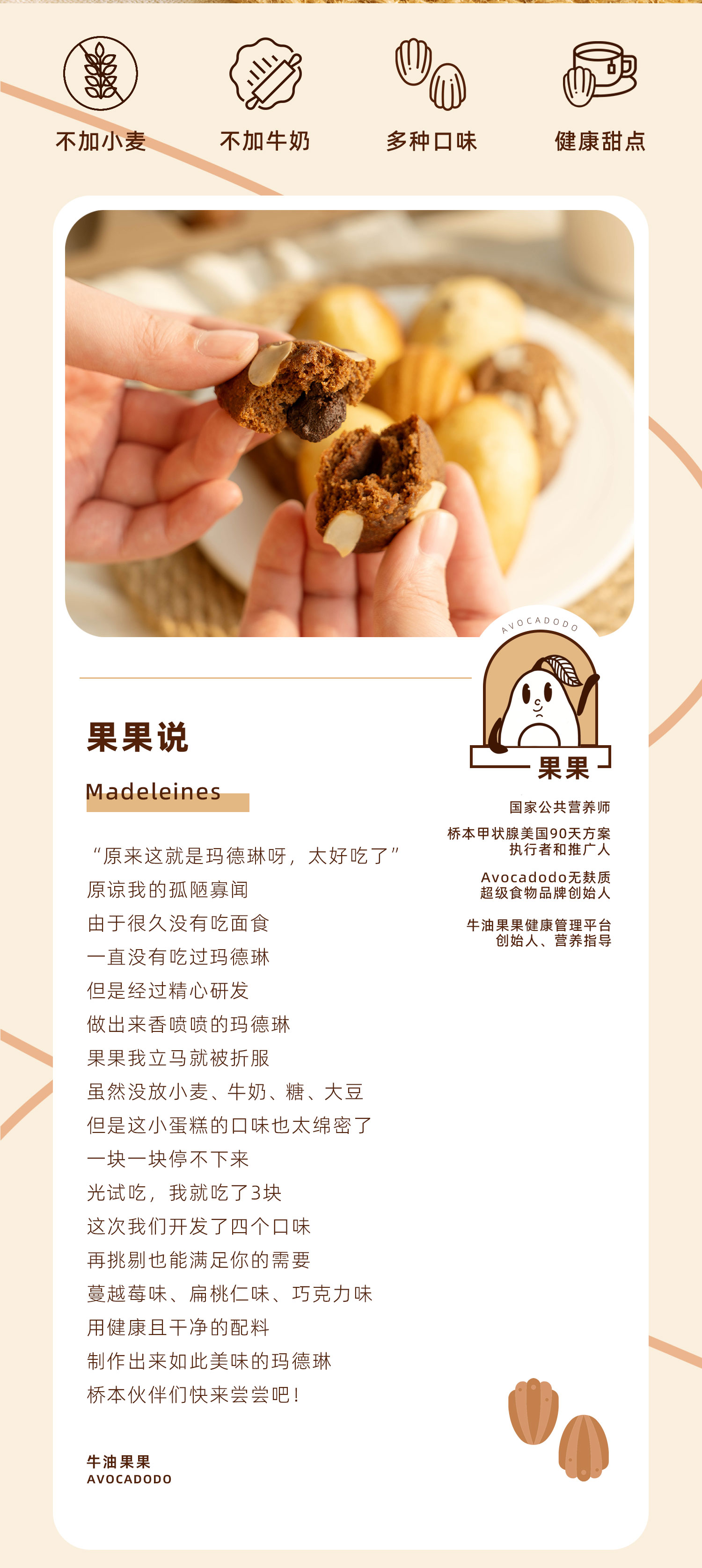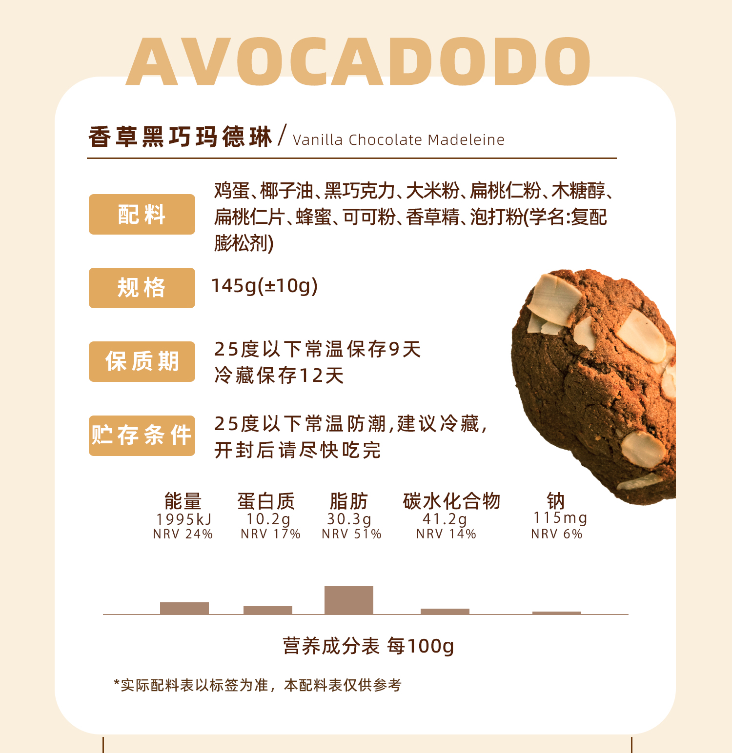 Avocadodo玛德琳蛋糕点早餐8块不加奶小麦麸质敏宝牛油果果桥本