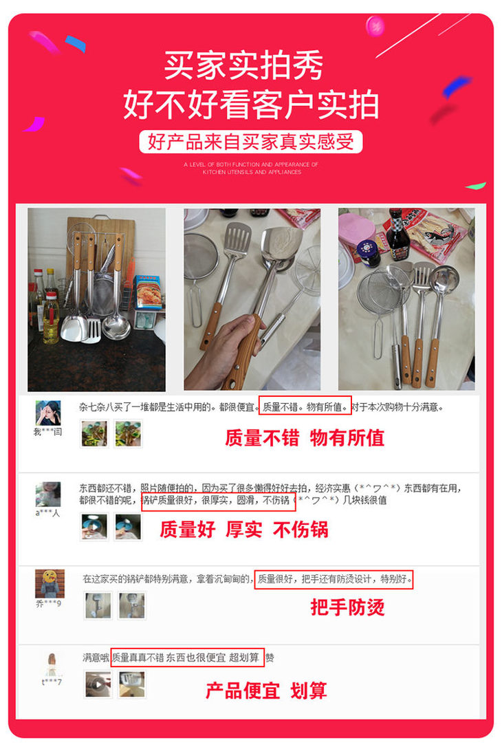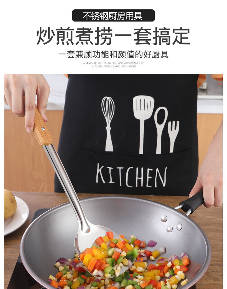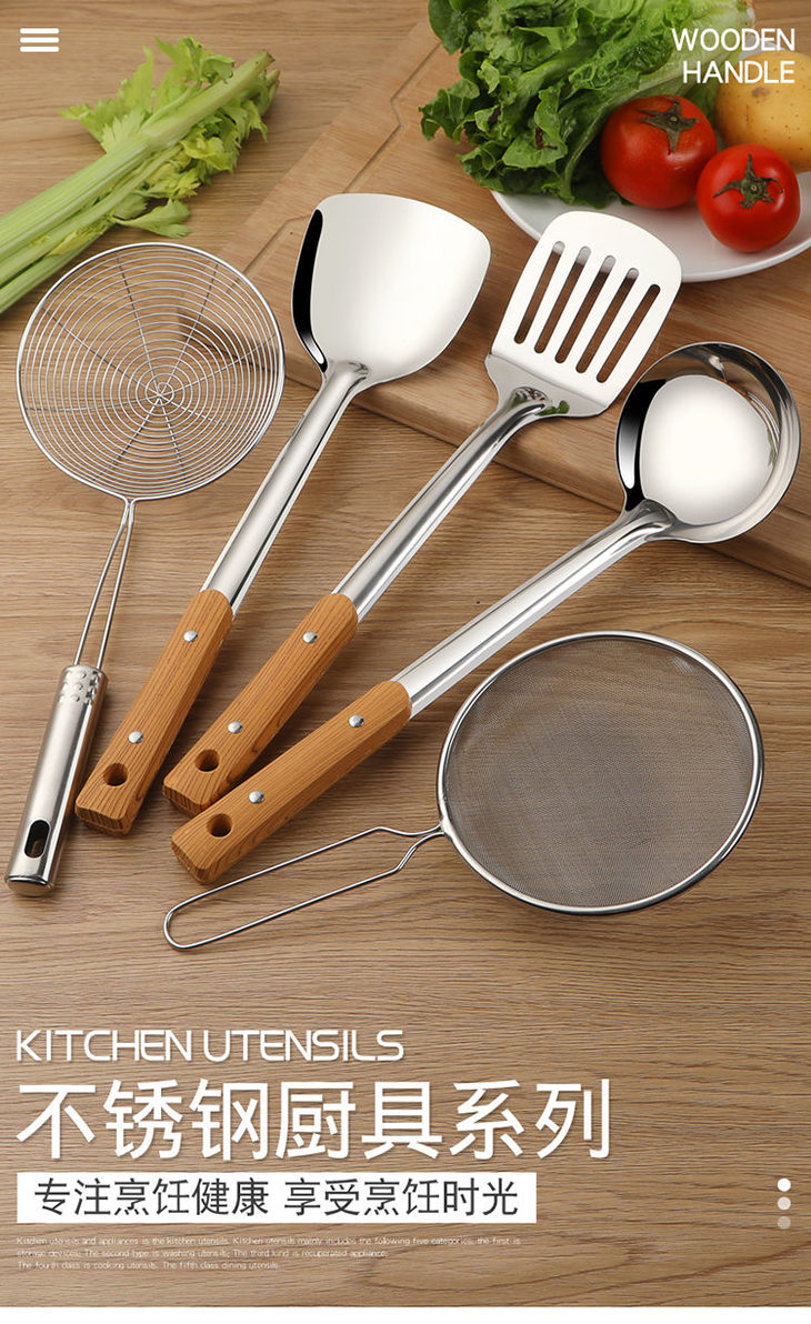 一张魅力红酒卡+【不锈钢厨具套装】炒菜锅铲煎铲汤粥勺漏勺子厨房用品豆浆餐饮用具-CG