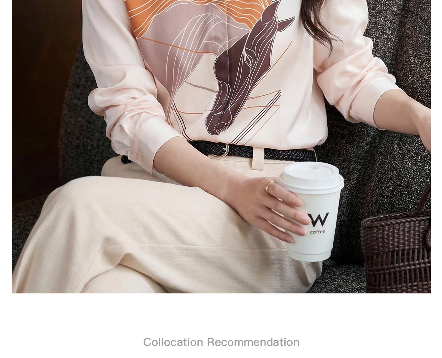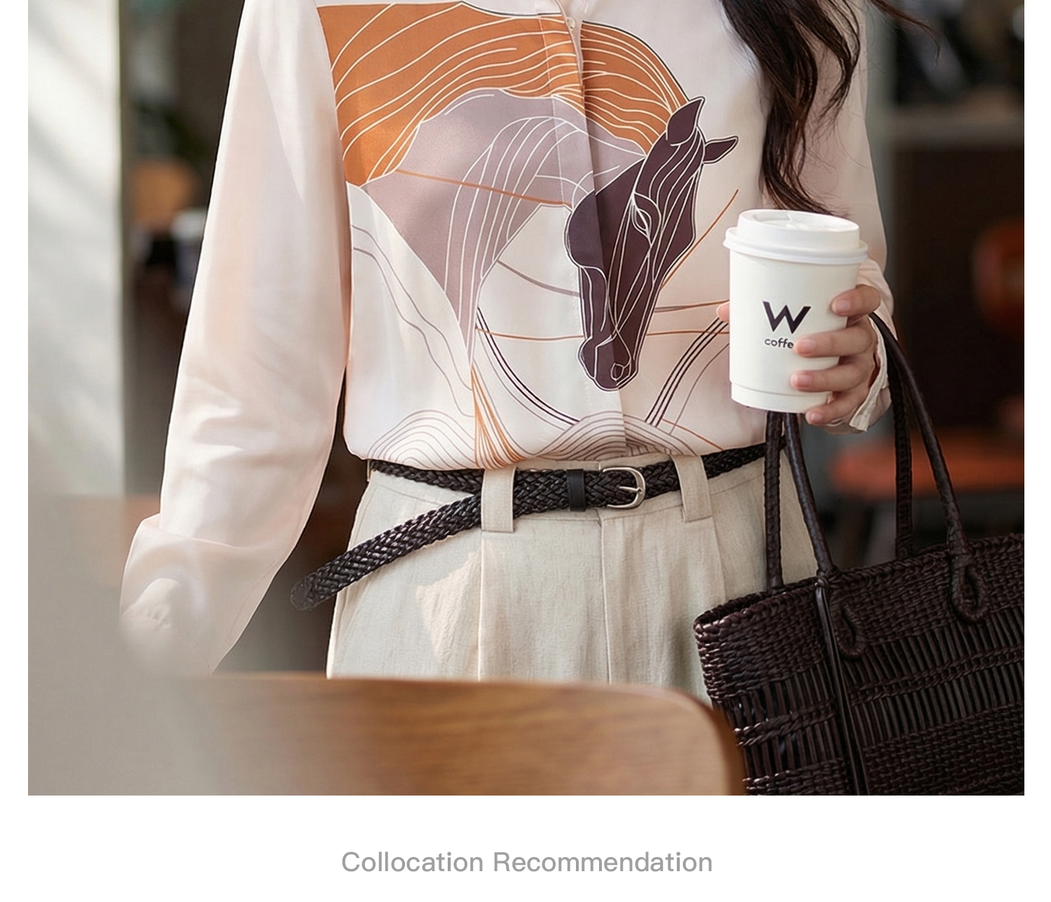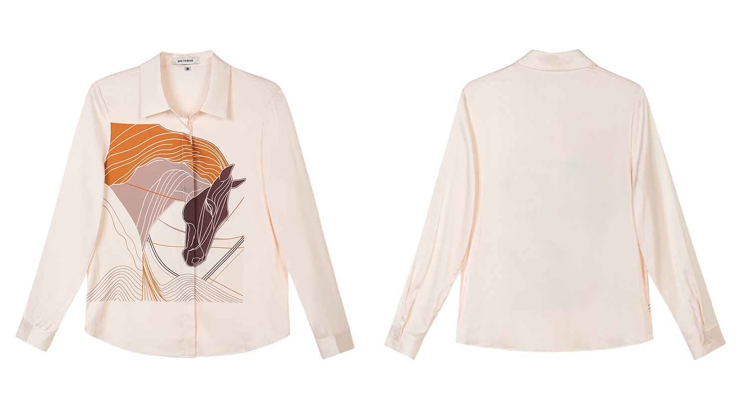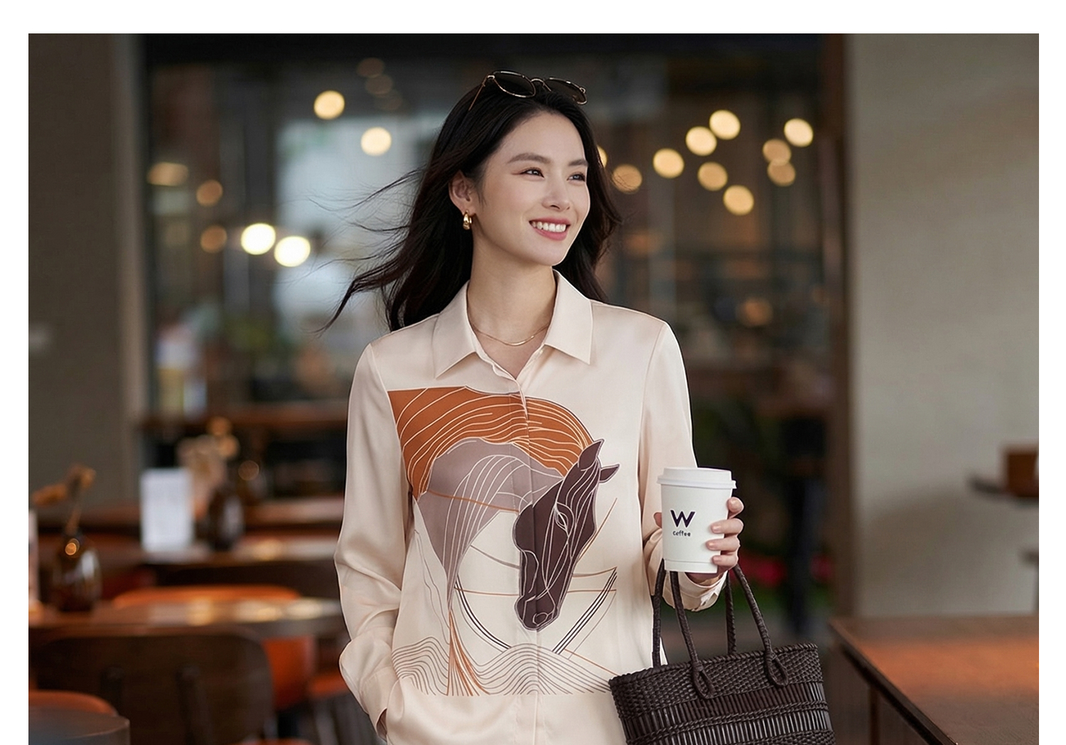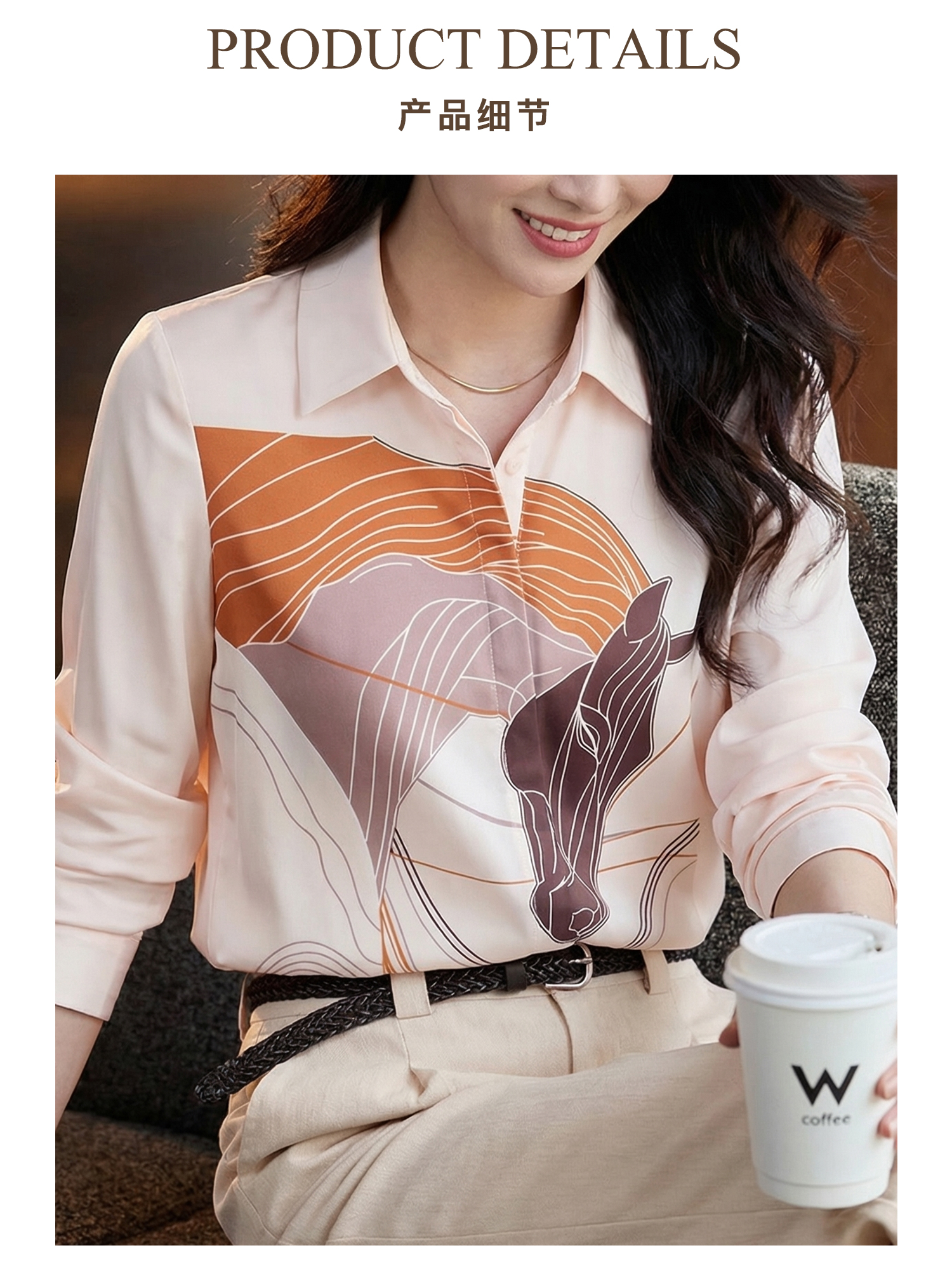 幸运加马!美到犯规~ 米思阳2026春新款通勤风骏马印花丝滑缎面衬衫上衣女1161