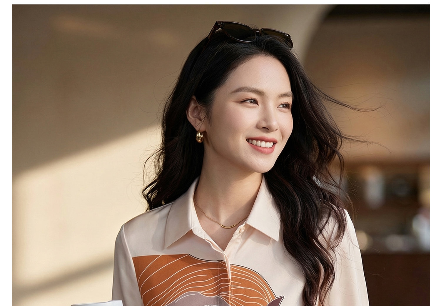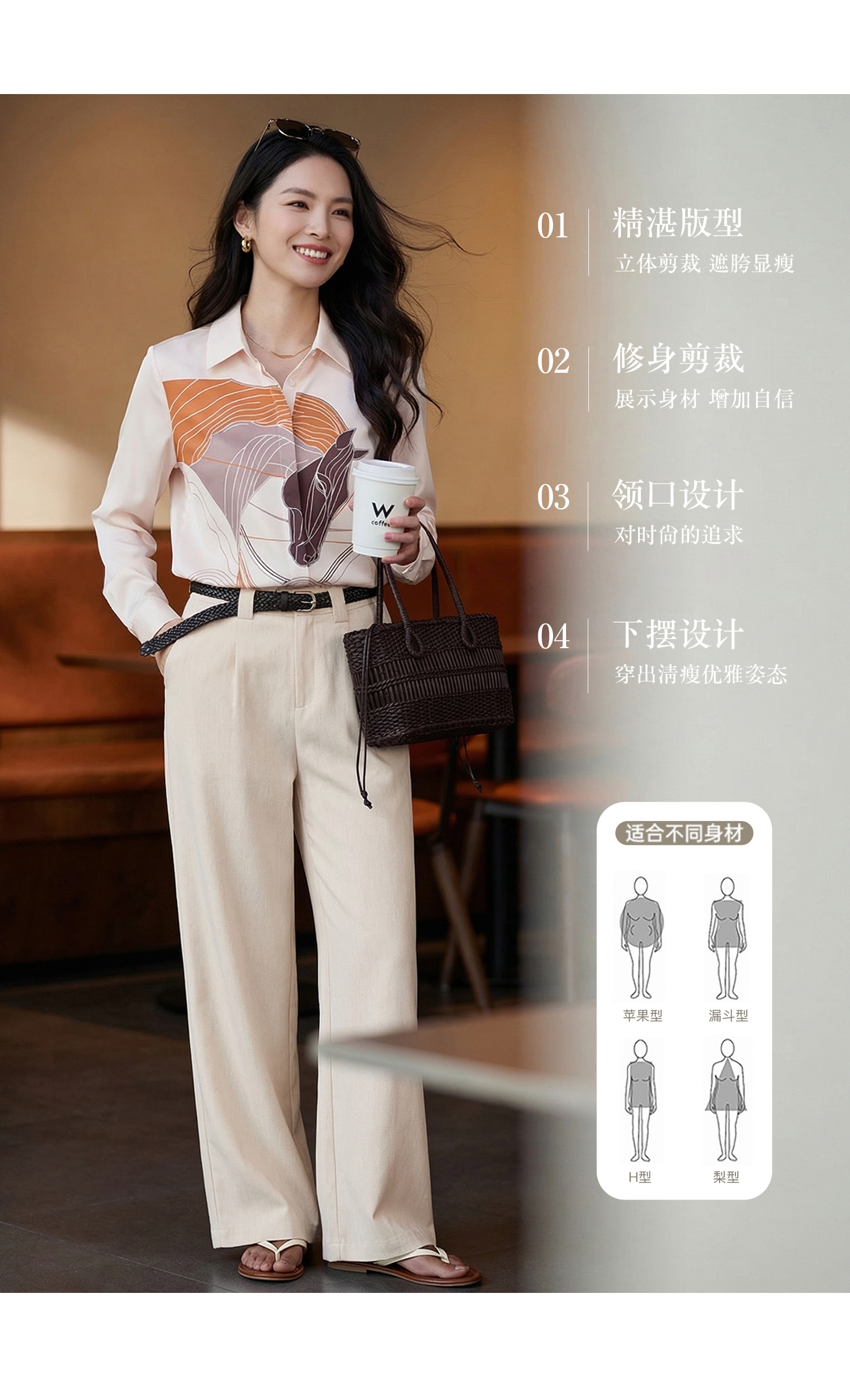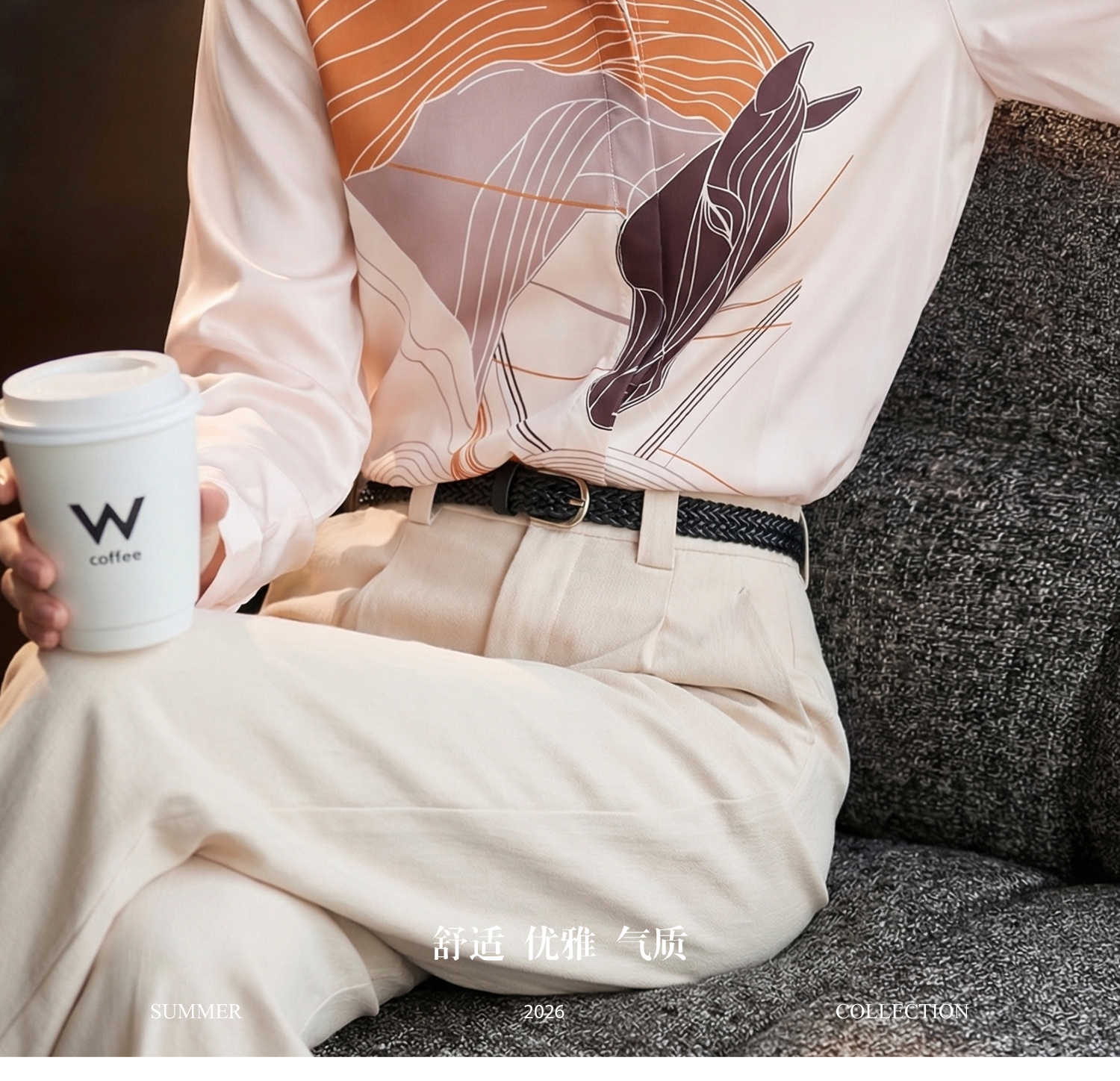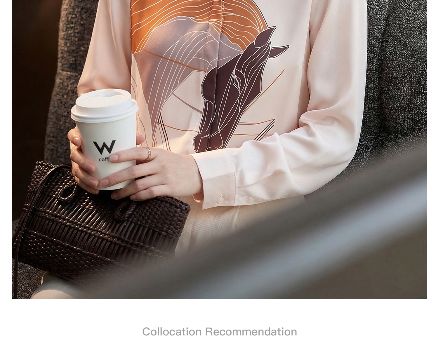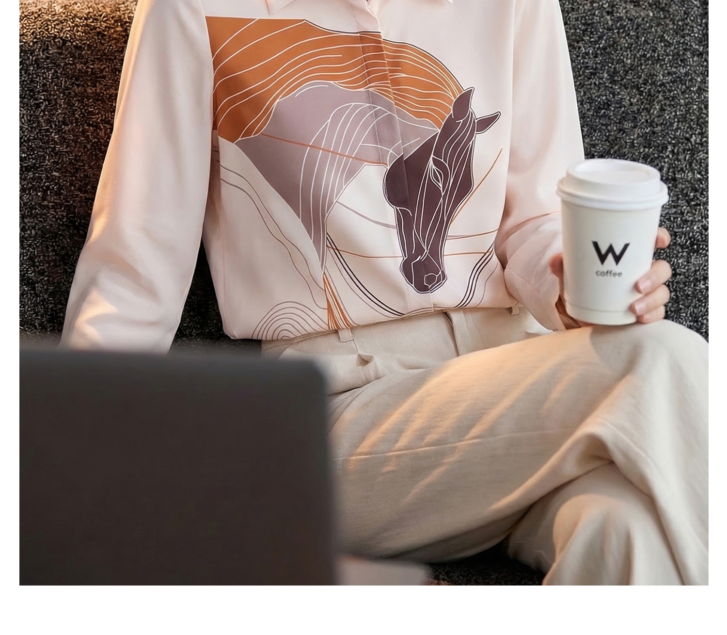 幸运加马!美到犯规~ 米思阳2026春新款通勤风骏马印花丝滑缎面衬衫上衣女1161