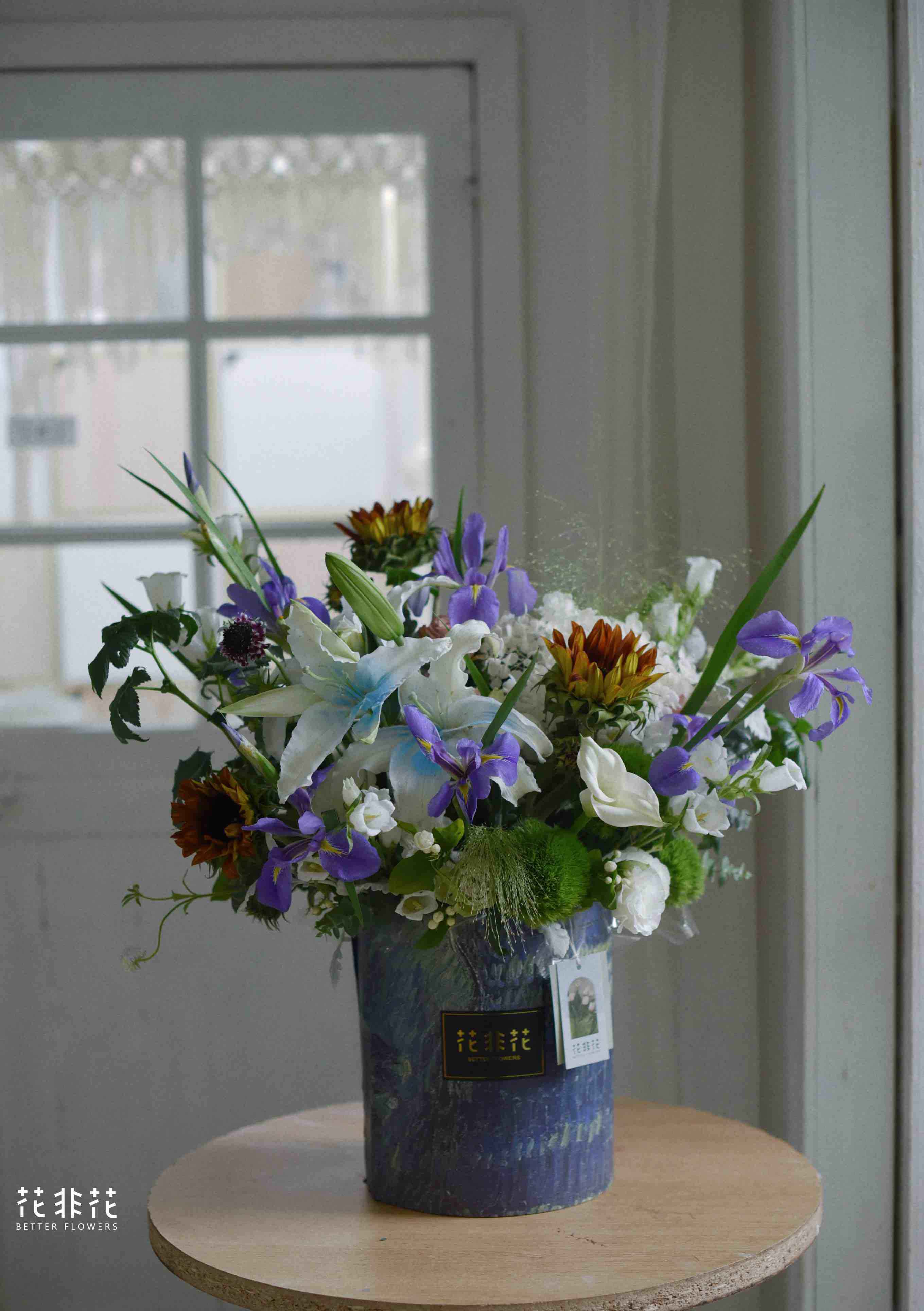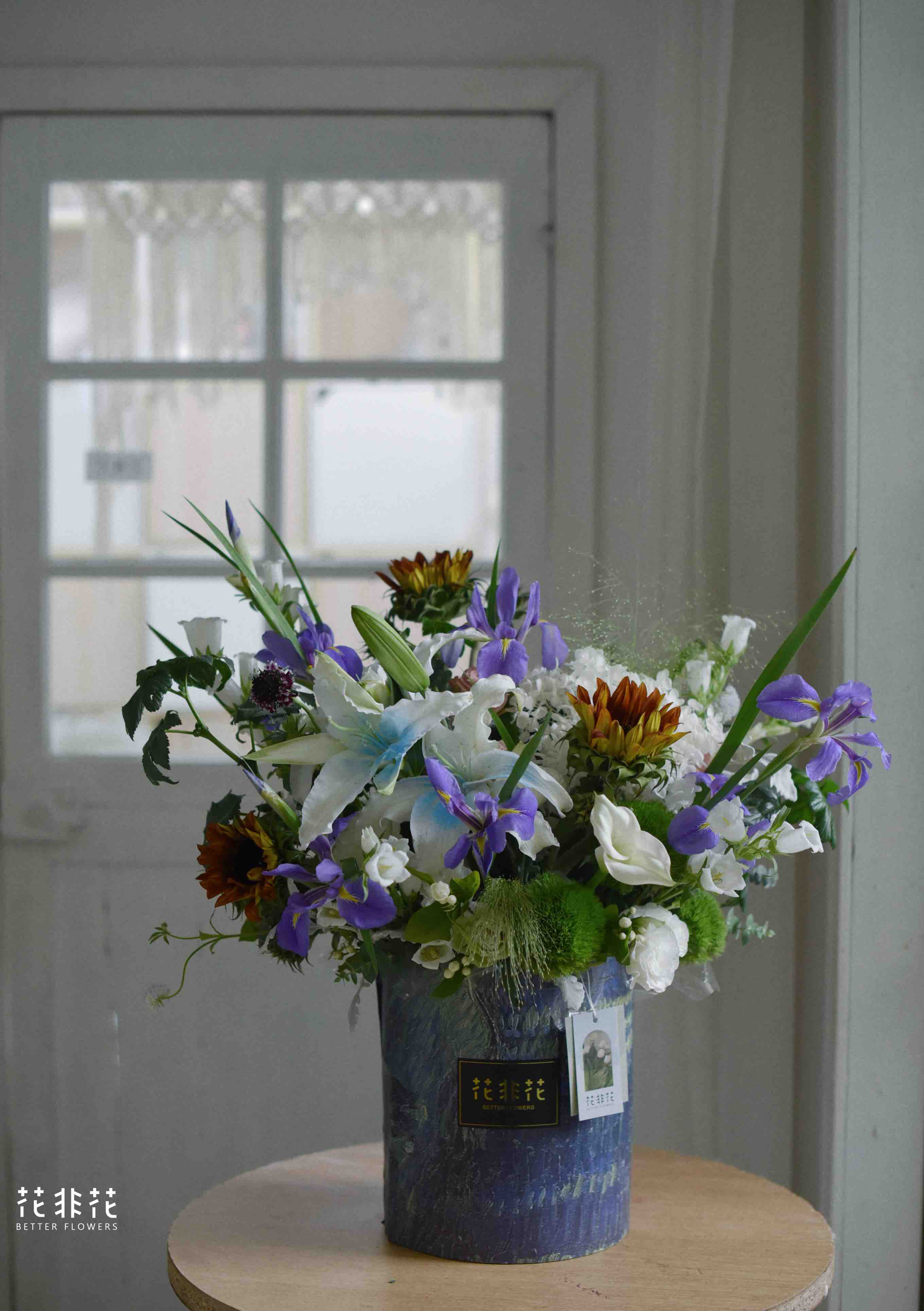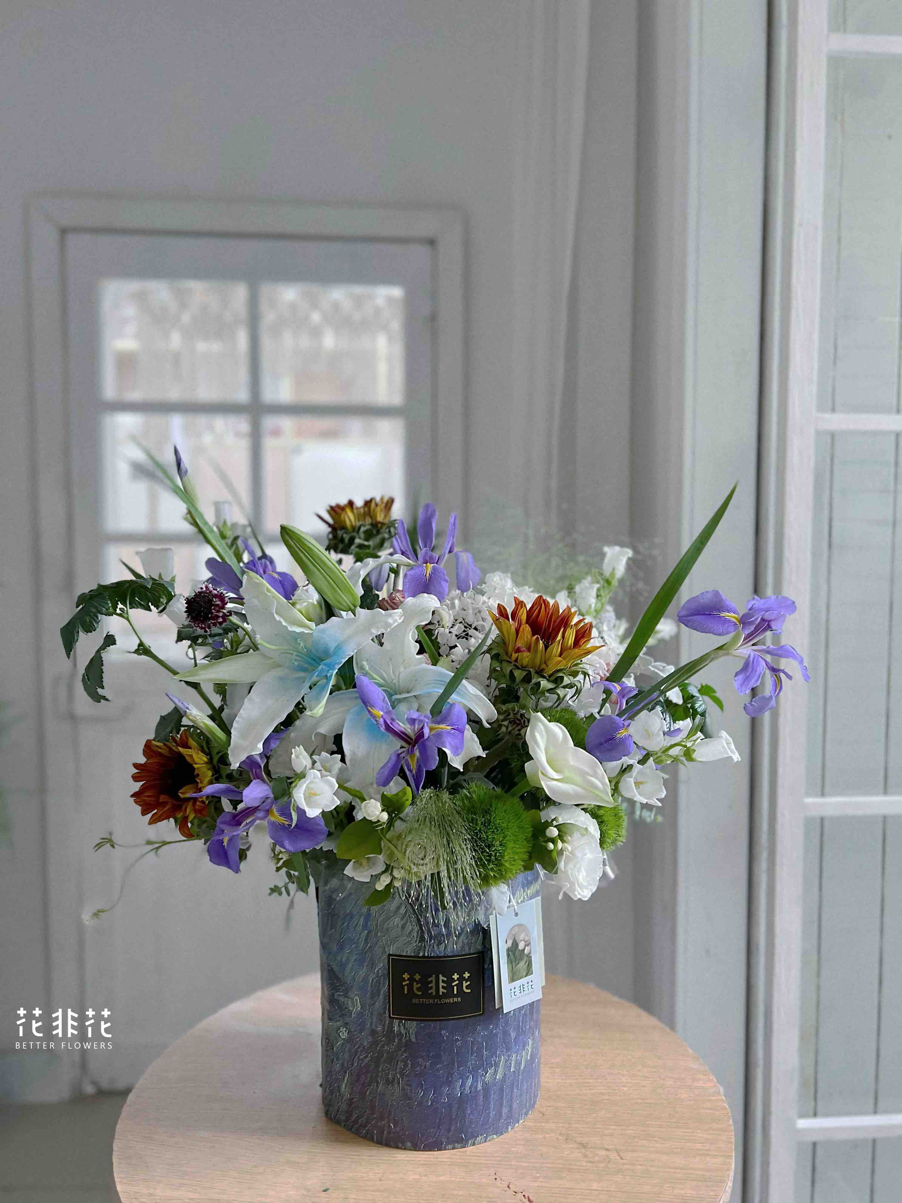 《星夜》鸢尾油画,向日葵,百合抱抱桶