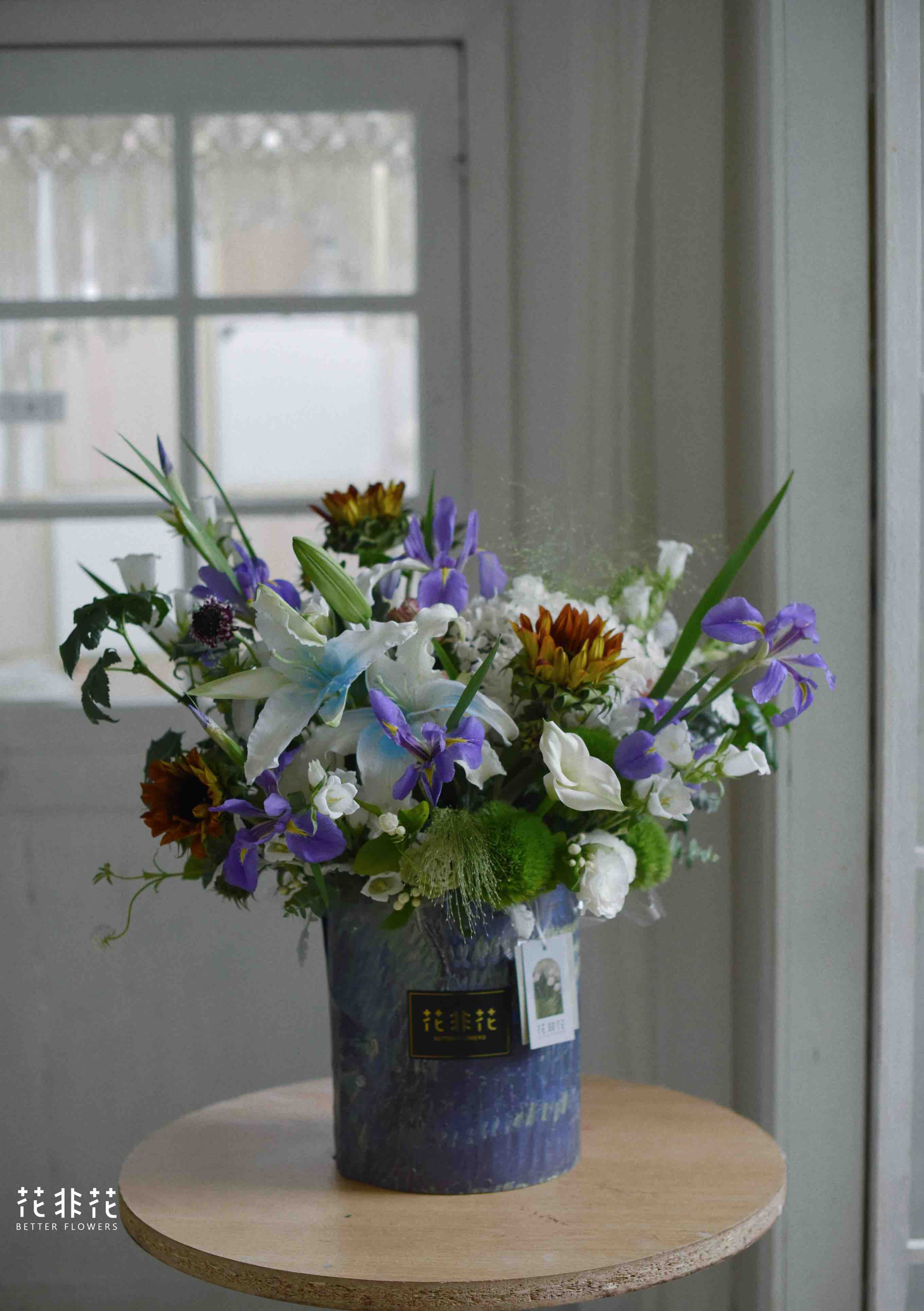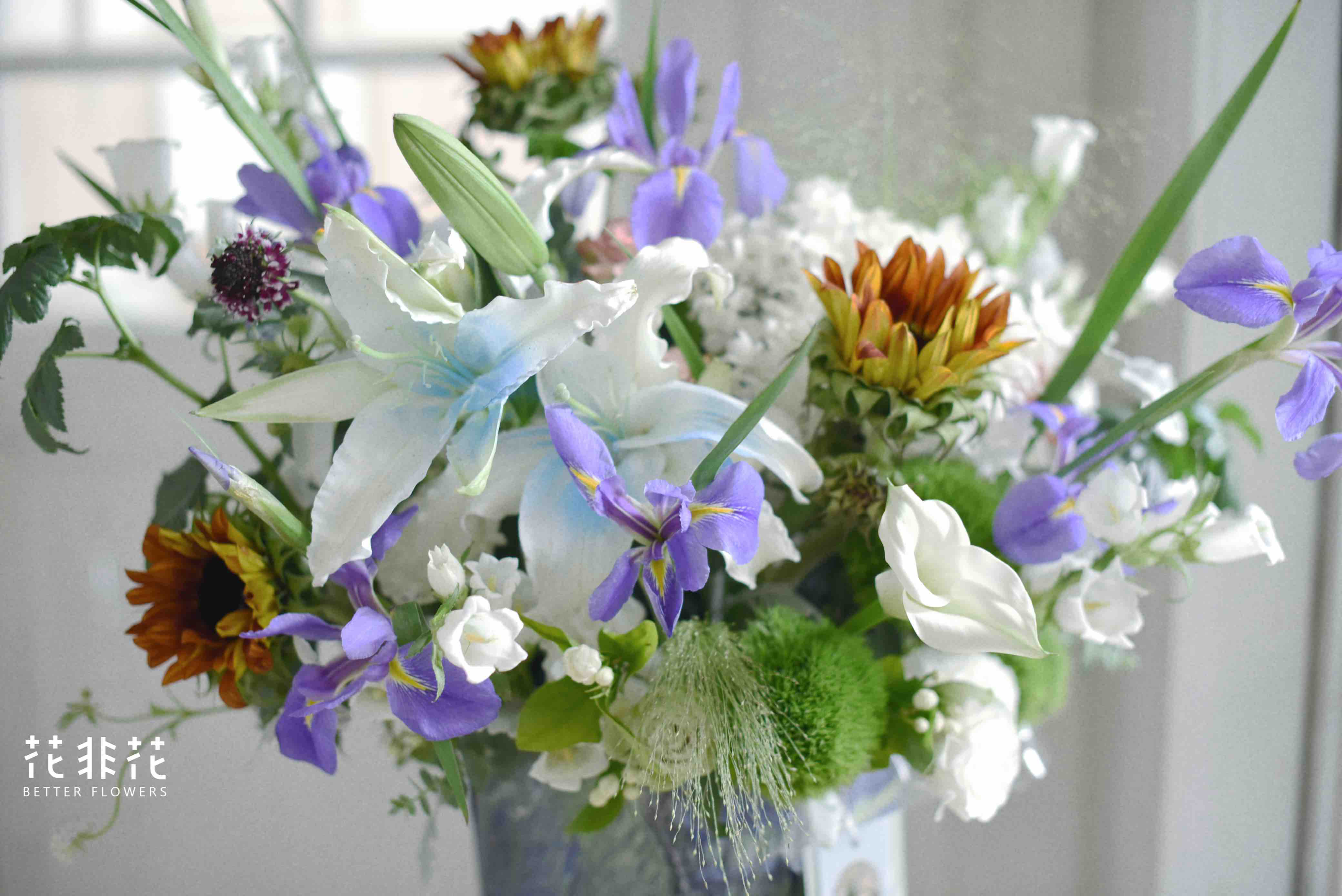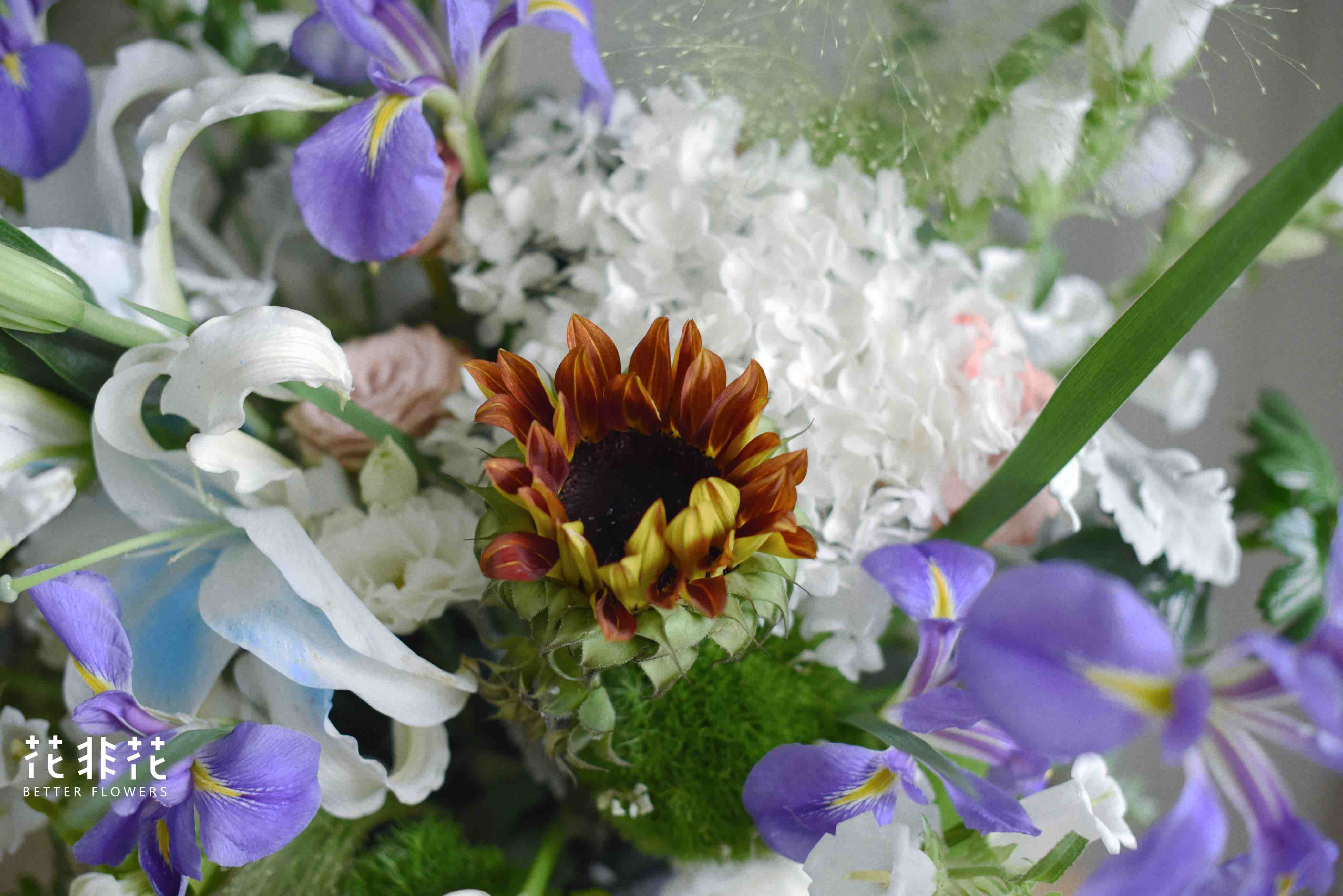 《星夜》鸢尾油画,向日葵,百合抱抱桶