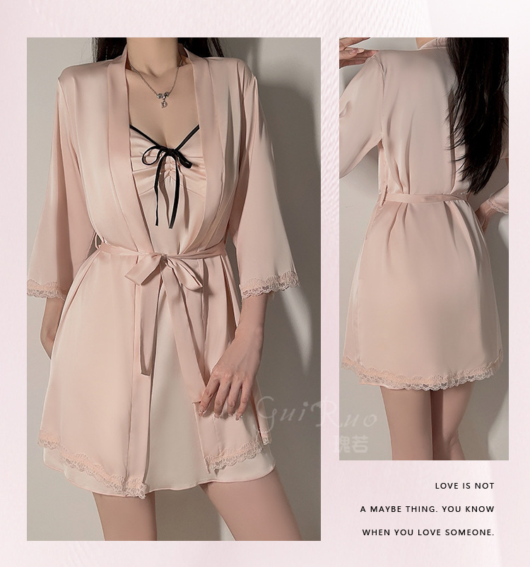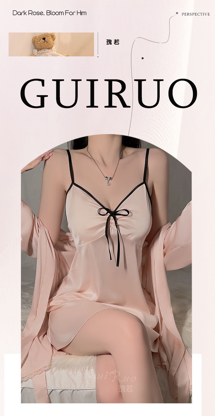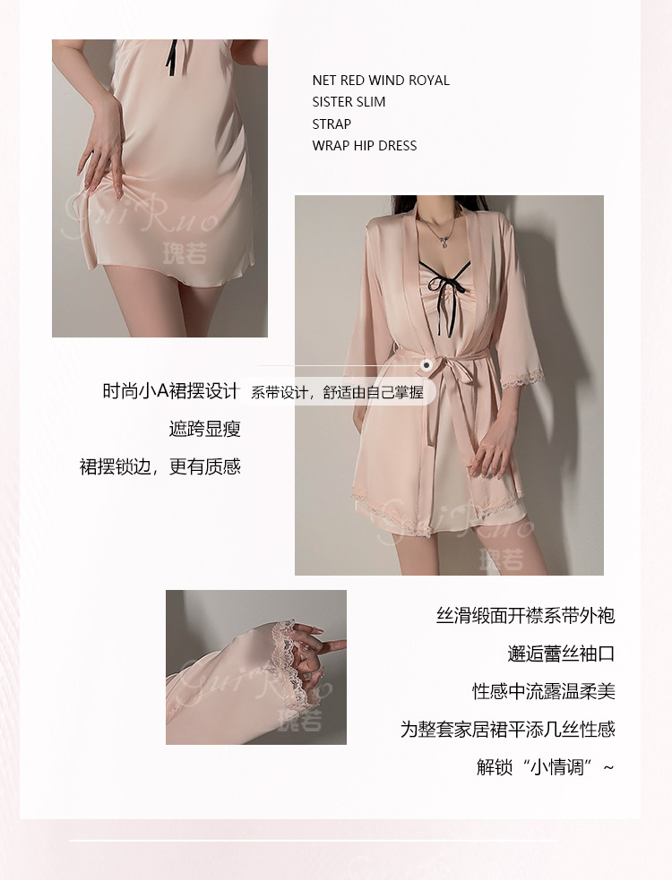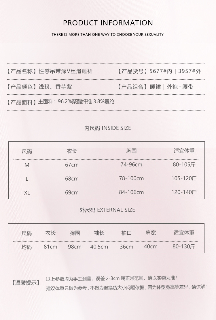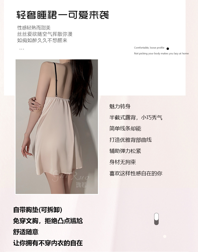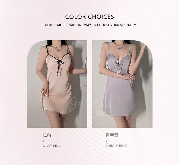 【YW】无忧购纯色丝滑缎面内衣深V聚拢加胸垫轻奢舒适睡裙5677(截单后3-5天发货)