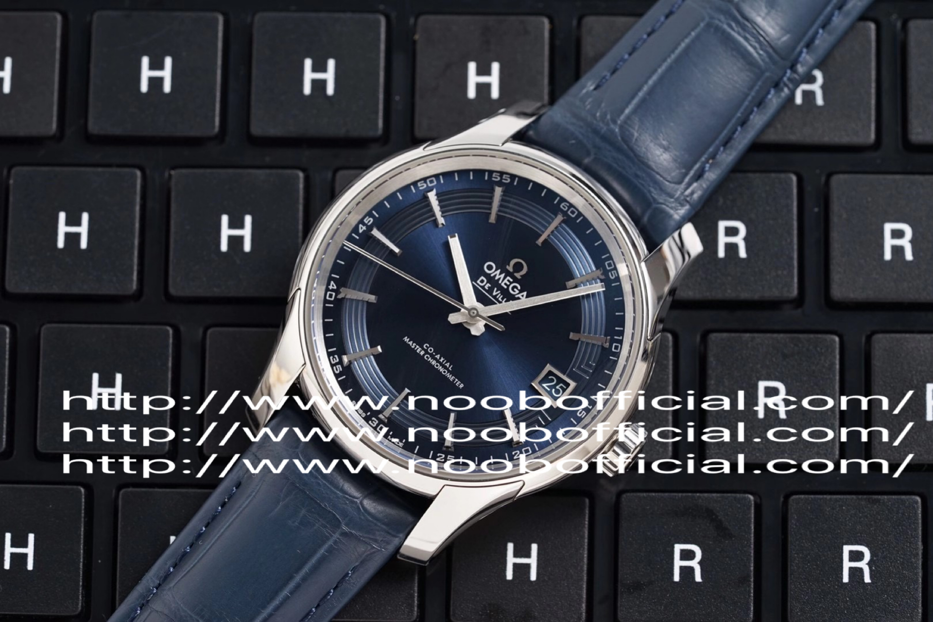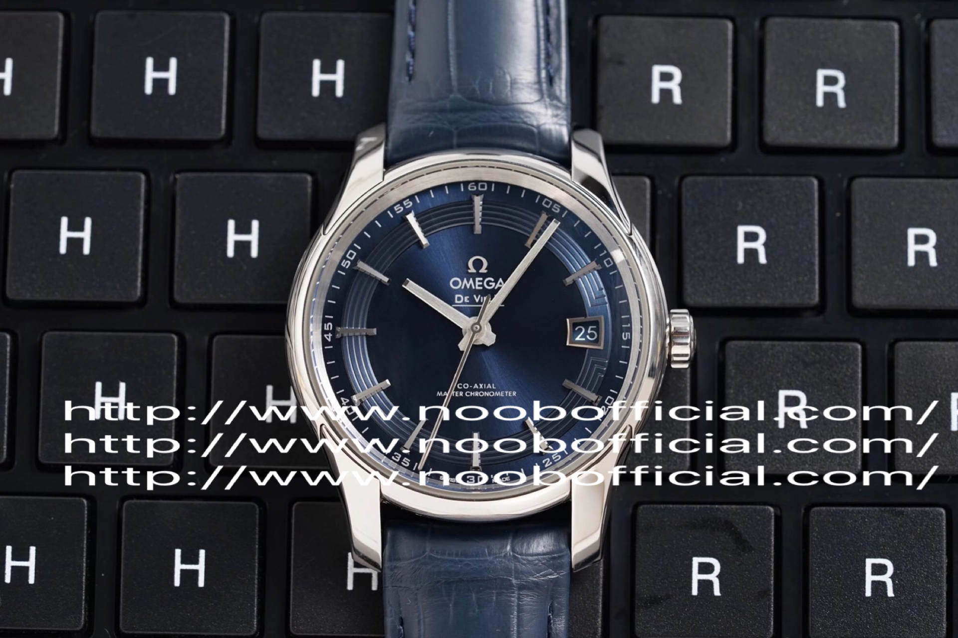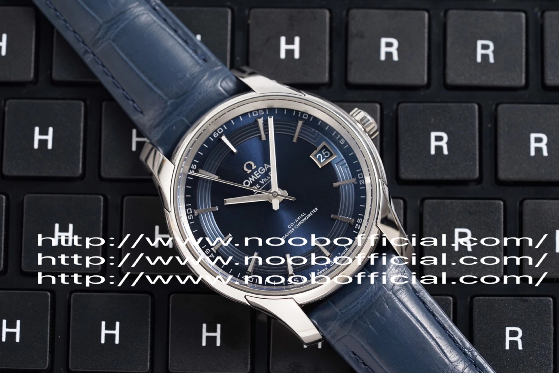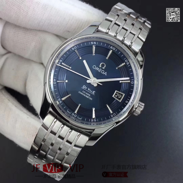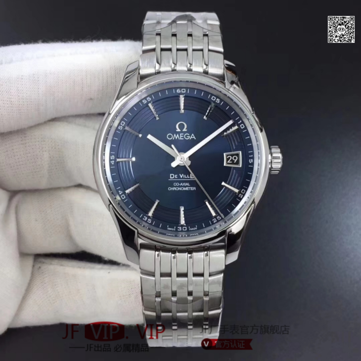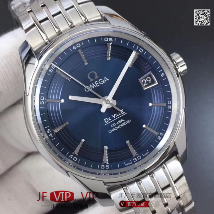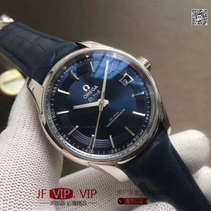 VS欧米茄蝶飞“明亮之蓝” 搭“鳄鱼皮”终于到货!男士腕表,鳄鱼皮表带,精钢表带,自动机械机芯,透底