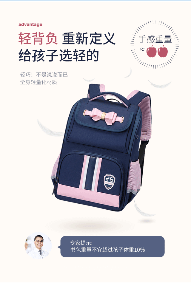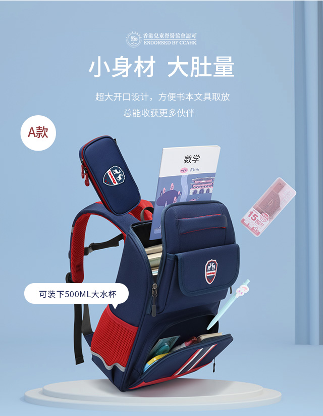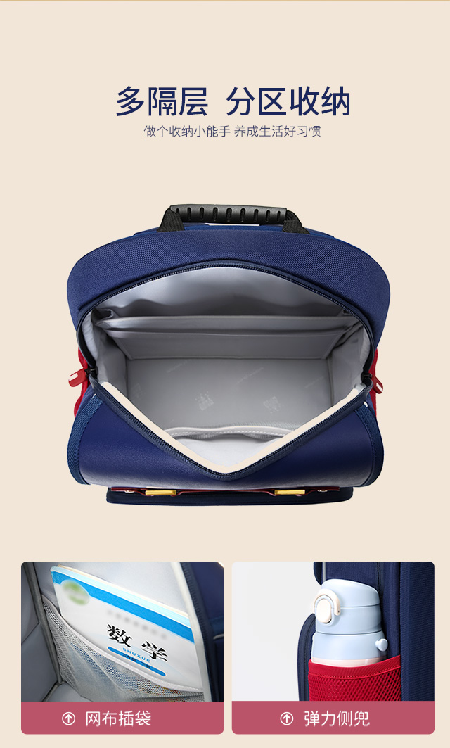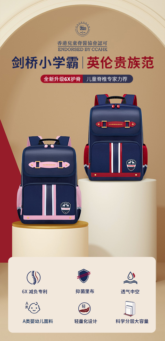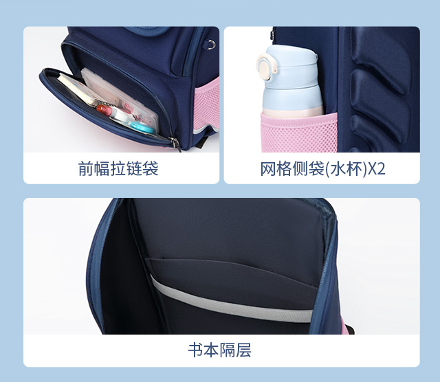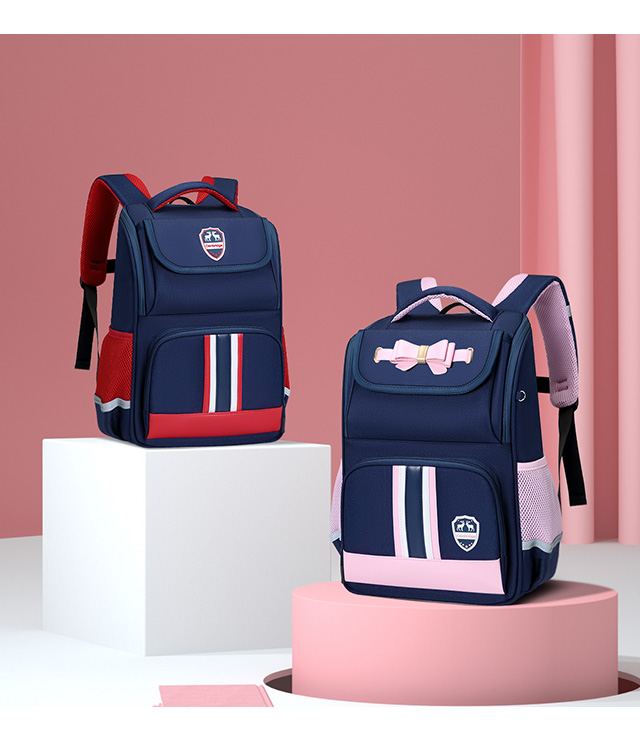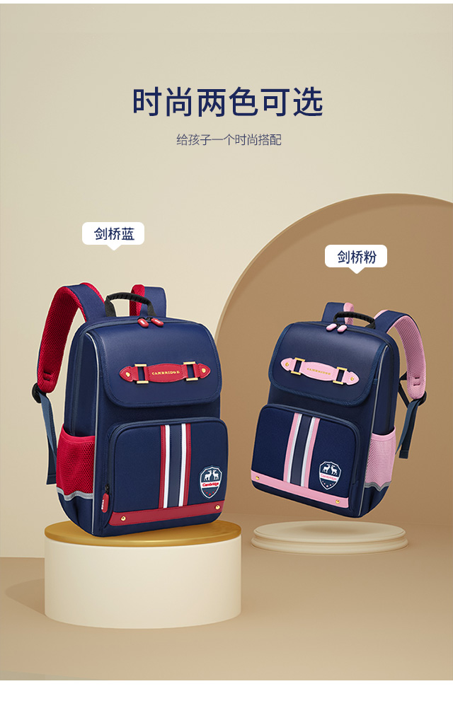 小学生书包男孩女生卡通可爱背包减负透气双肩包大容量剑桥蓝蓝配红粉色