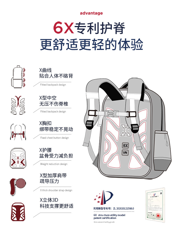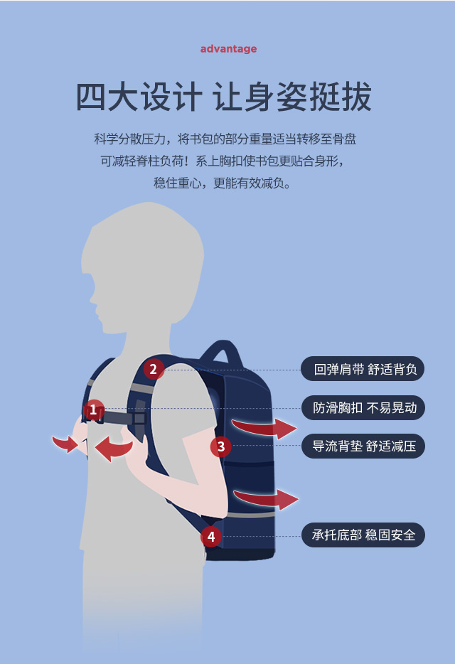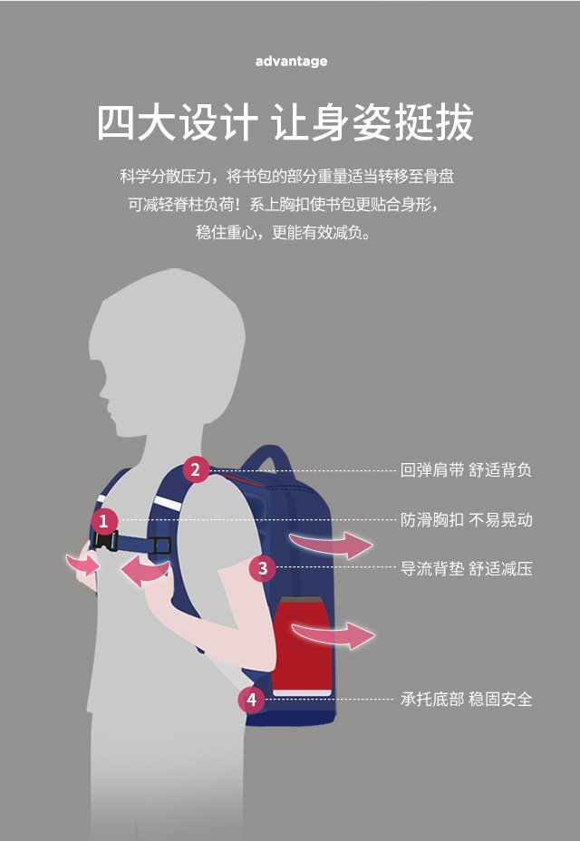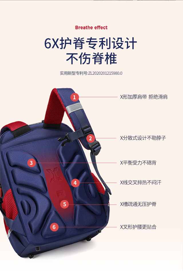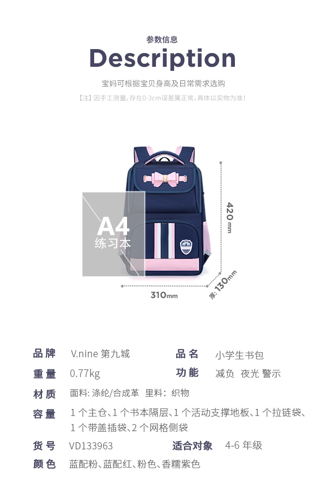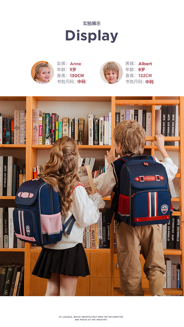小学生书包男孩女生卡通可爱背包减负透气双肩包大容量剑桥蓝蓝配红粉色