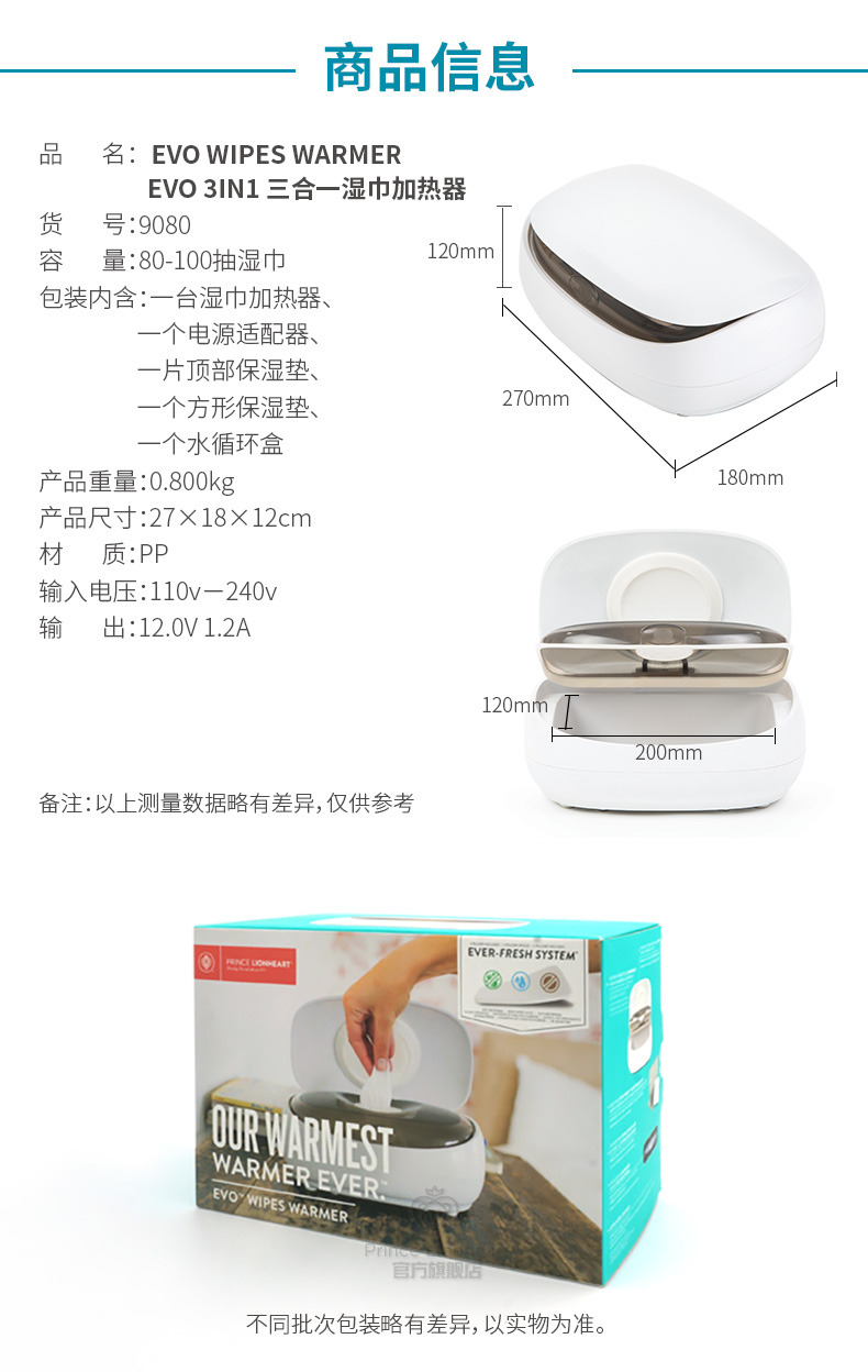 Prince Lionheart美狮宝EVO湿巾加热器婴儿保温保湿盒湿纸巾恒温