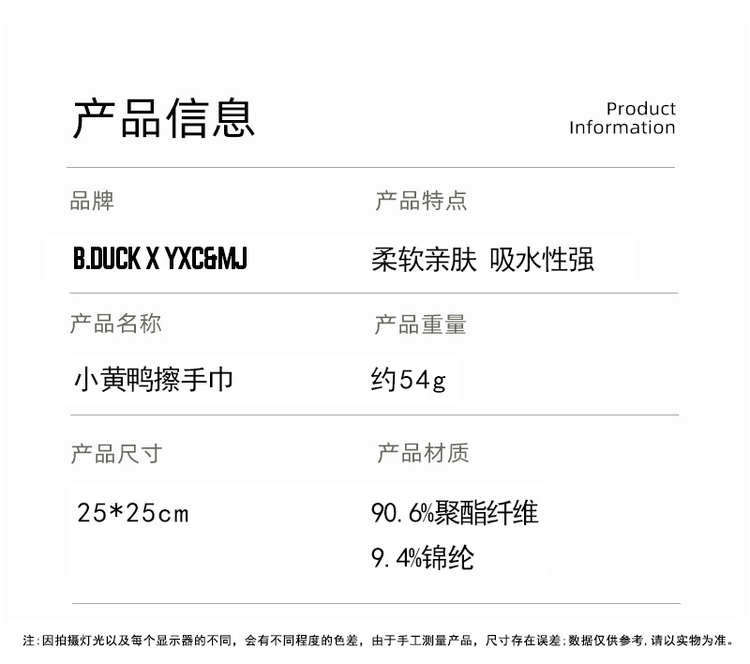 B.Duck小黄鸭擦手巾吸水可爱两条