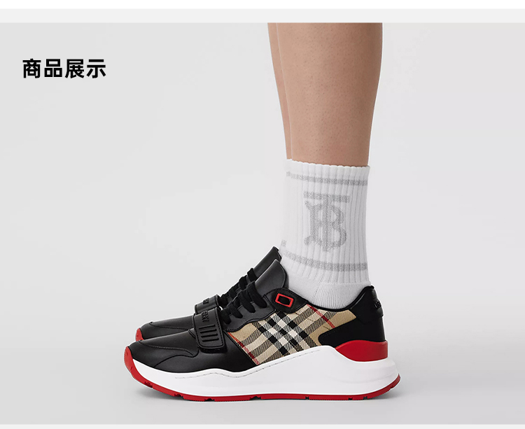 BURBERRY 博柏利 女士皮革拼 Vintage 格纹棉质运动鞋 格子 8038184 A7626